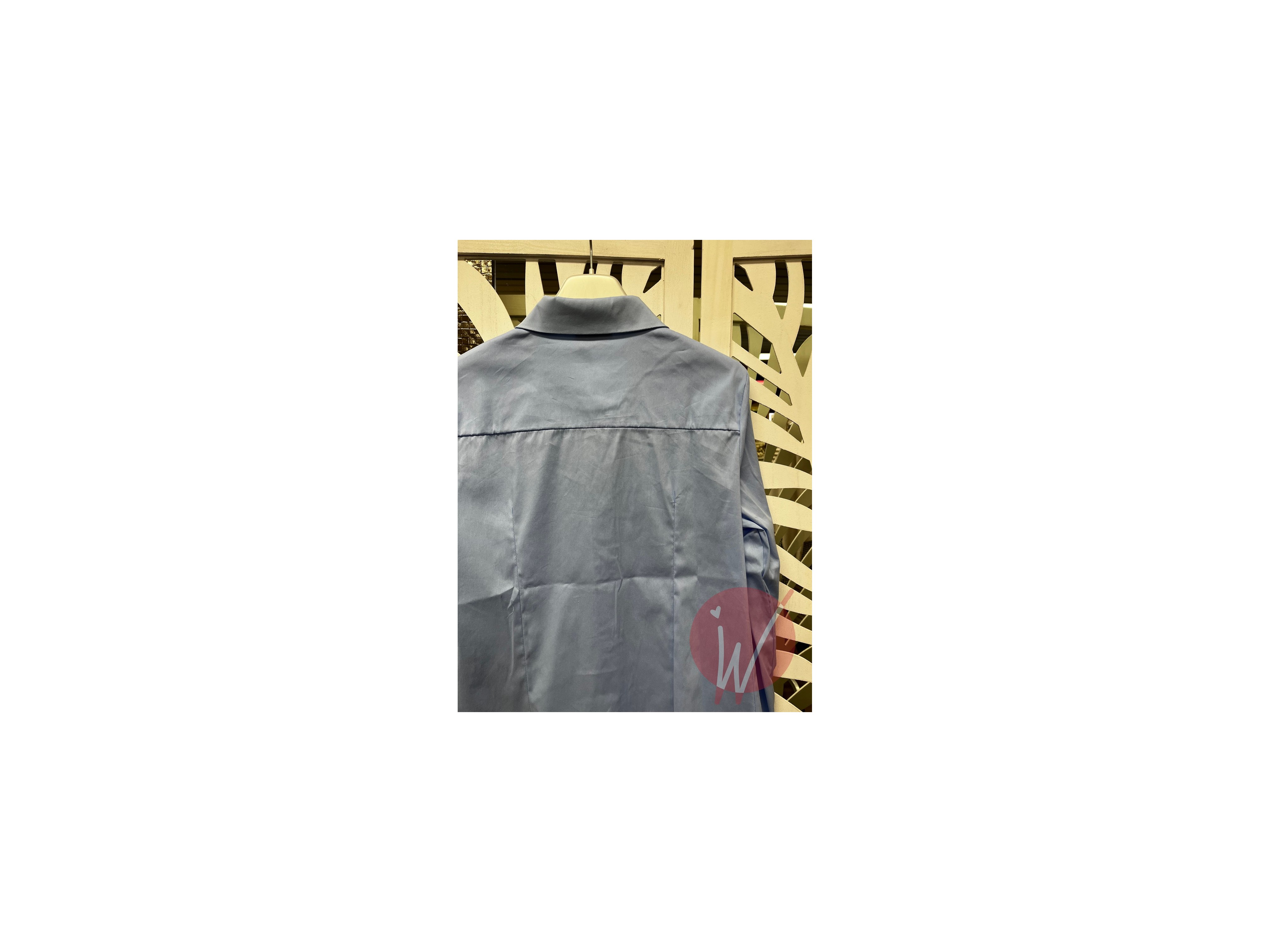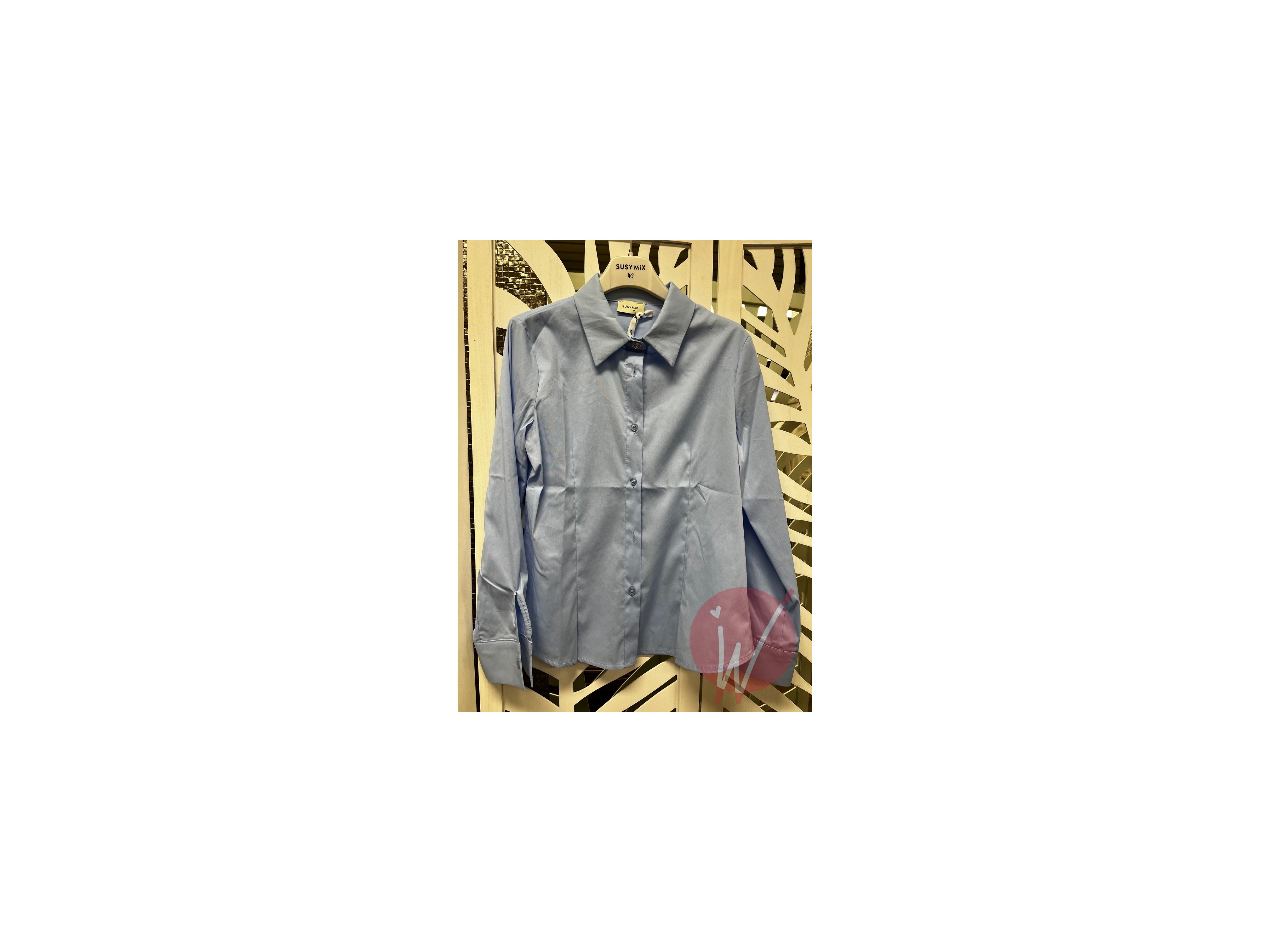Camicia in cotone leggermente elasticizzata, taglio sfiancato, scollo con bottone gioiello.