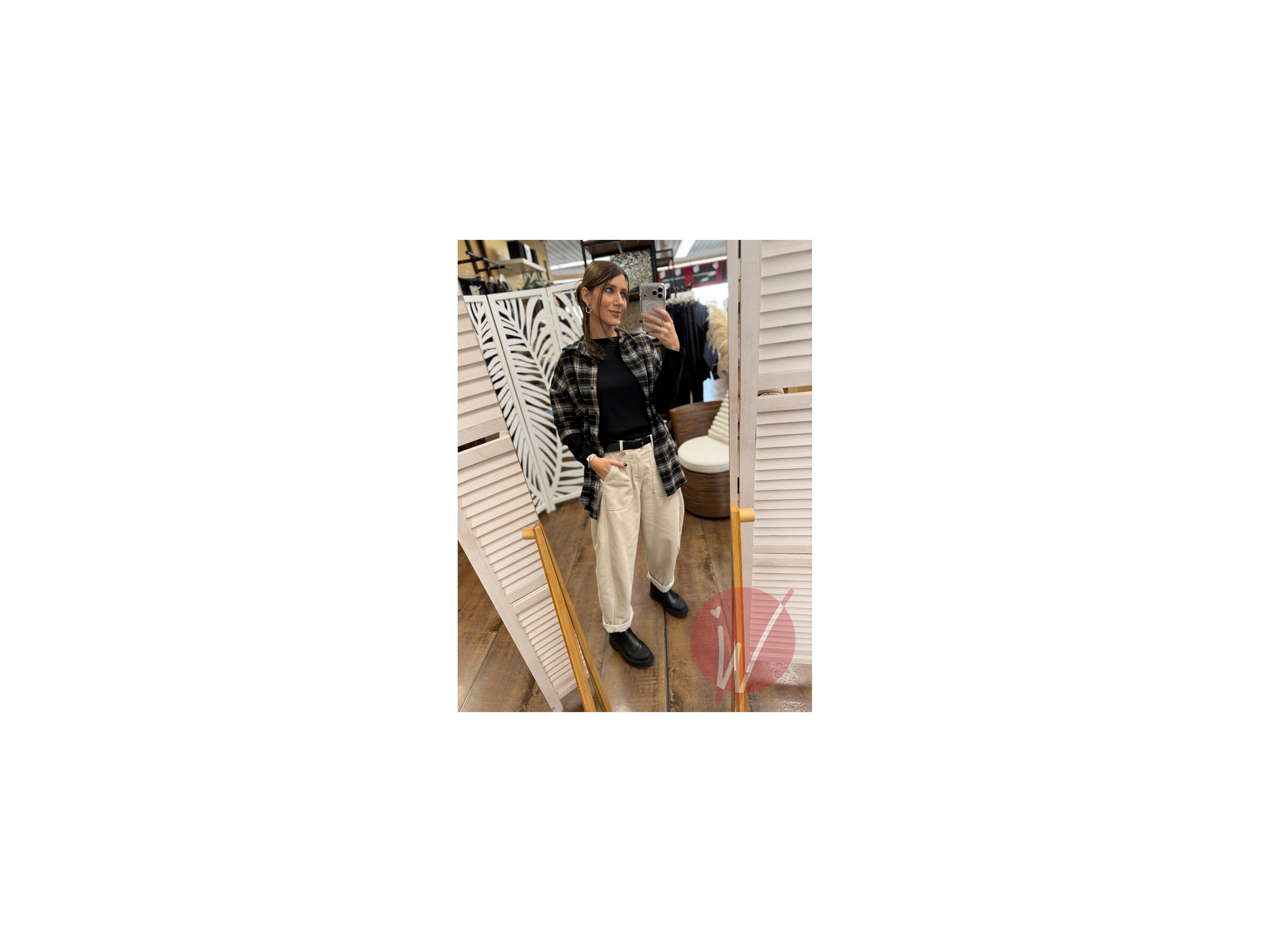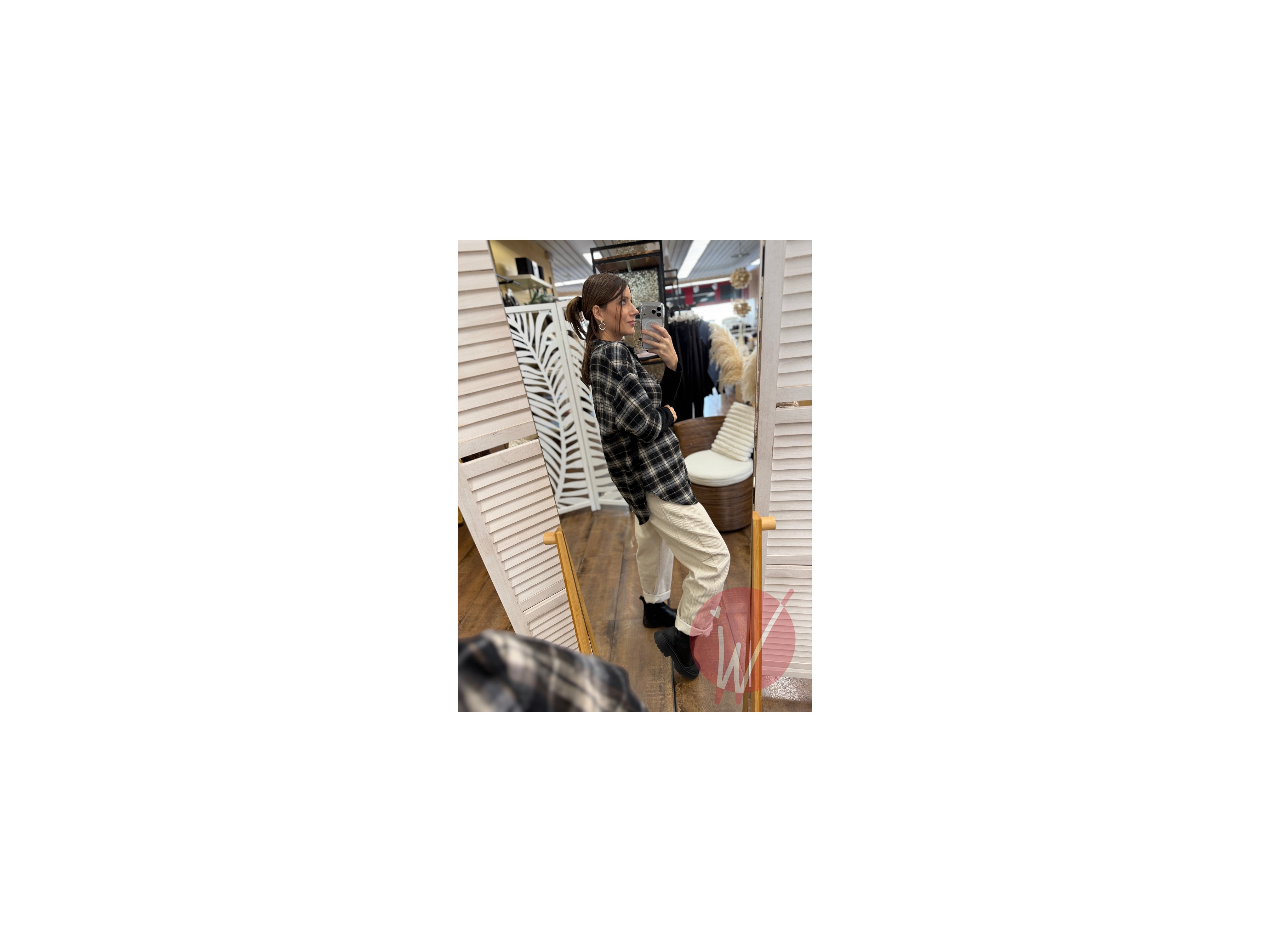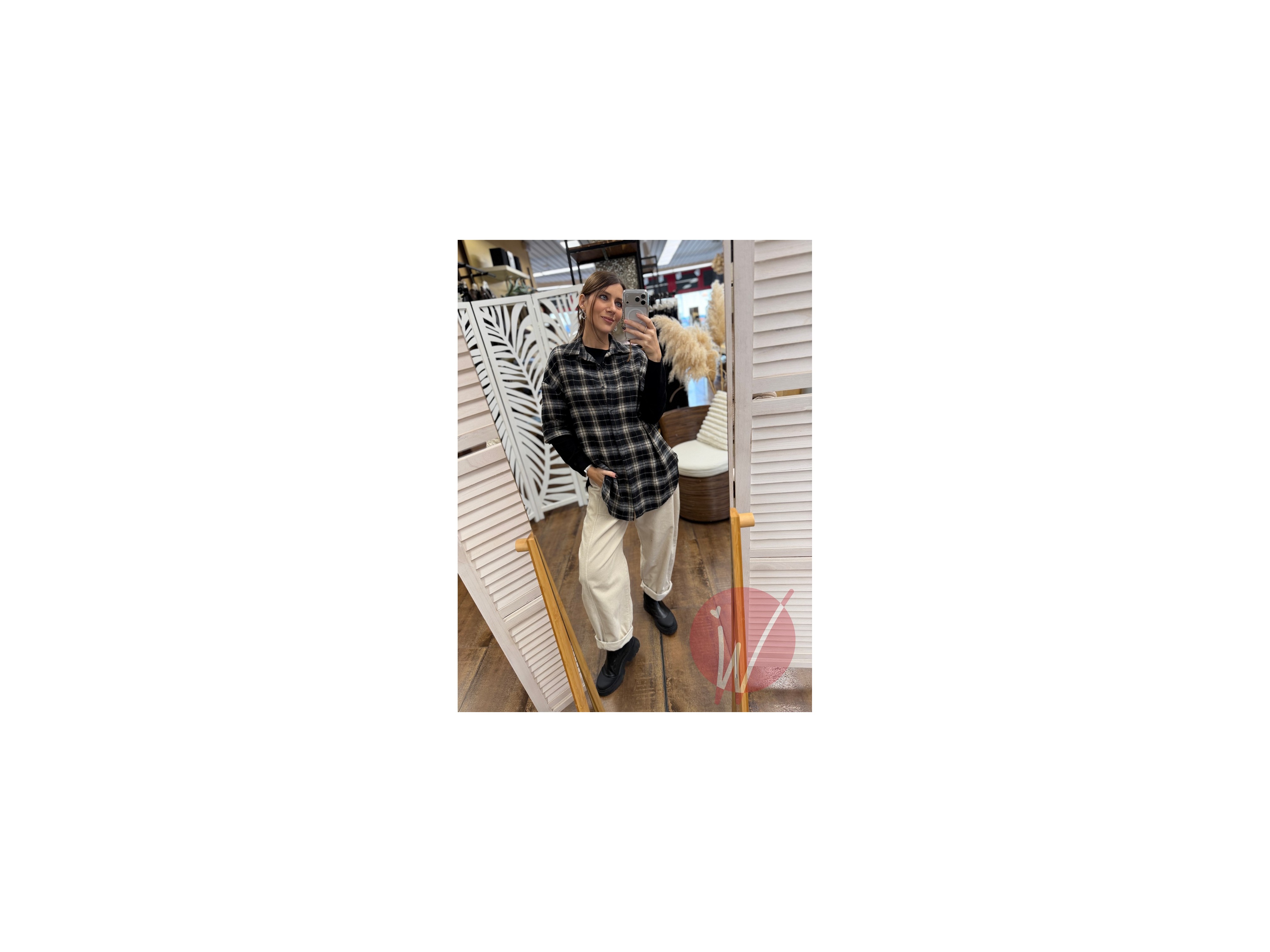 Camicia over in cotone effetto panno, caldo e morbido, fantasia check, taglio lungo e dritto.