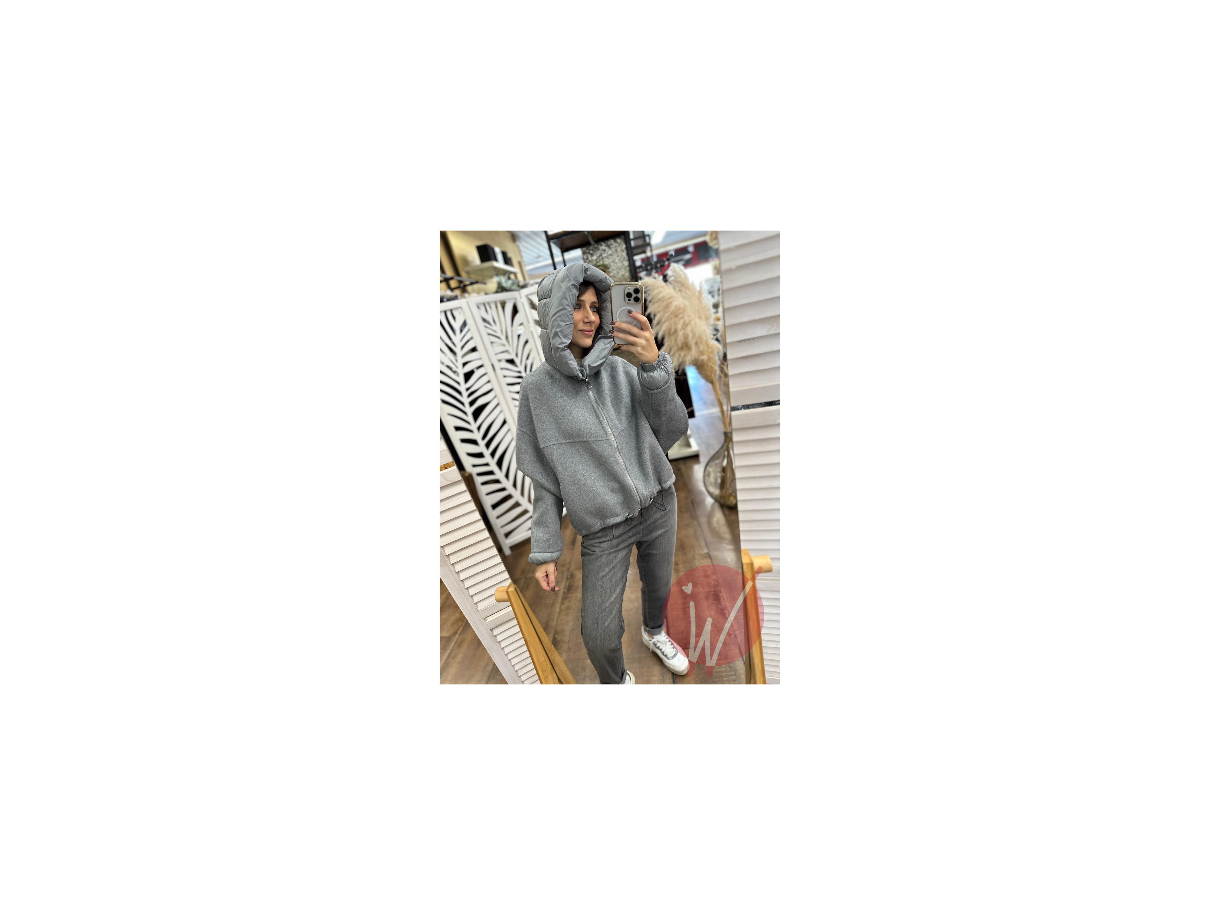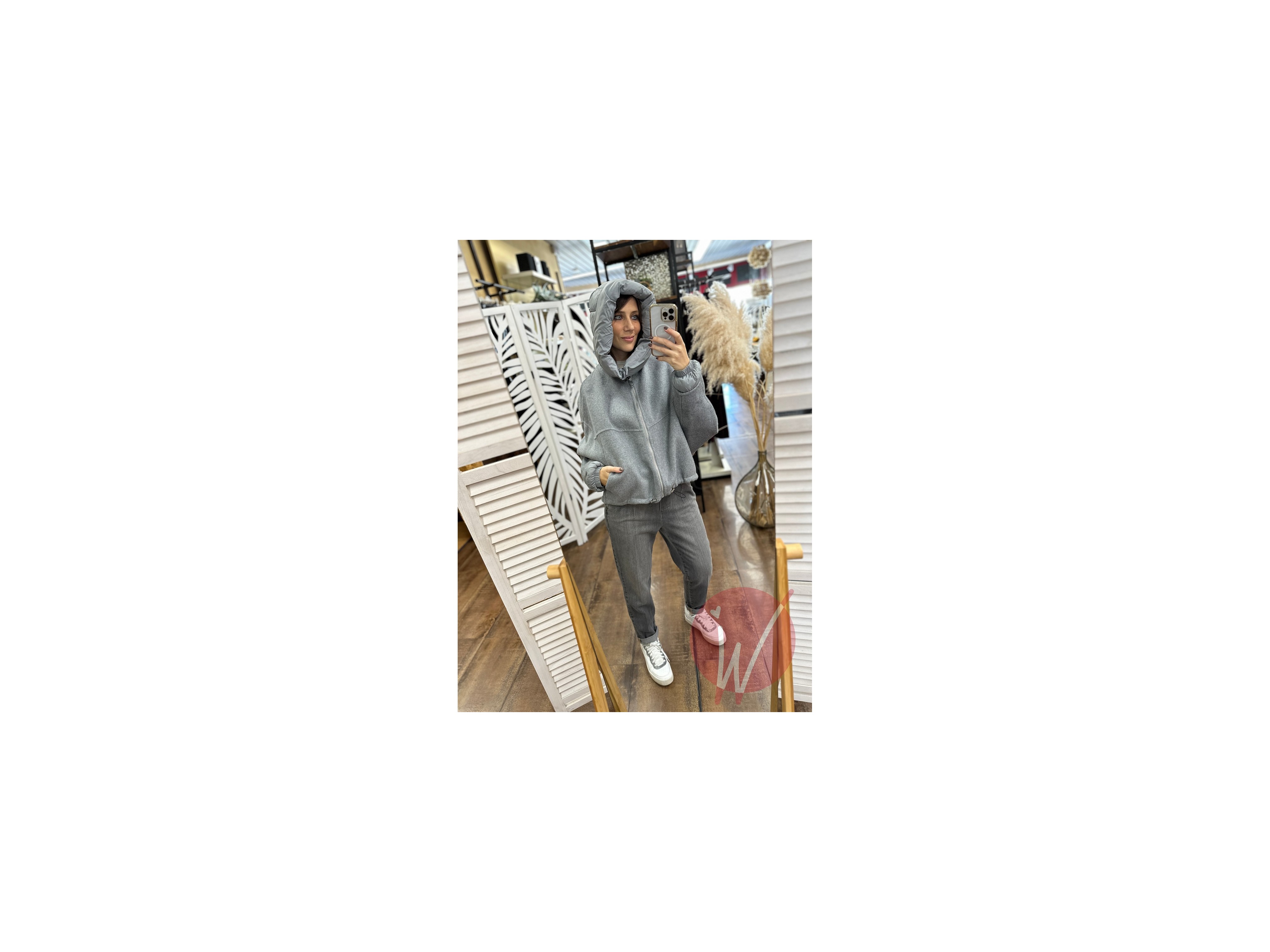 Cappottino corto modello bomber con coulisse ai fianchi, chiusura con zip e tasche laterali verticali.