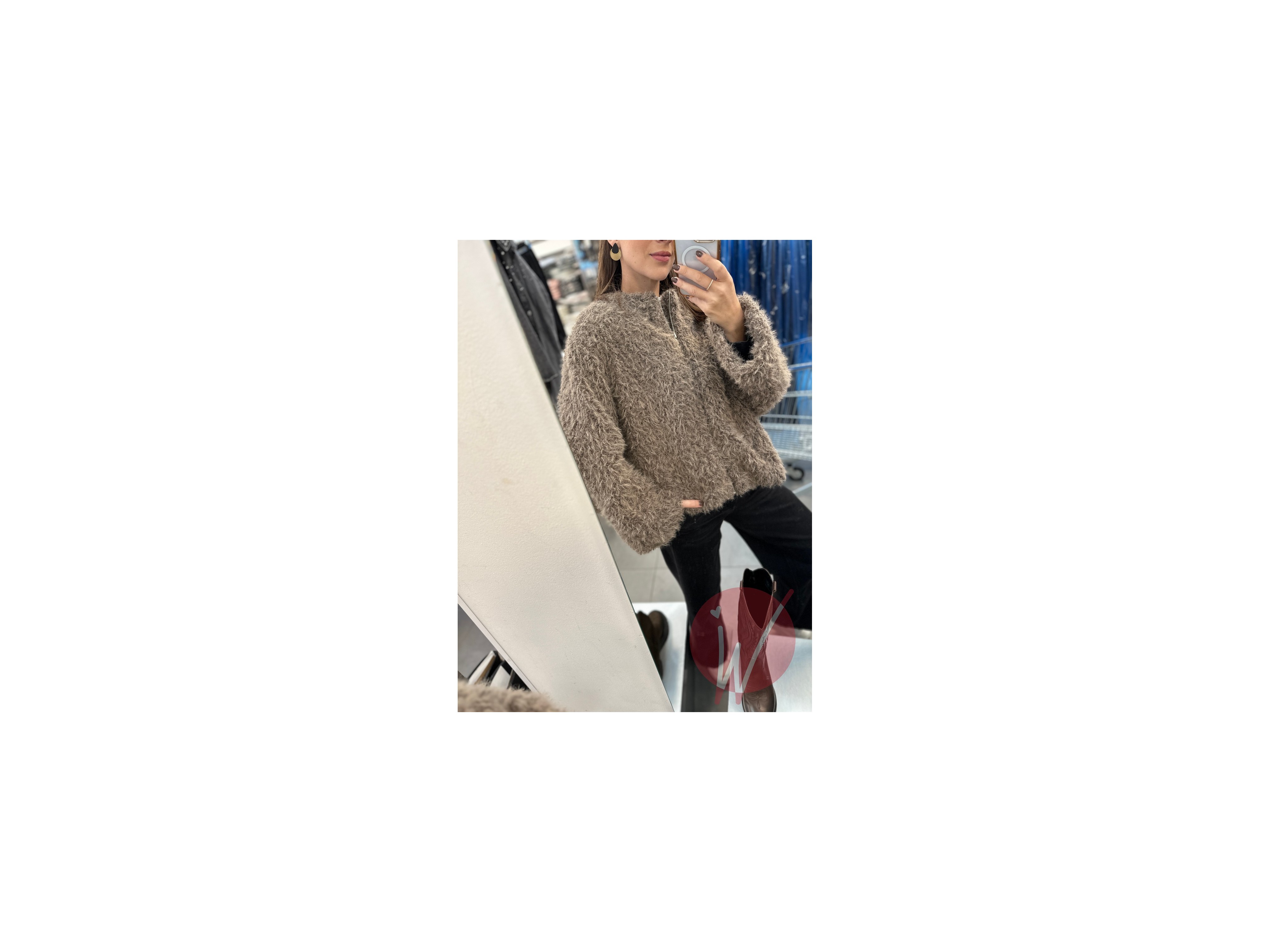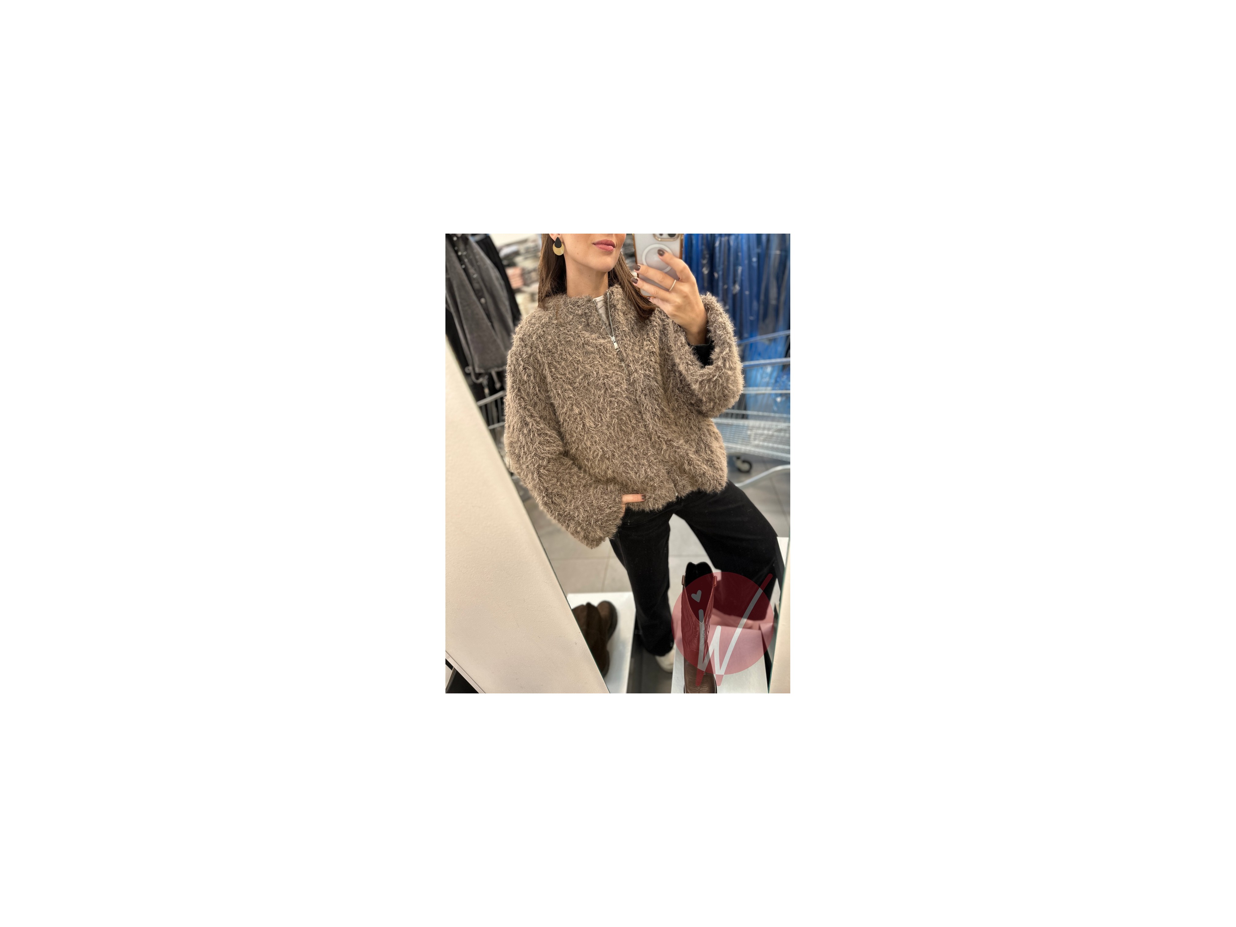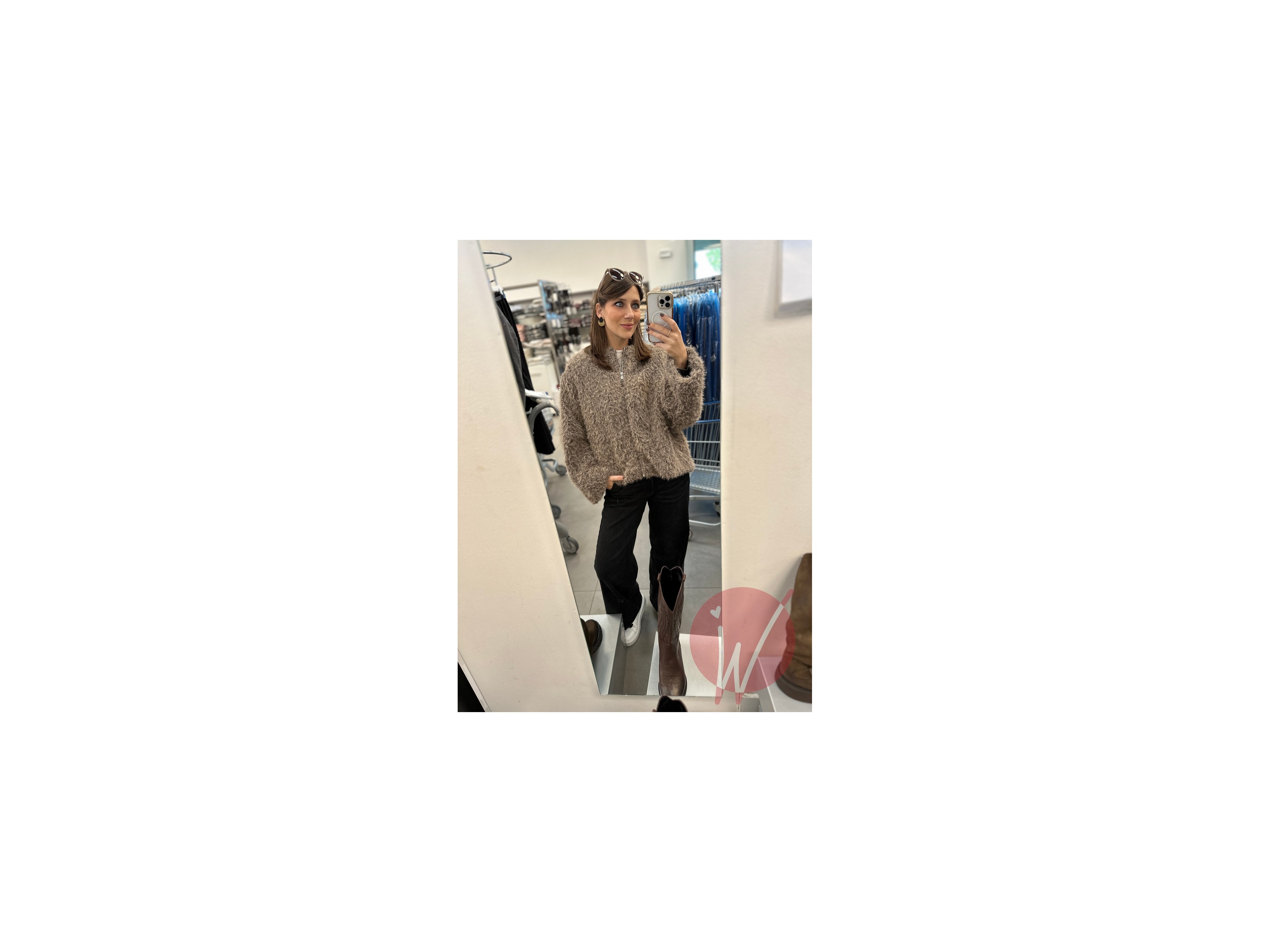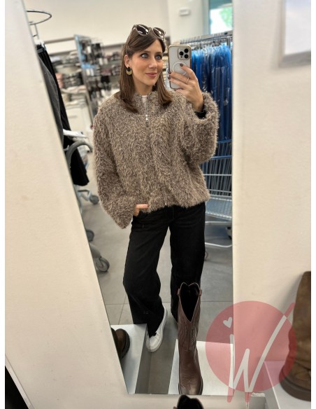 Ecopelliccia girocollo con chiusura zip davanti e tasche in piedi laterali.