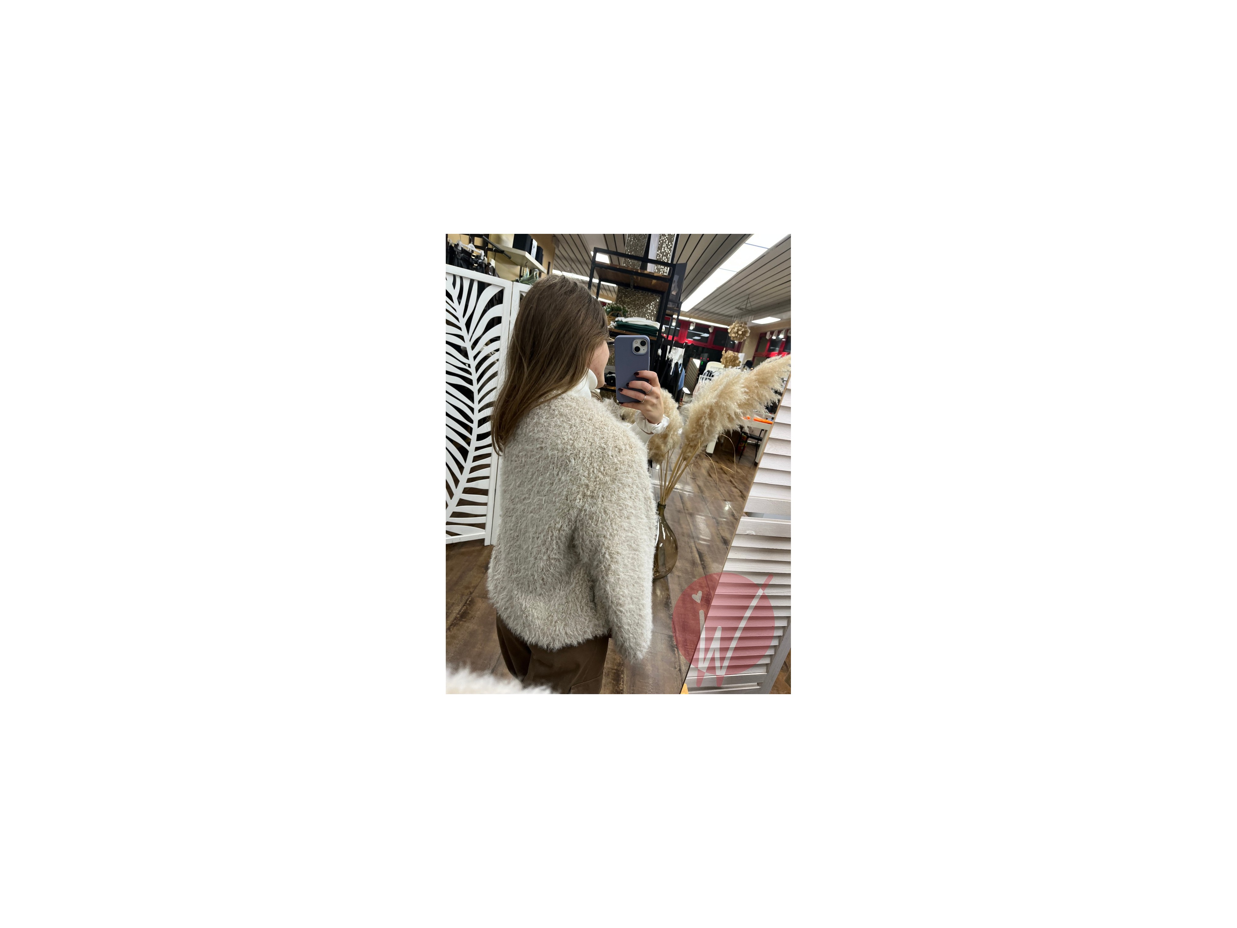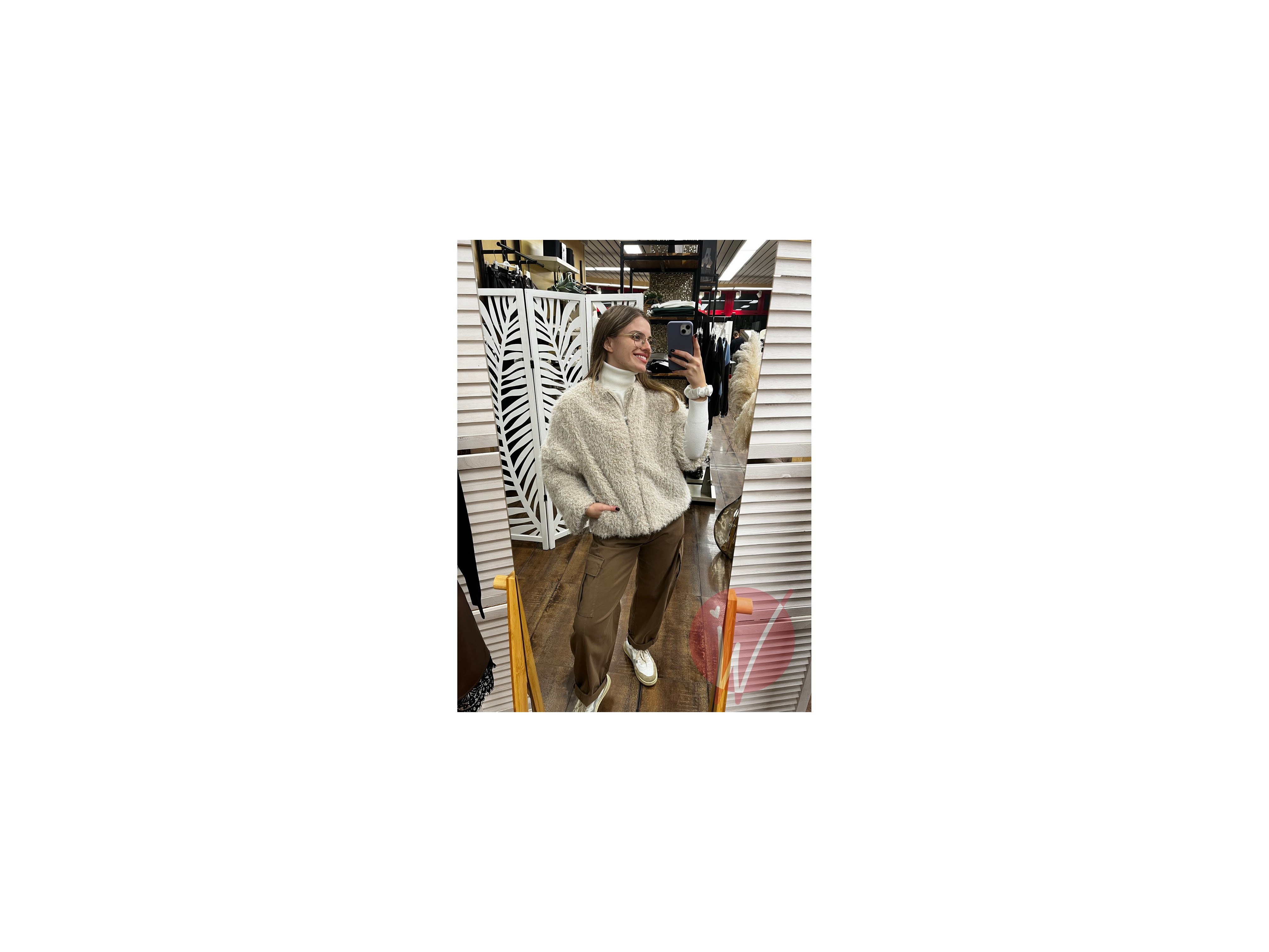 Ecopelliccia girocollo con chiusura zip davanti e tasche in piedi laterali.