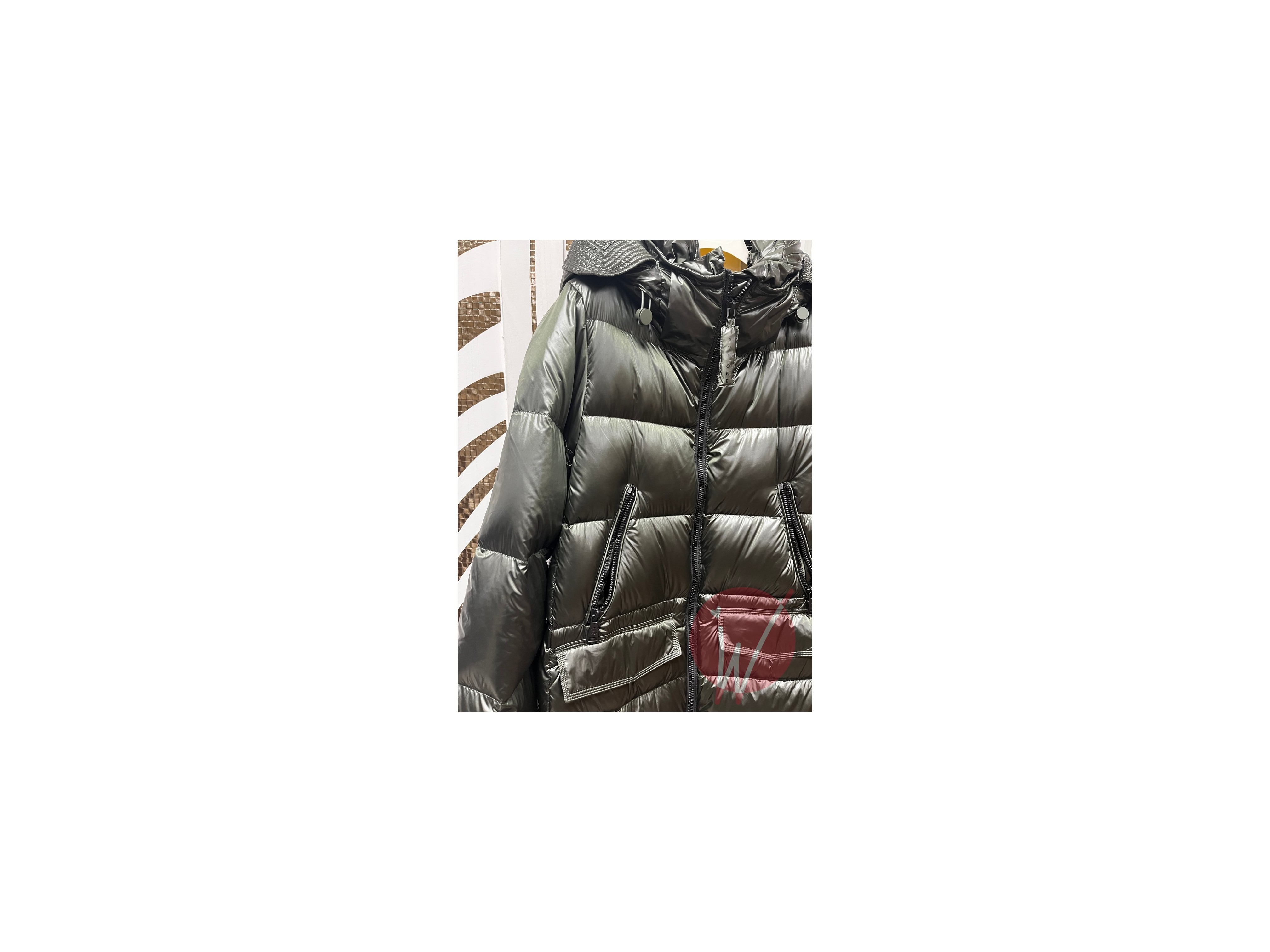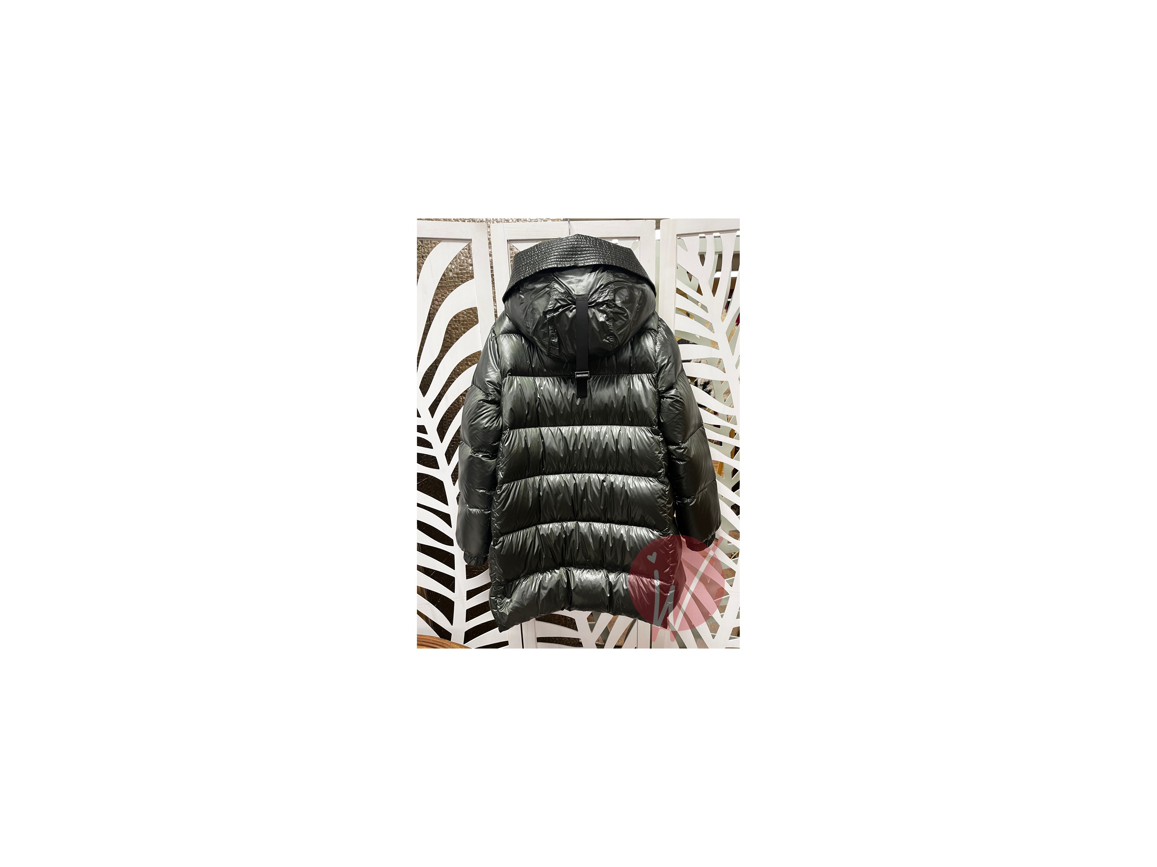 Piumino in vera piuma, con cappuccio ampio removibile con zip, doppia tasca davanti, zip frontale di chiusura.