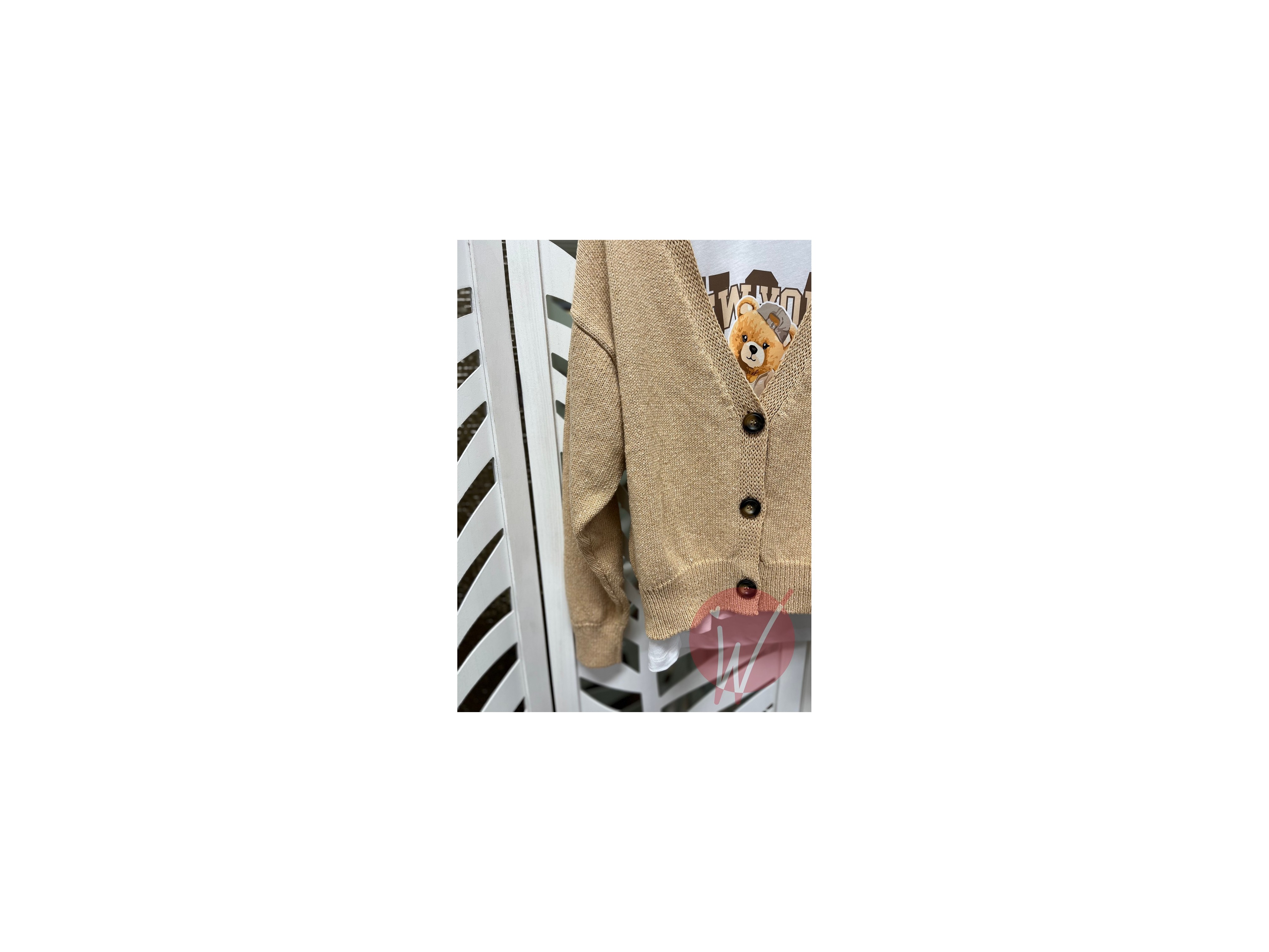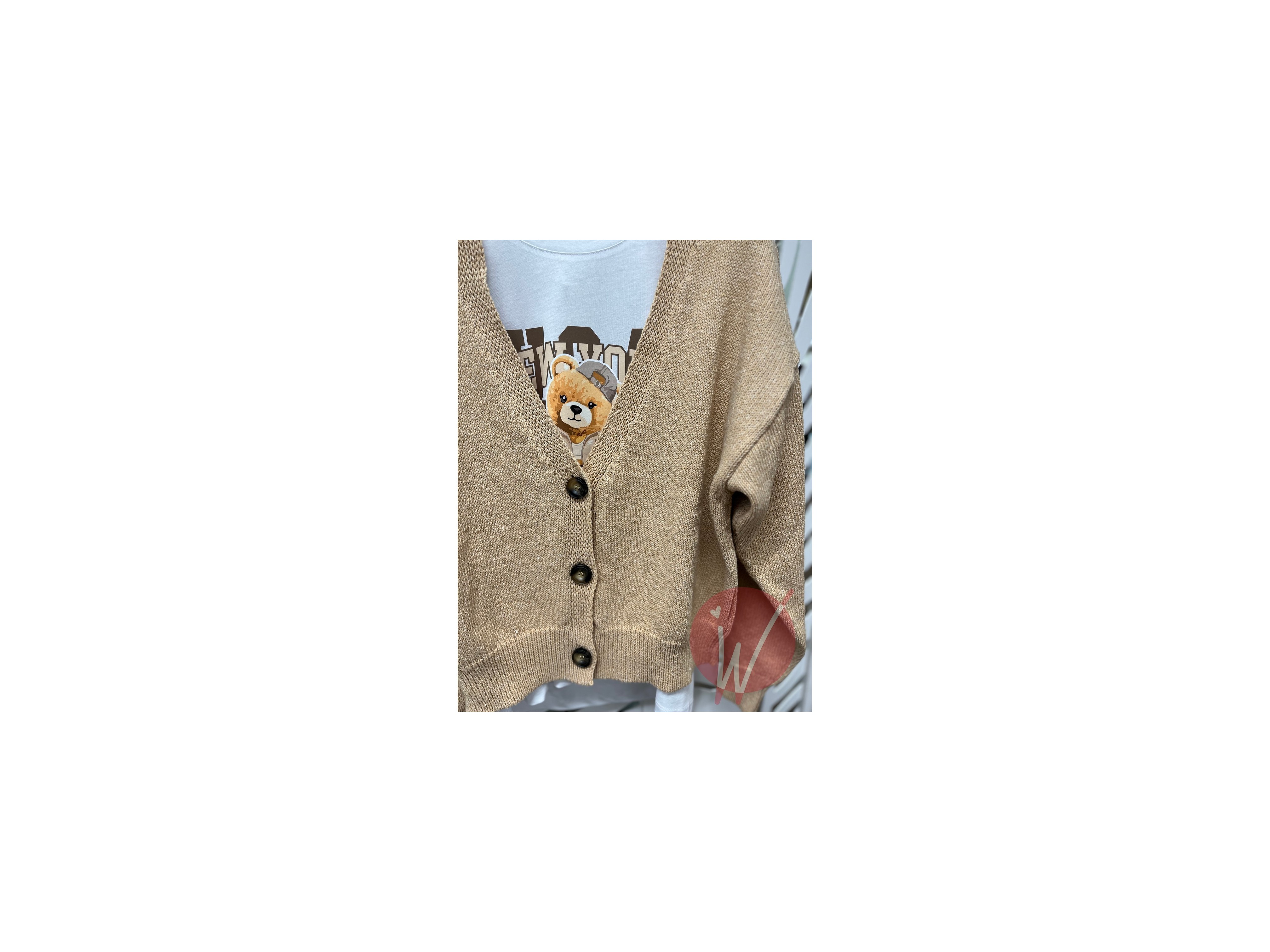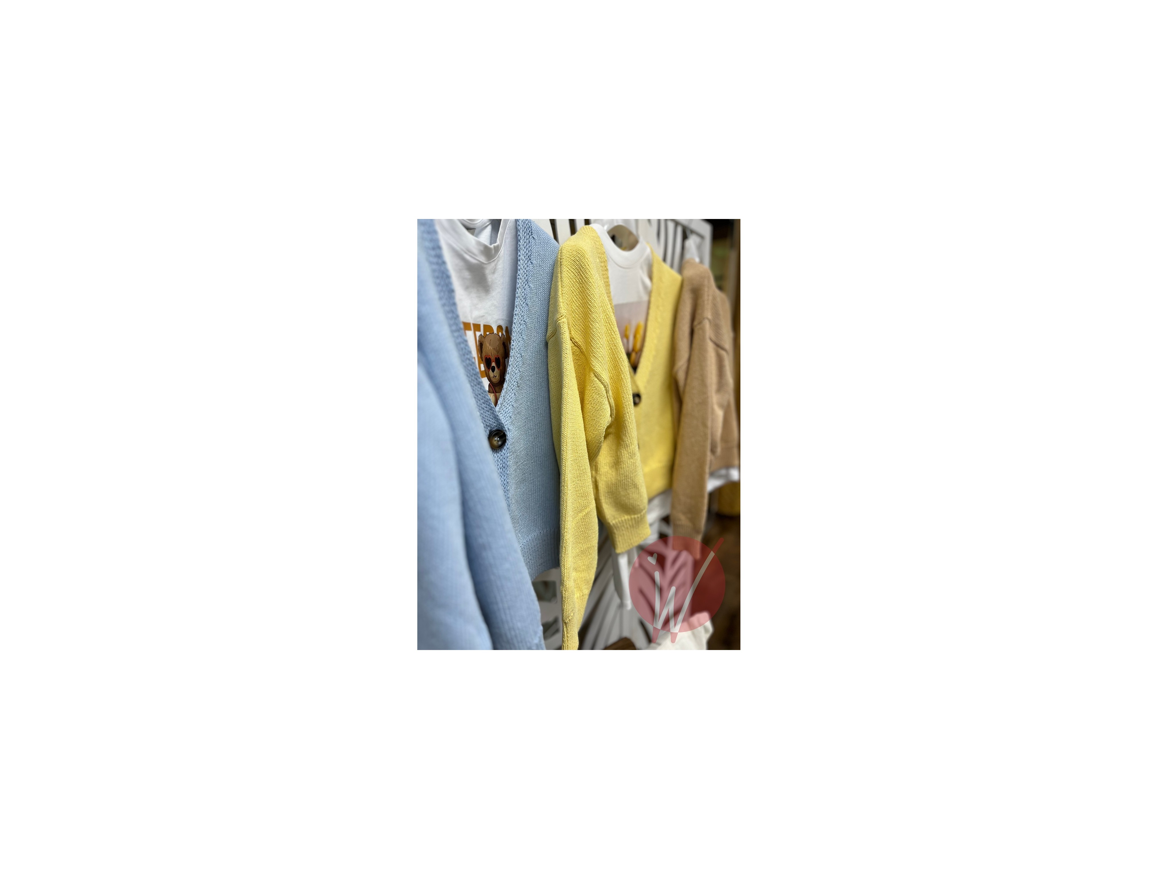 Cardigan in cotone riciclato morbidissimo, con scollo a v, bottoncini davanti di chiusura.