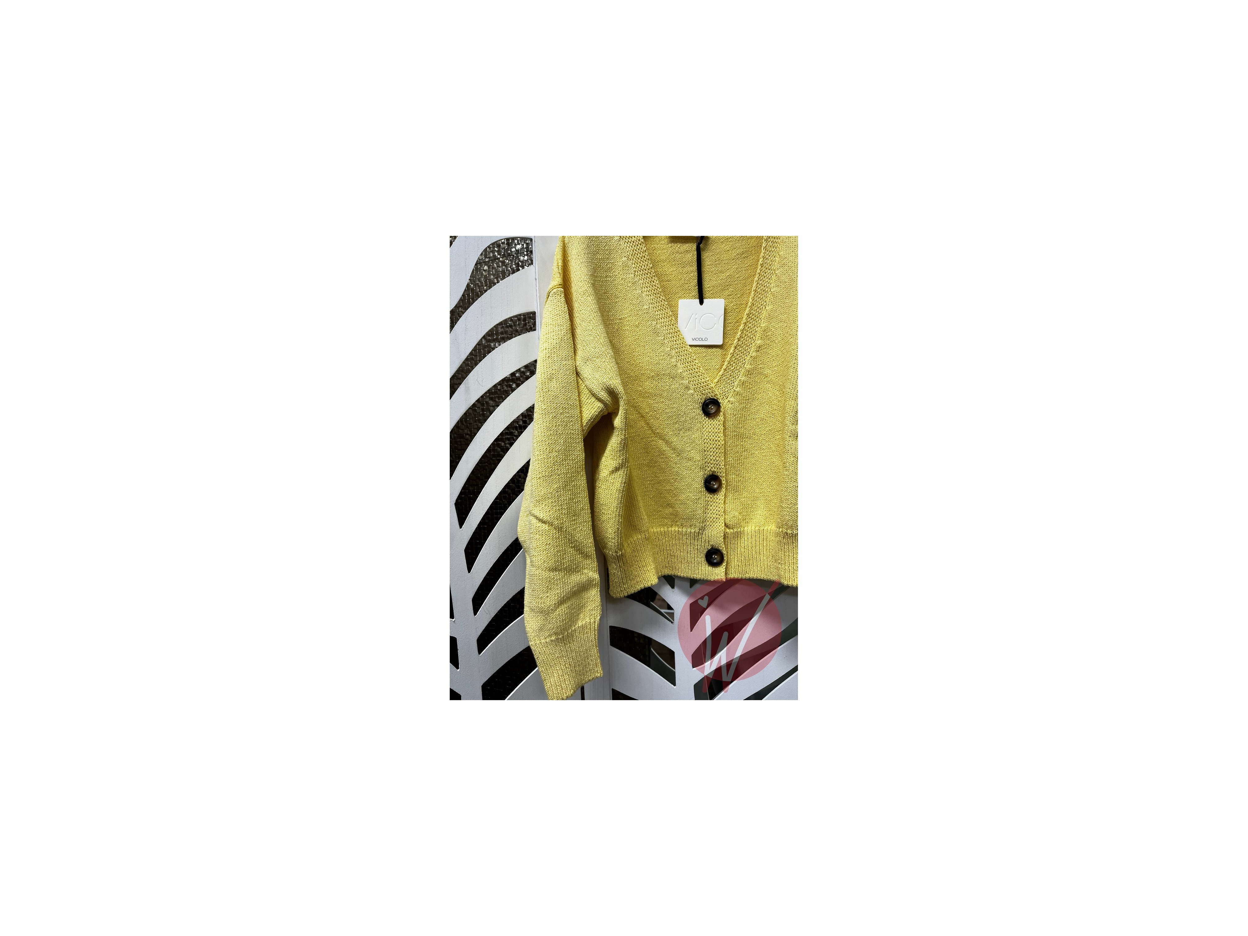 Cardigan in cotone riciclato morbidissimo, con scollo a v, bottoncini davanti di chiusura.