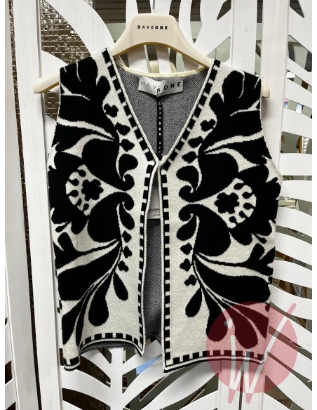 Gilet smanicato in viscosa calda ma sottile, chiusura singola con gancetto.