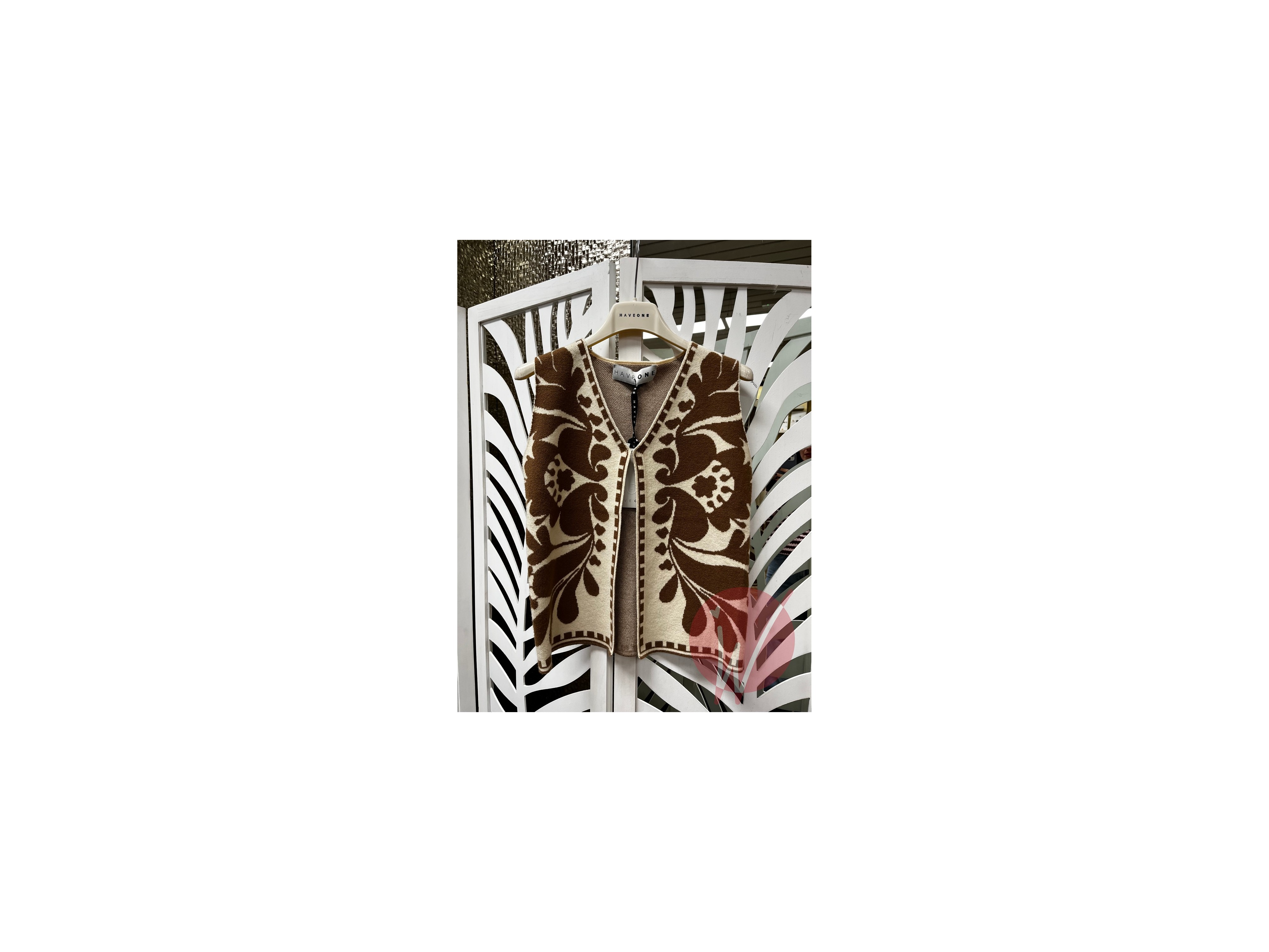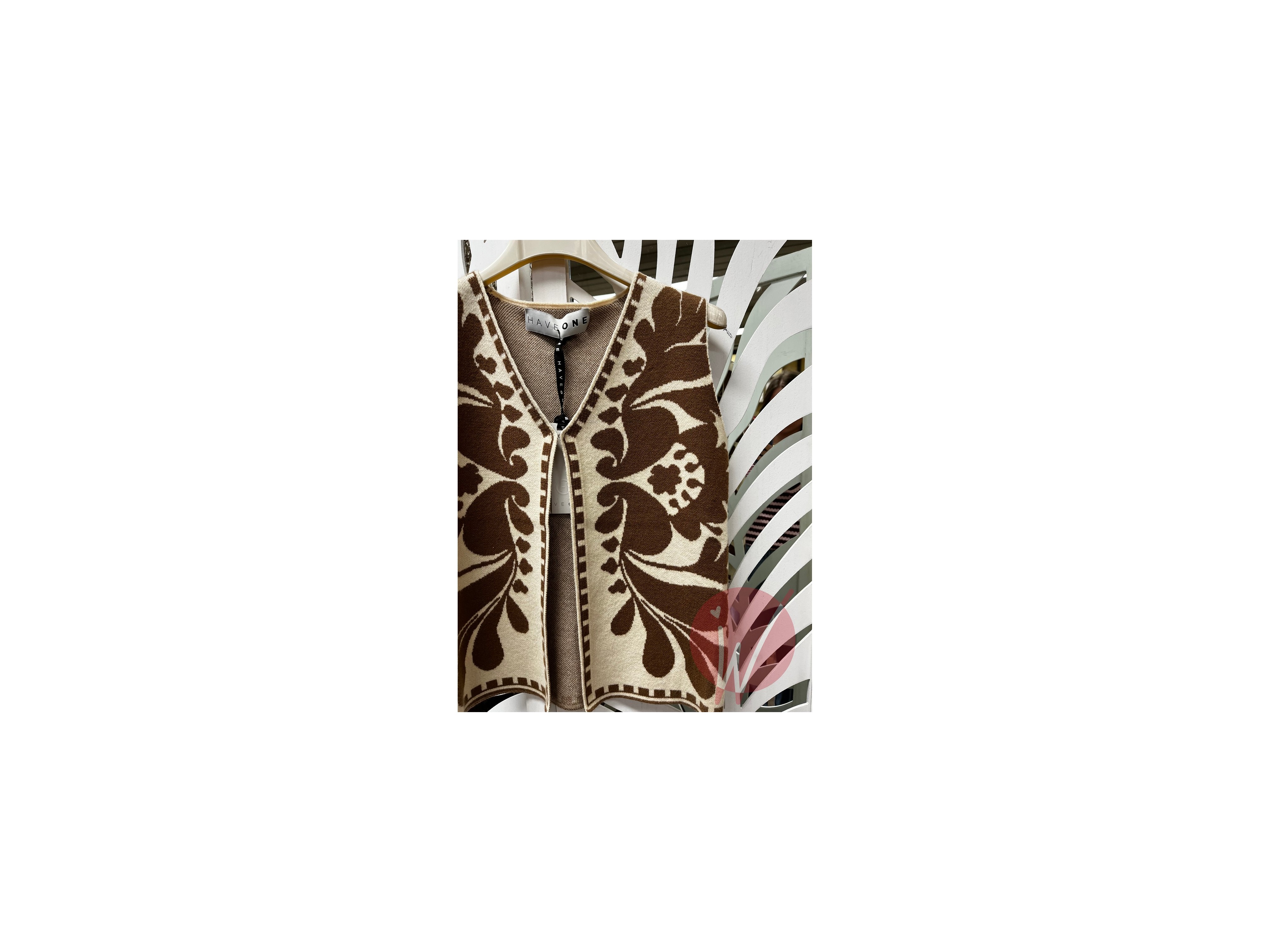 Gilet smanicato in viscosa calda ma sottile, chiusura singola con gancetto.