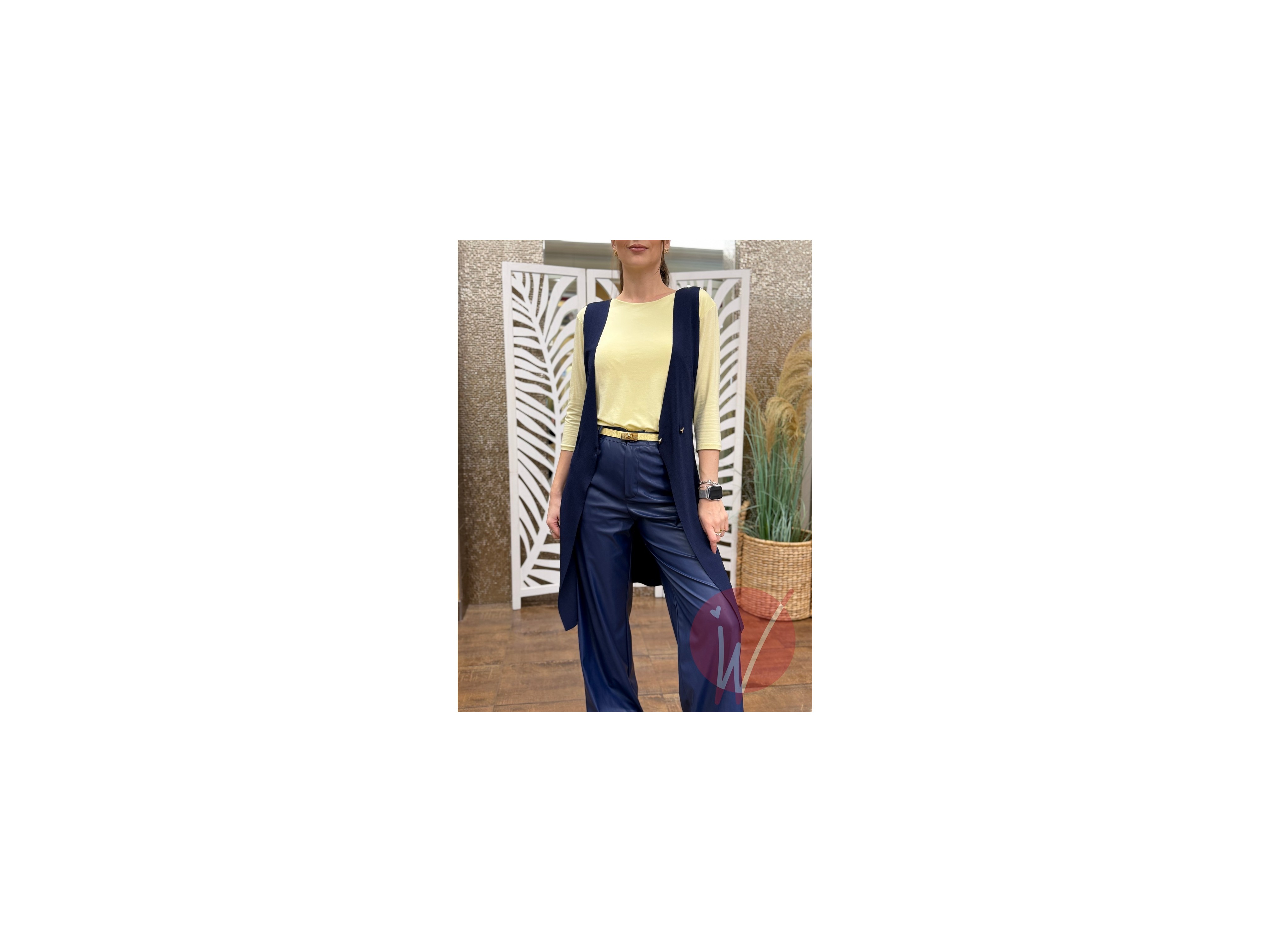 Gilet lungo in viscosa elasticizzata e leggera, modello doppiopetto con spacchi laterali.