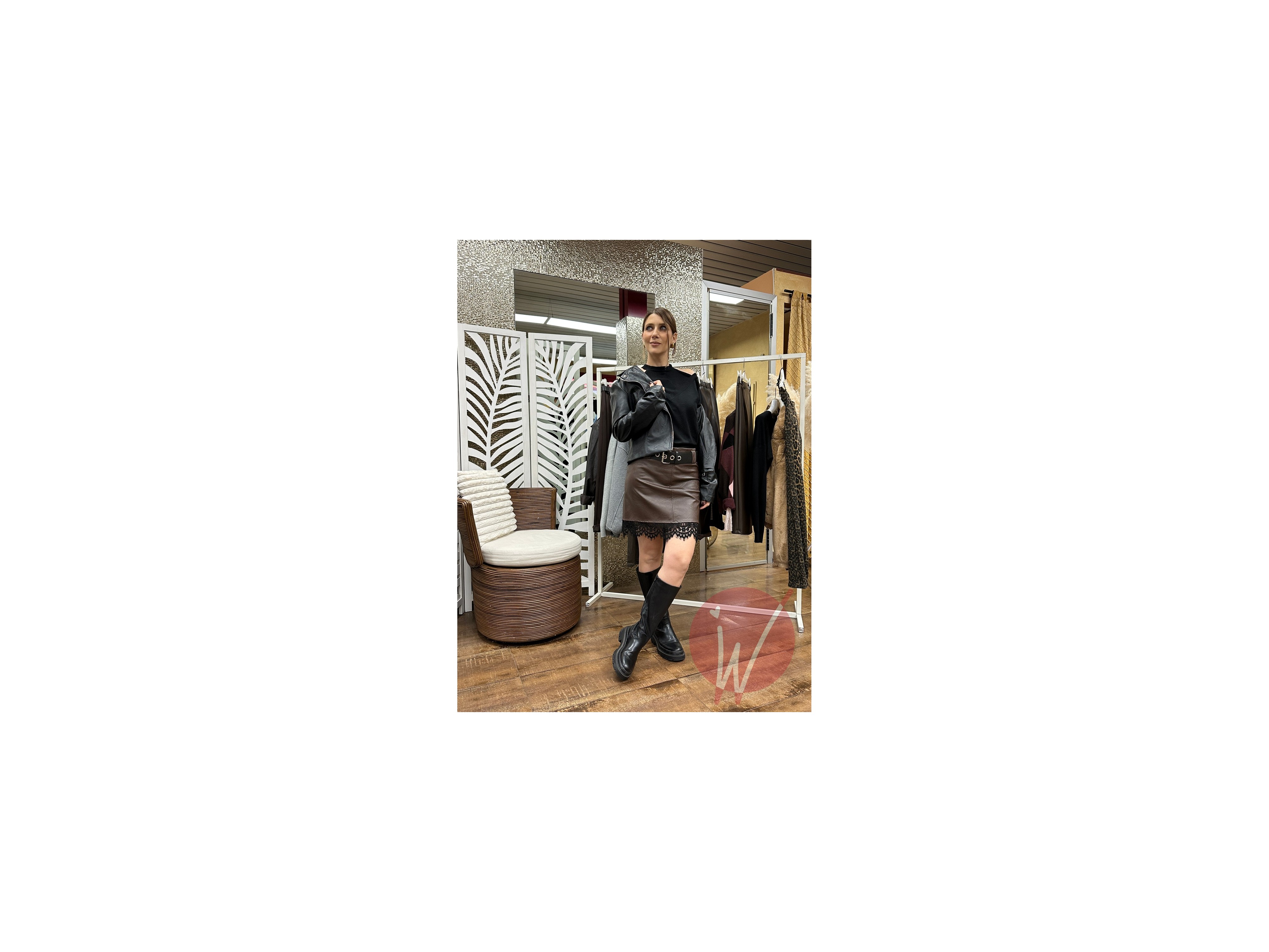 Chiodino in ecopelle elasticizzato e morbidissimo indosso, foderato con zip davanti
