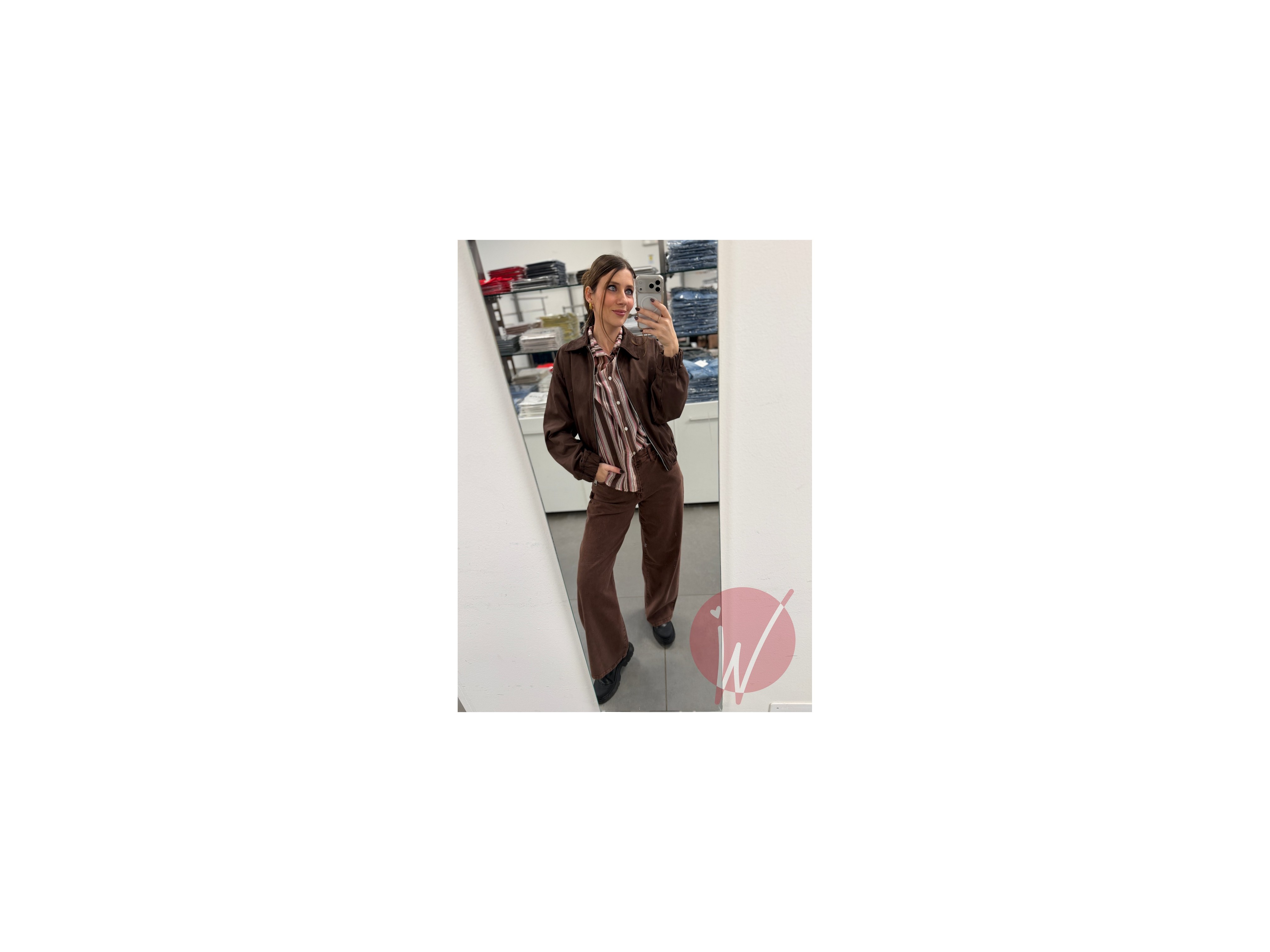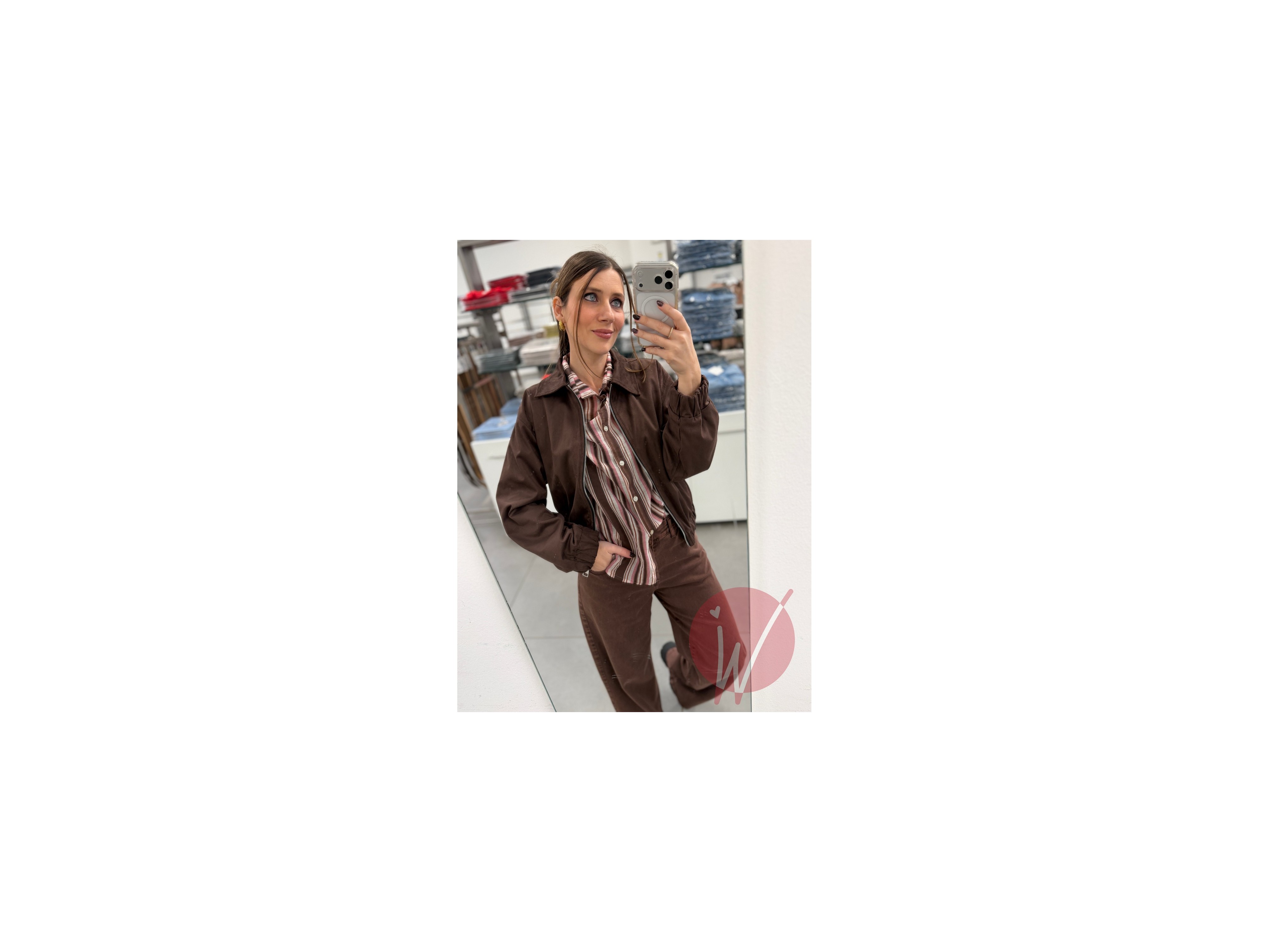 Bomber in suede morbido, foderato all'interno, collo a camicia, con fascia elastica sui fianchi e ai polsini, tasche in piedi laterali.