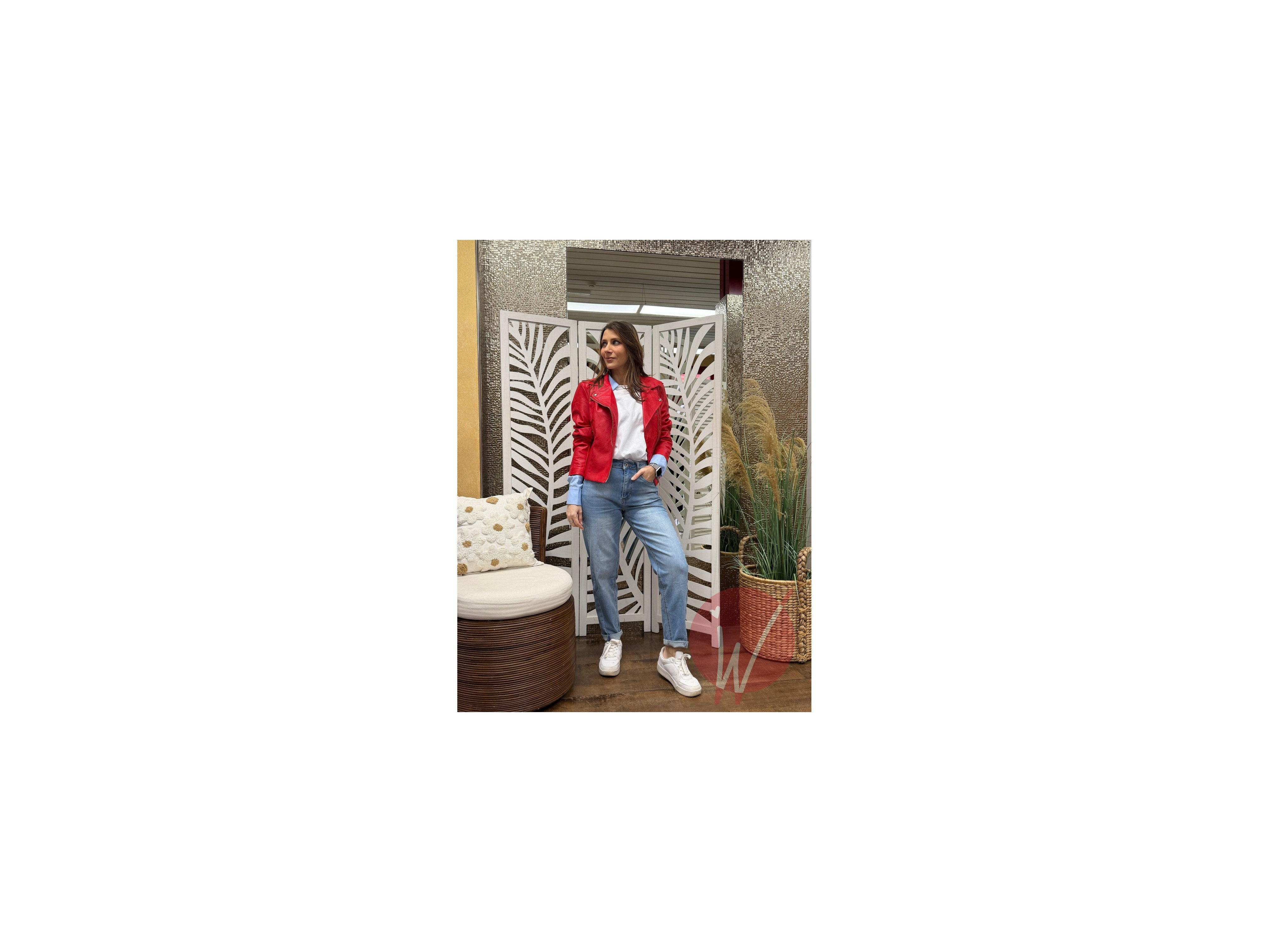 Chiodino in ecopelle elasticizzato e morbidissimo indosso, foderato con zip davanti
