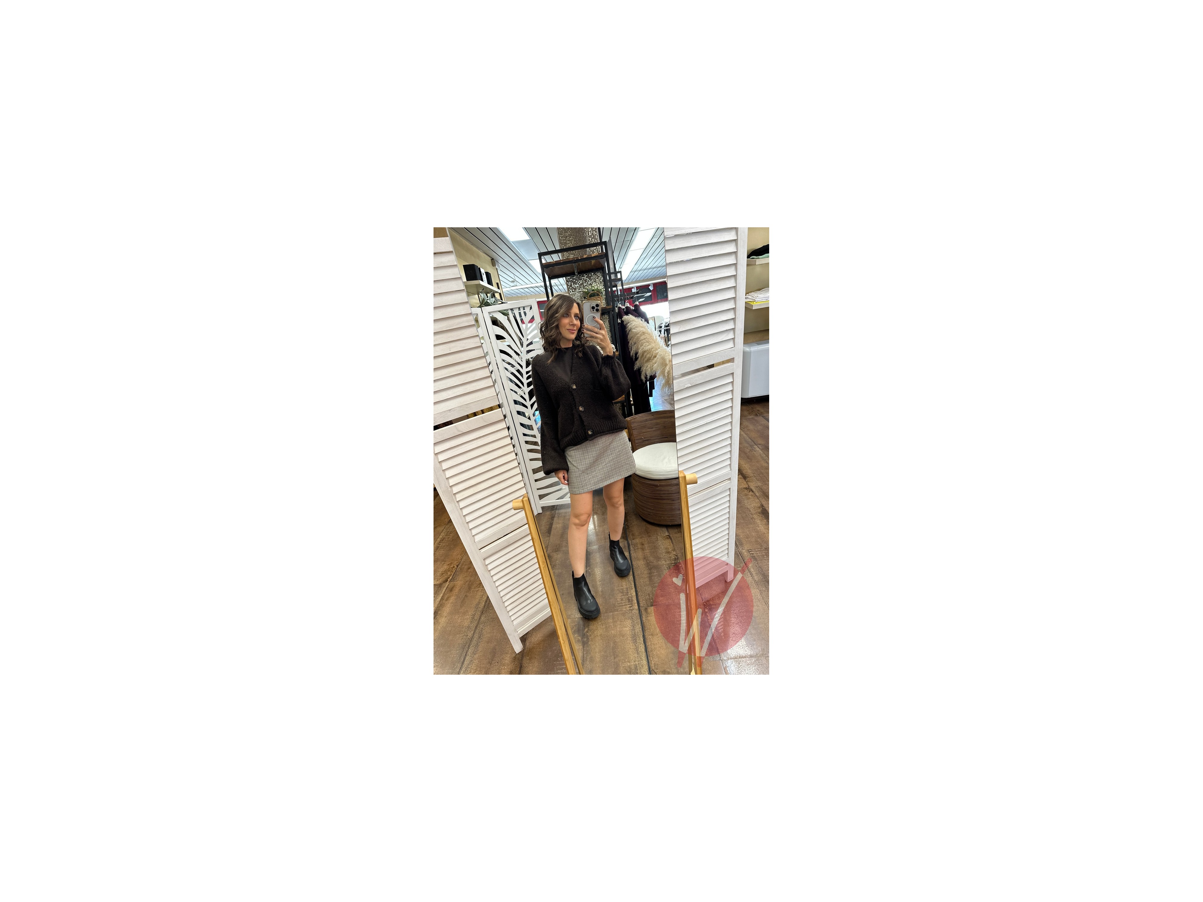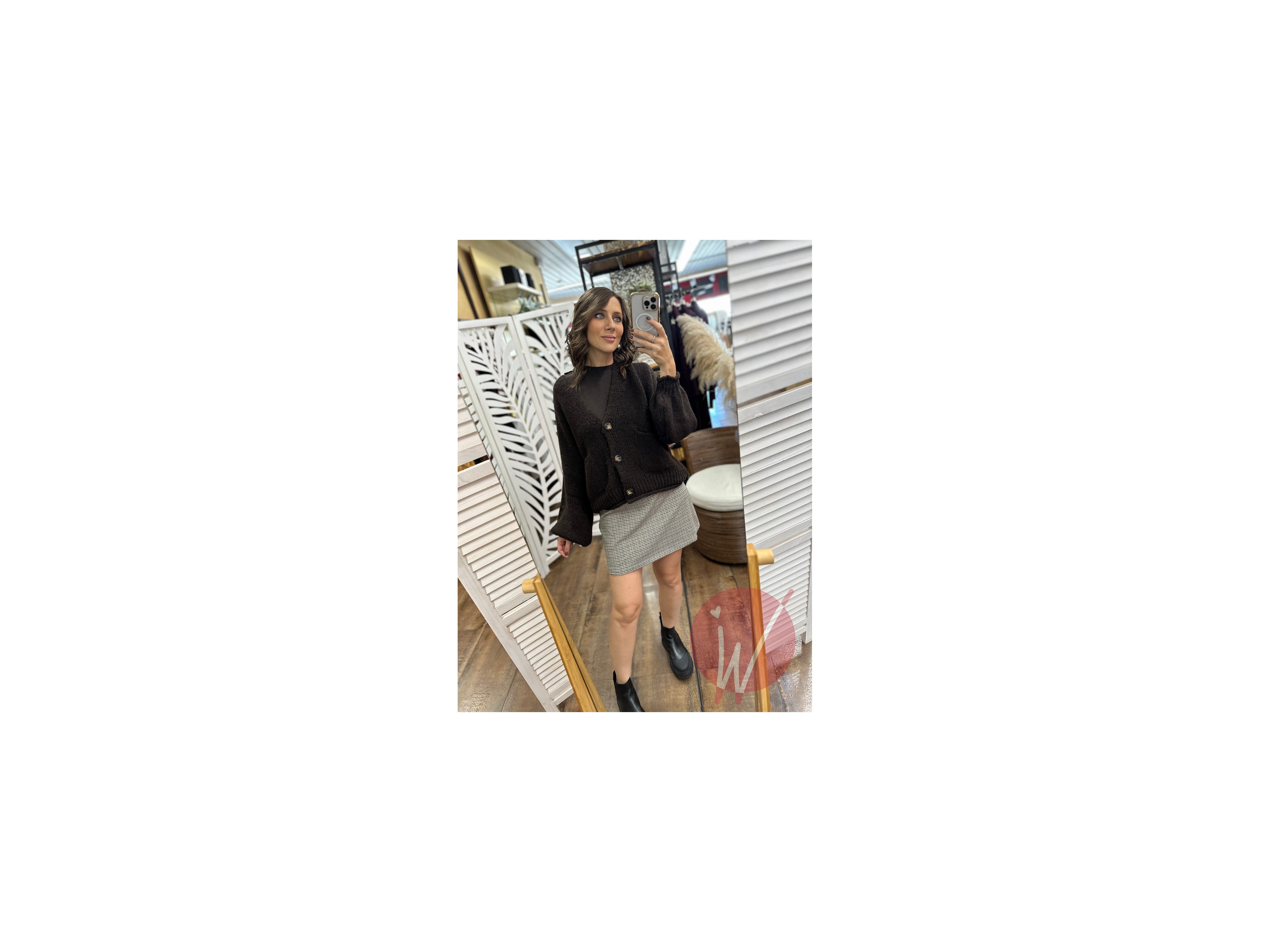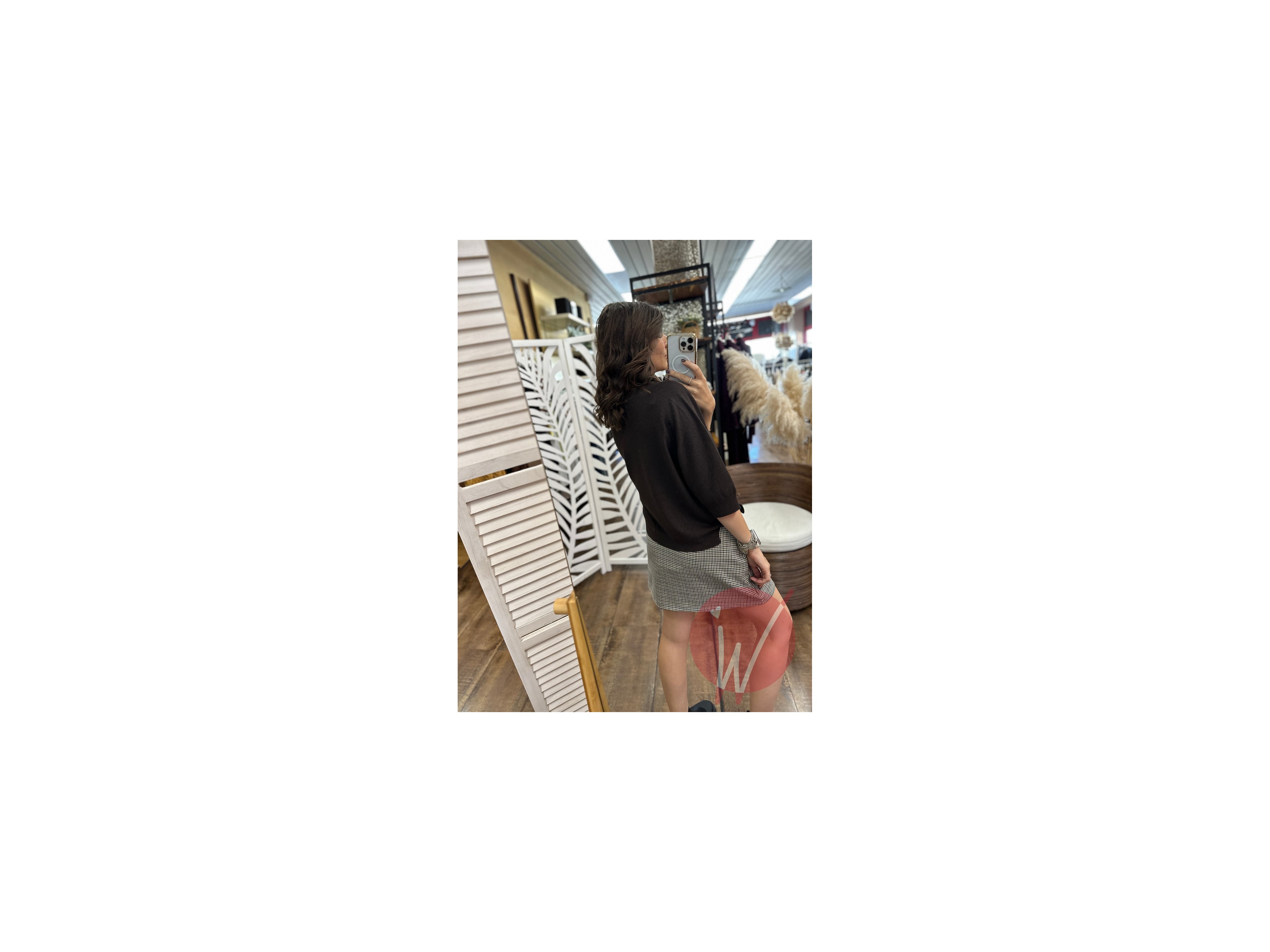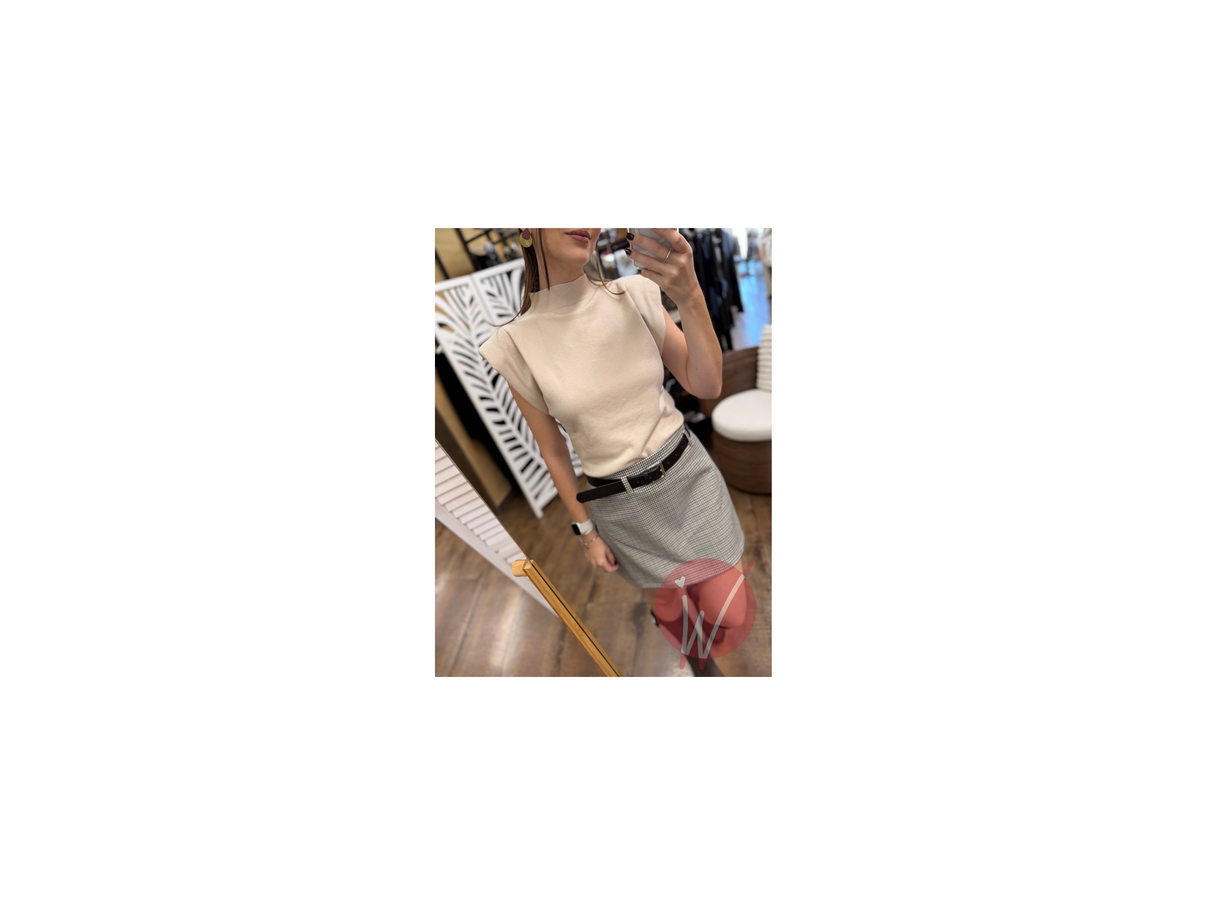 Minigonna in fantasia check, leggermente svasata sul fondo, con passanti e cintura in vita inclusa. Chiusura con zip a lato.