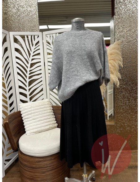 Gonna plissé in viscosa morbida e calda, svasata sul fondo, con elastico in vita.