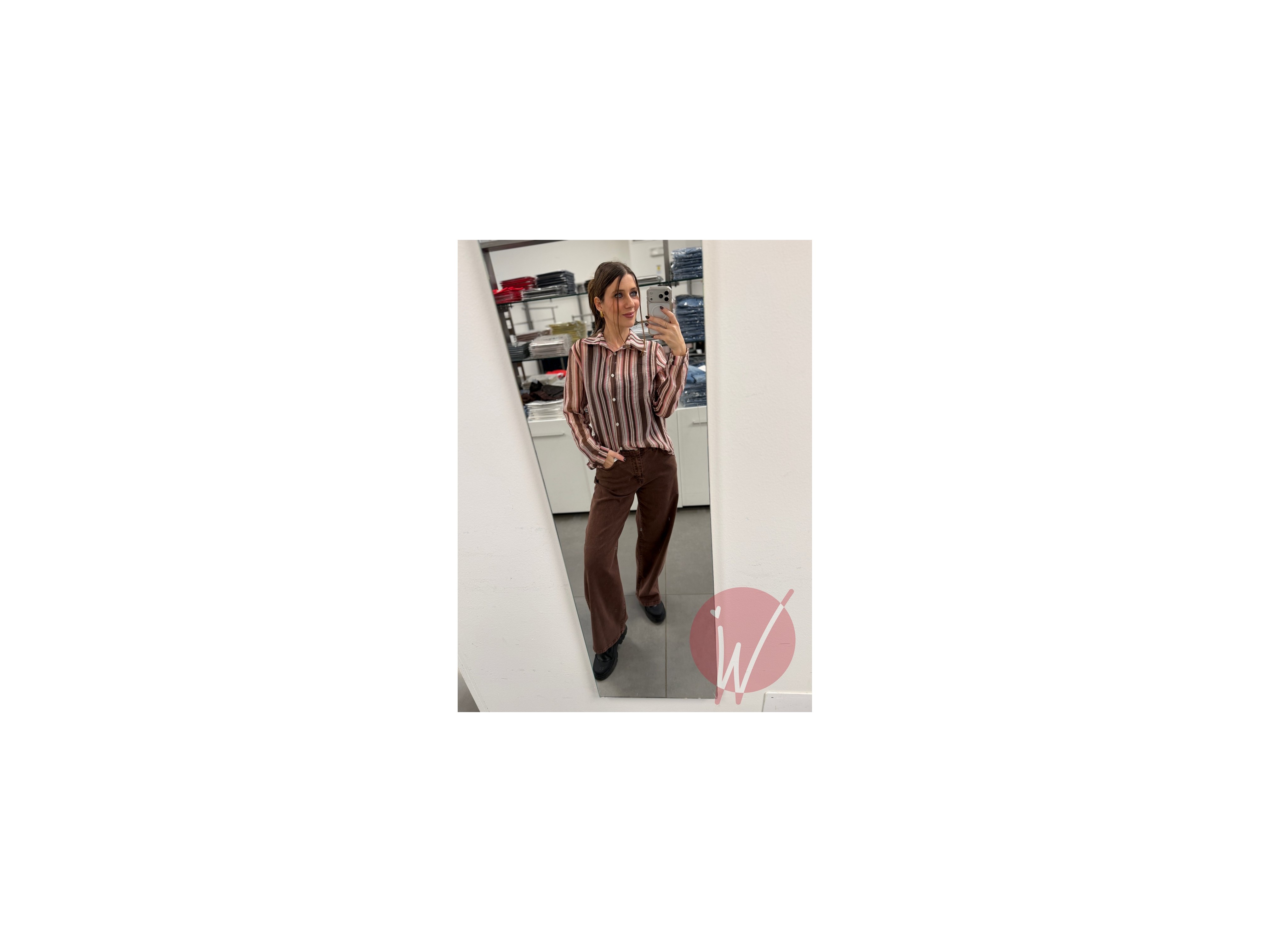 Jeans in cotone elasticizzato, modello palazzo 5 tasche, lavaggio maltinto, chiusura con zip e bottone.