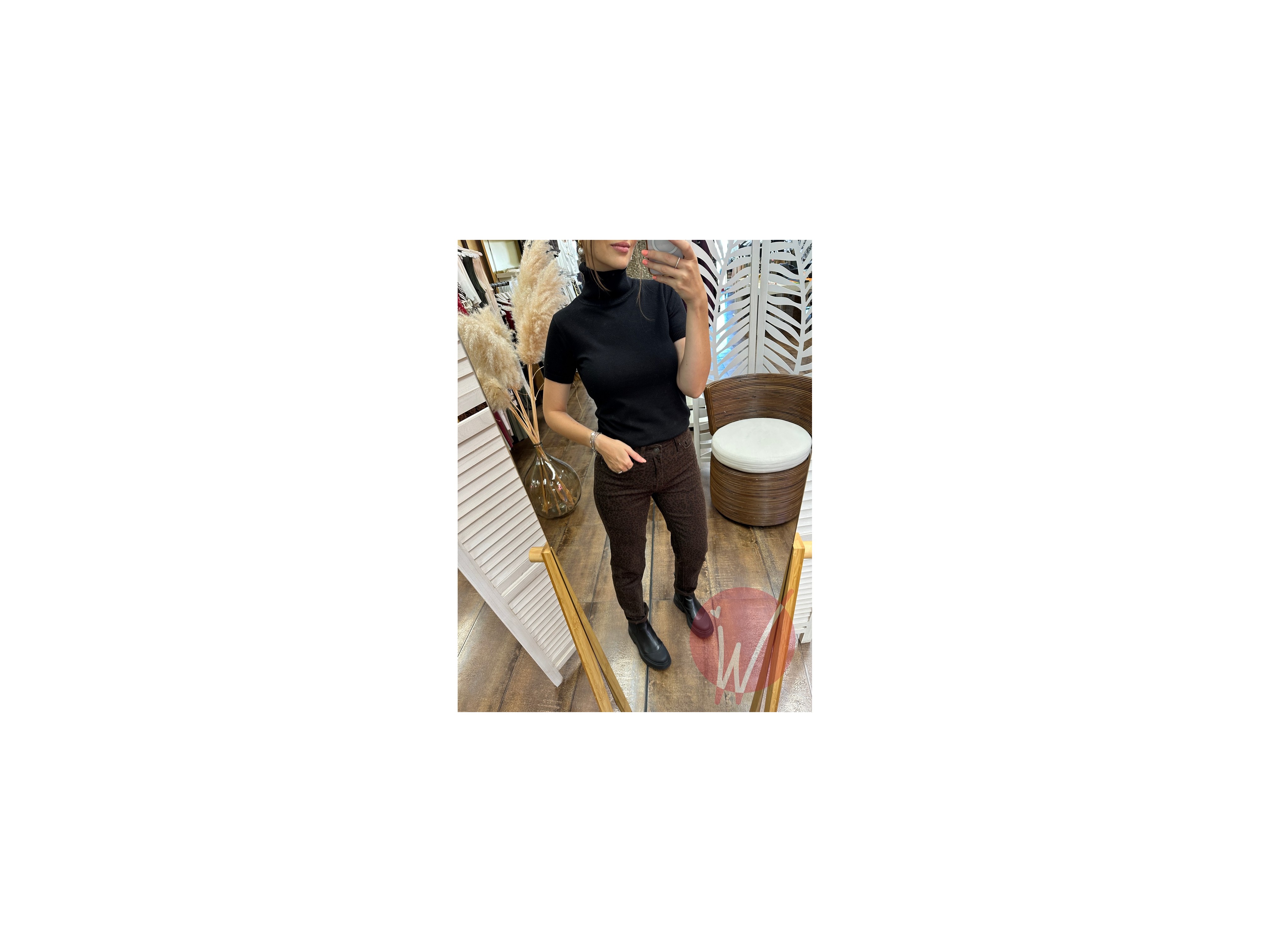 Dolcevita in viscosa morbida ed elasticizzata, con collo alto, a manica corta.