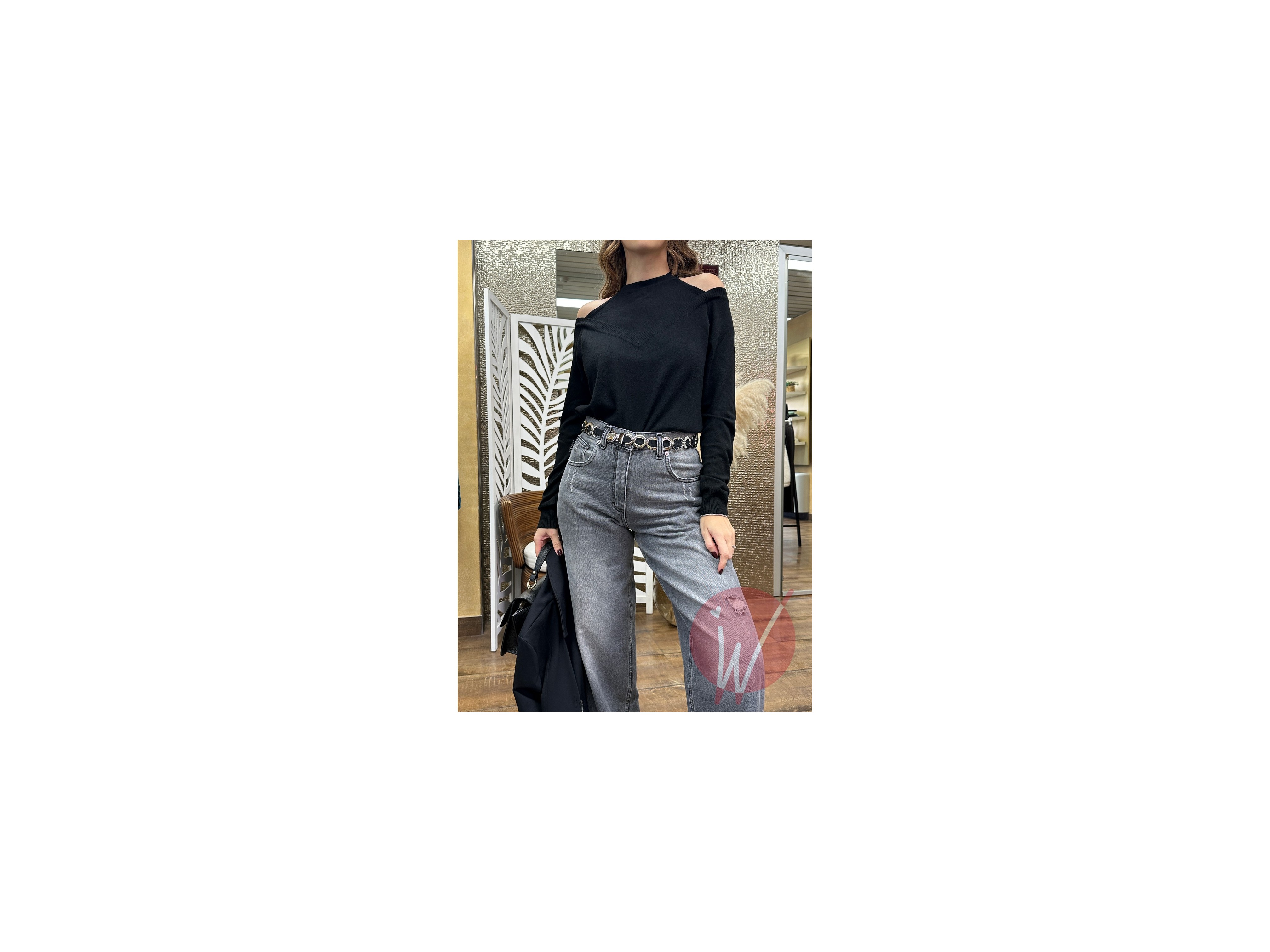 Maglia in viscosa morbida ed elasticizzata, spacchi sulle spalle, finto doppio strato sullo scollo.