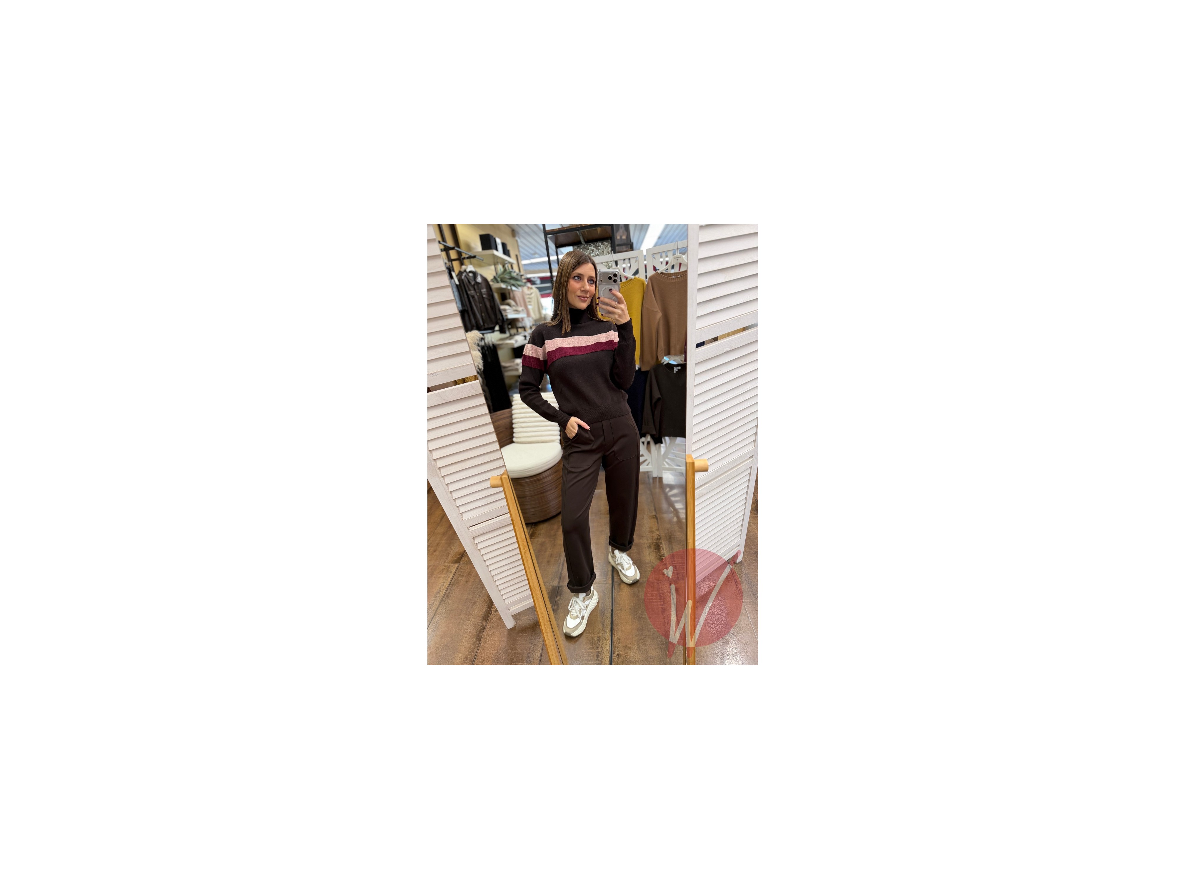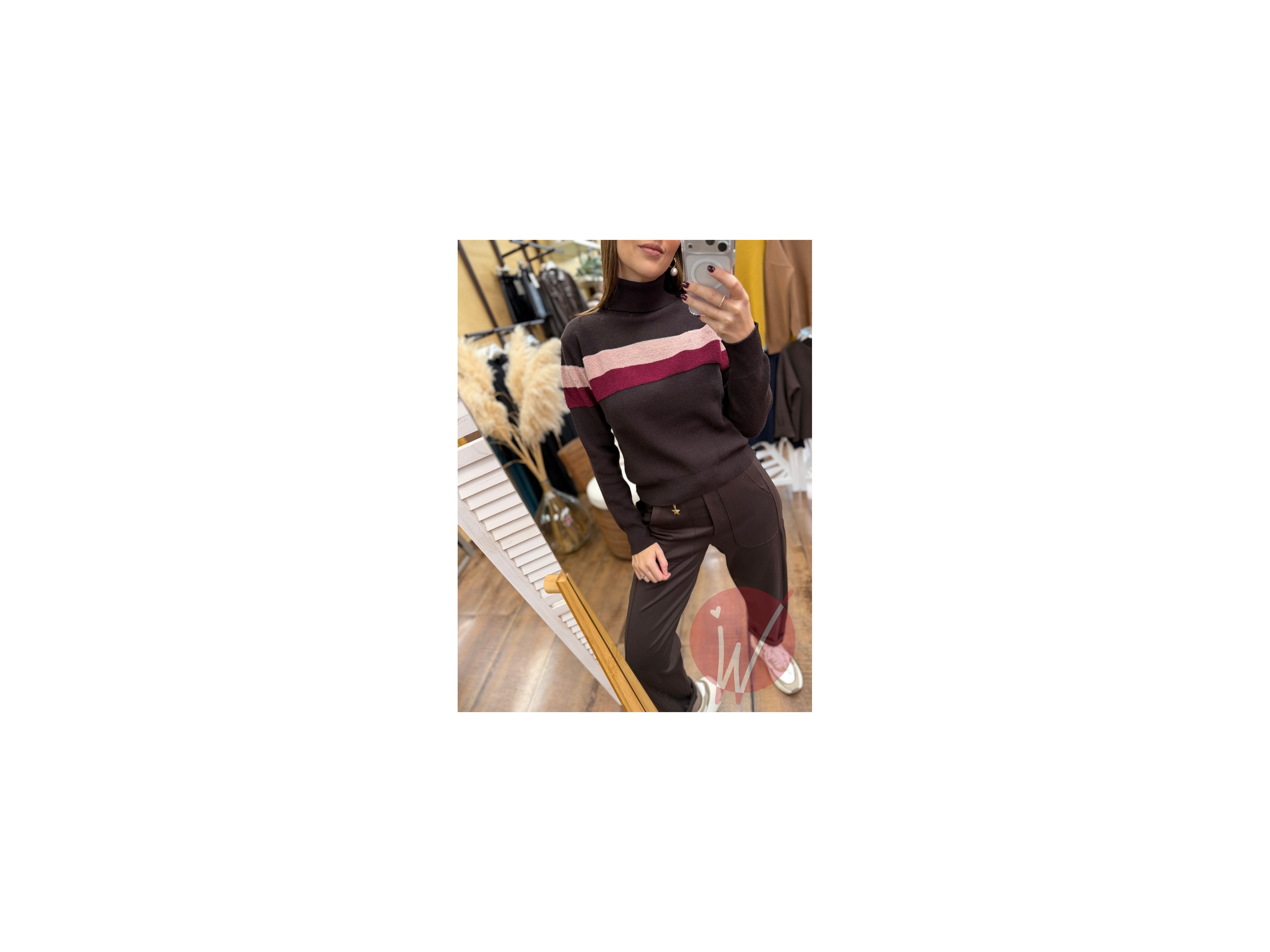 Maglia dolcevita in viscosa calda, con bande effetto spugnato.