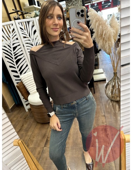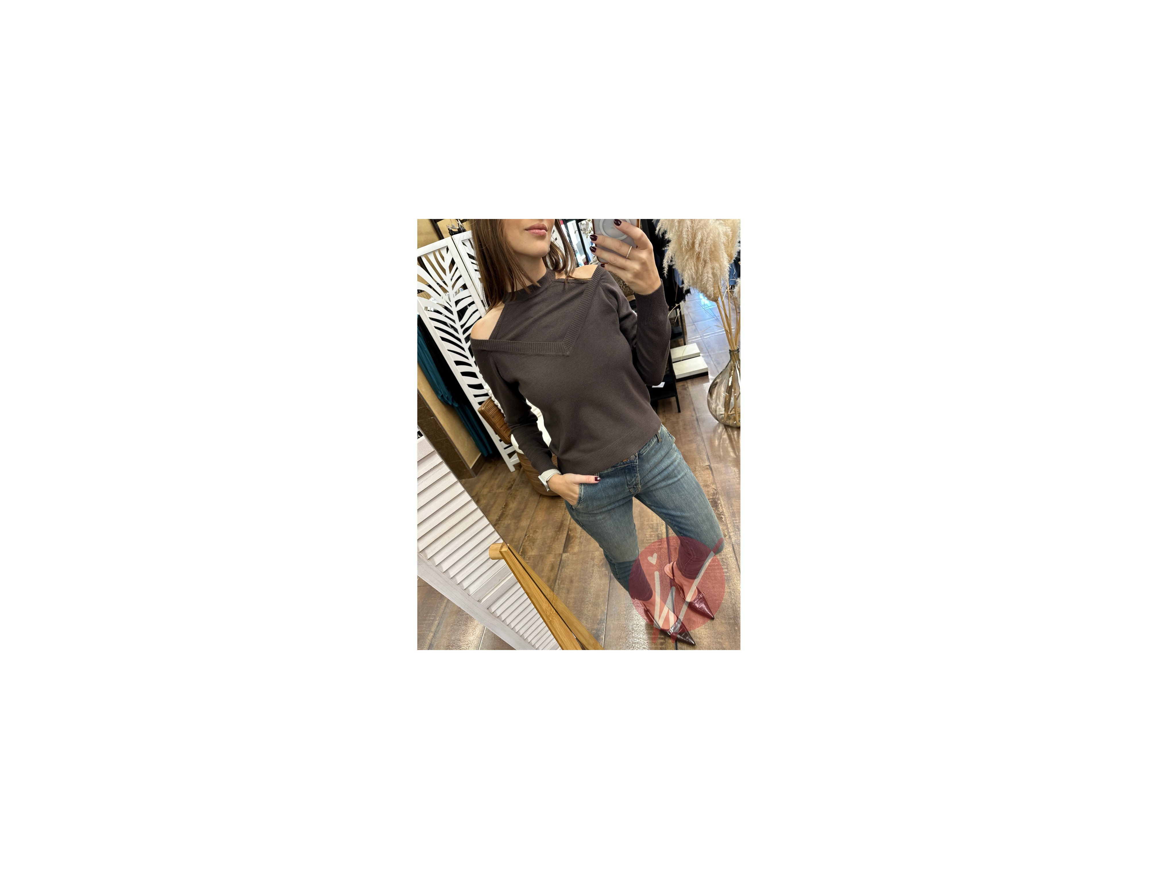 Maglia in viscosa morbida ed elasticizzata, spacchi sulle spalle, finto doppio strato sullo scollo.
