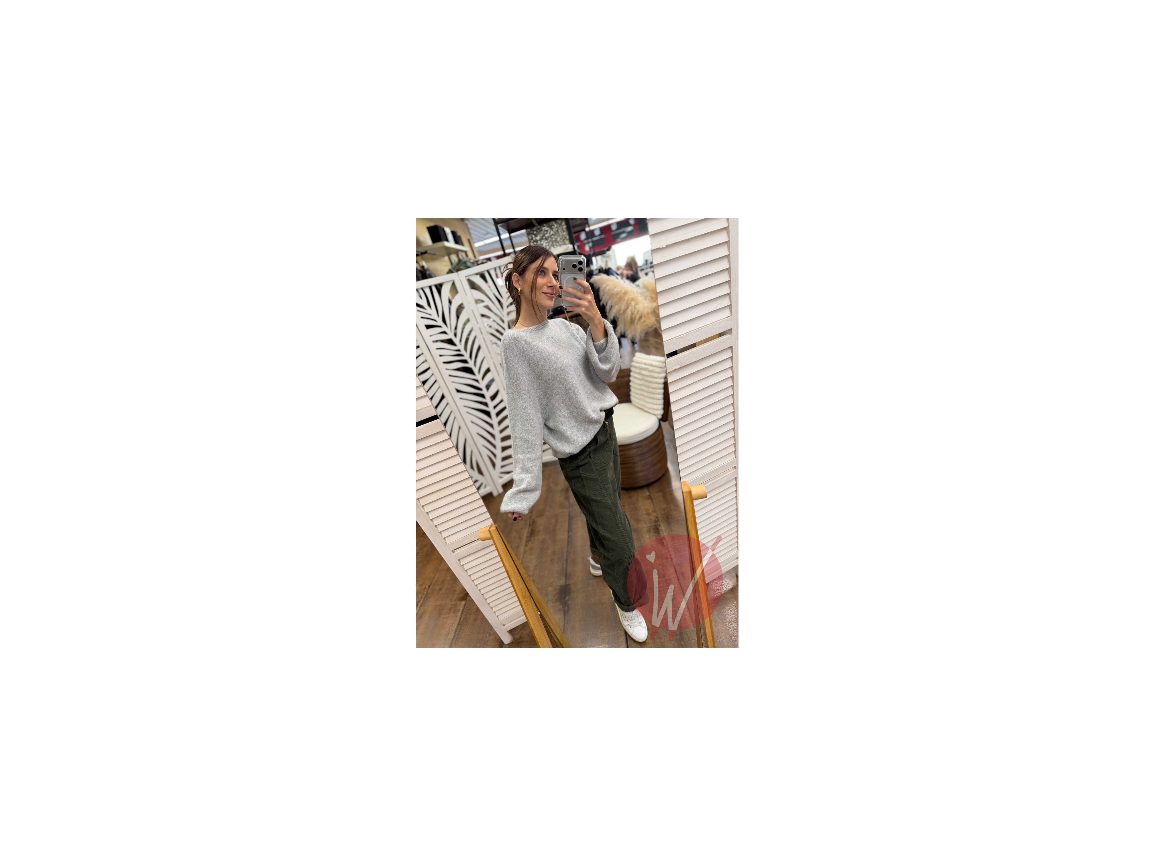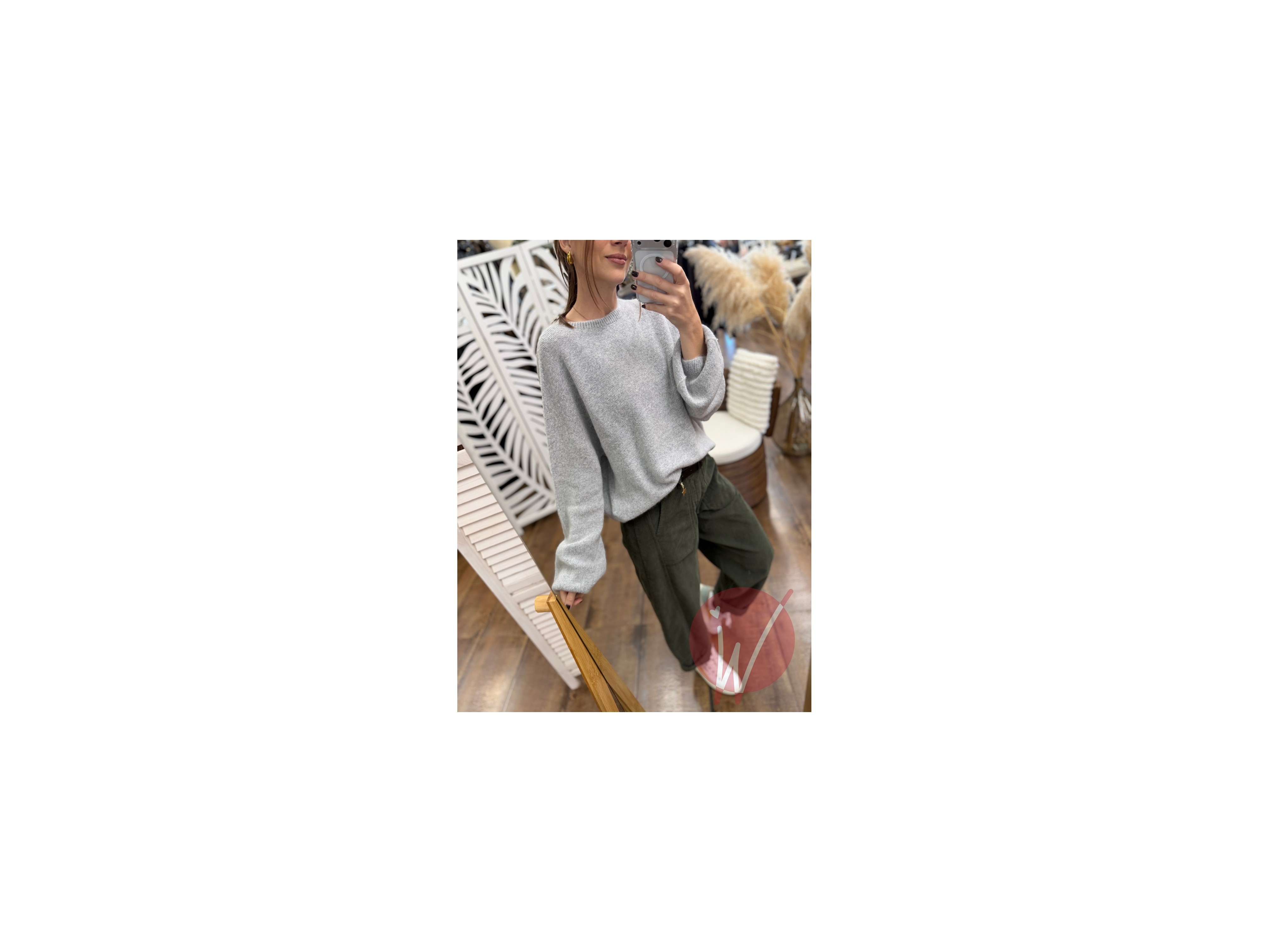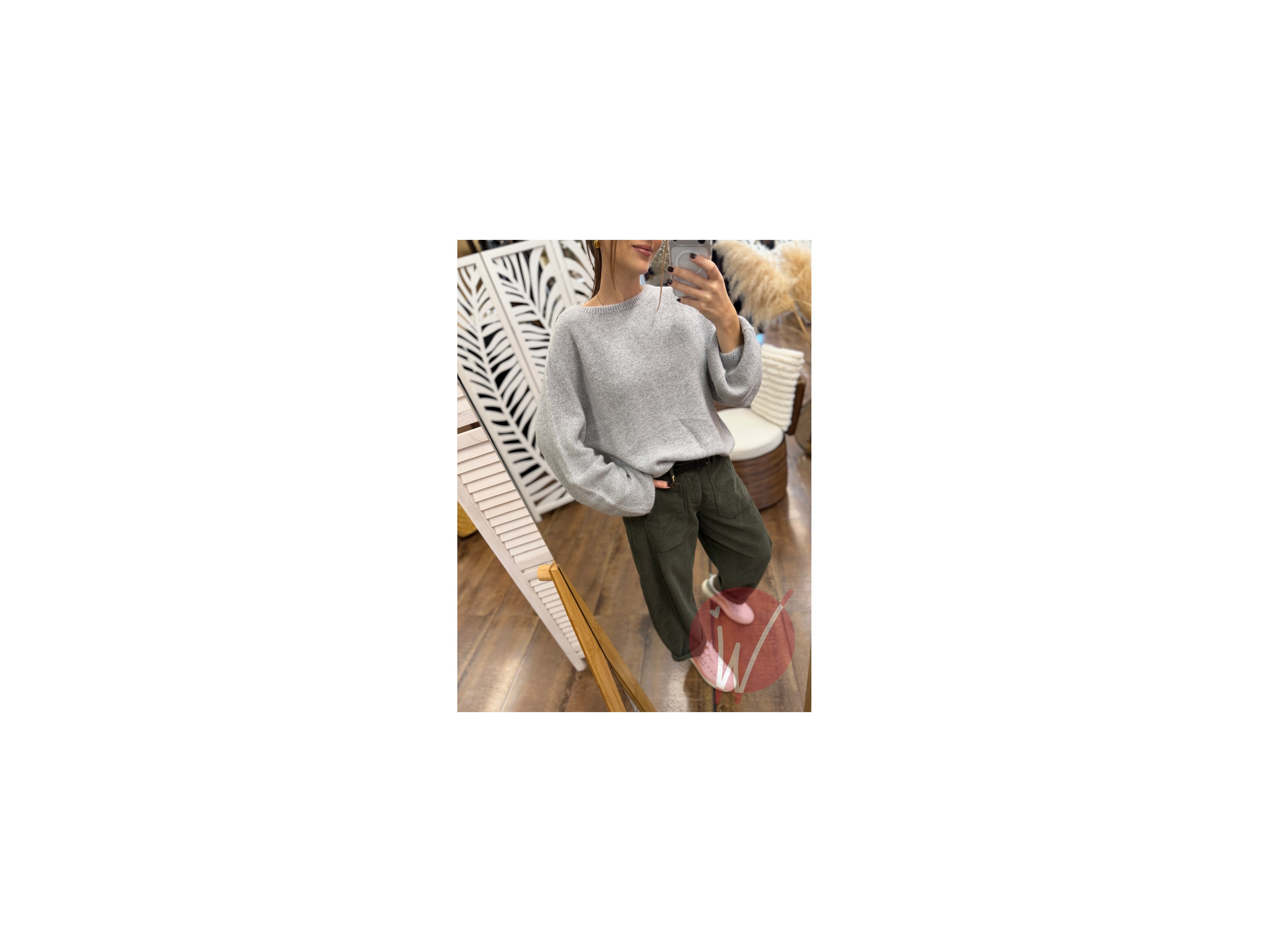 Maglia in tessuto caldo e morbido, scollo a barchetta, maniche a sbuffo, fascione elastico sotto.