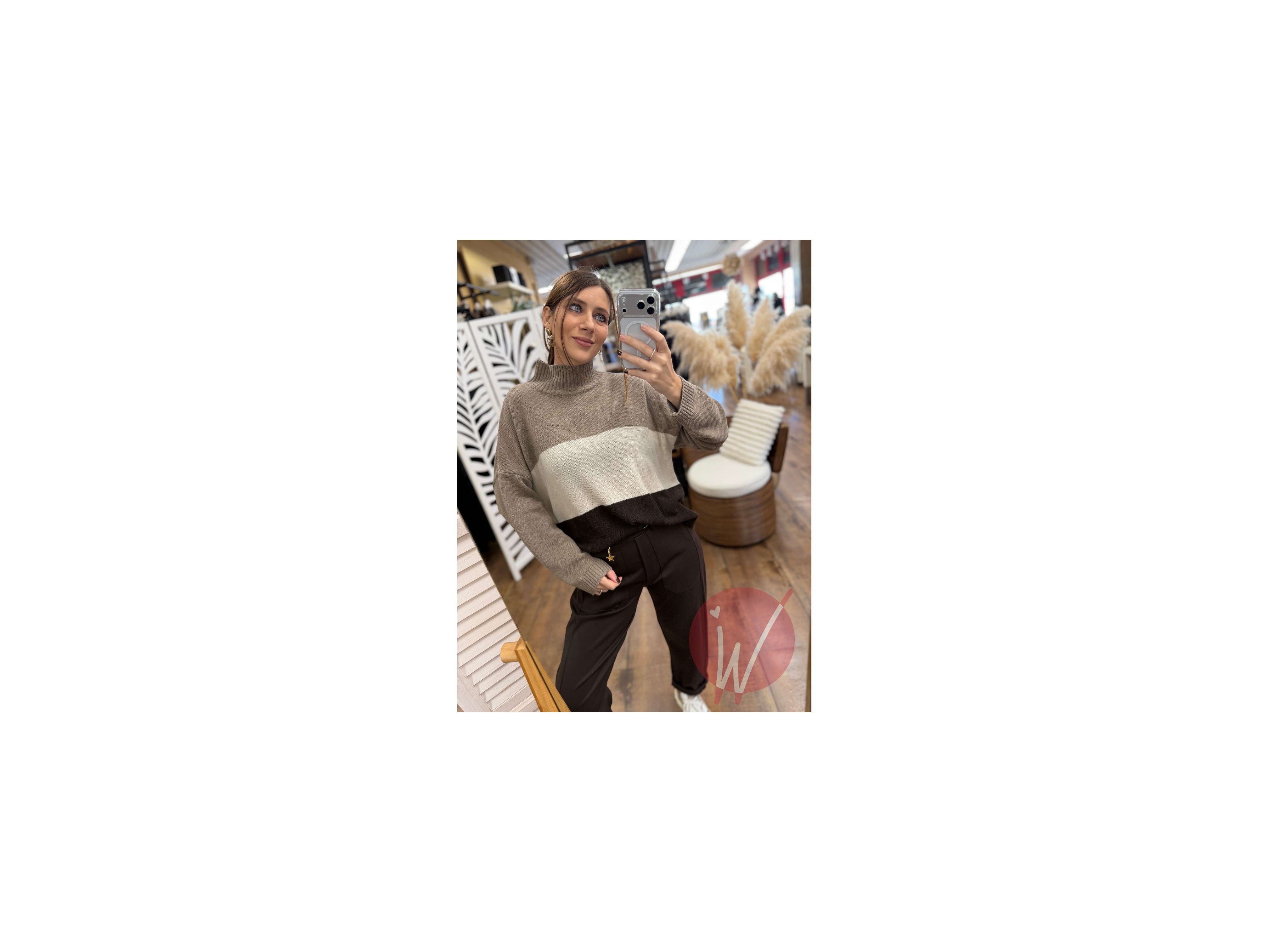 Maglia in viscosa misto lana morbida e calda, taglio dritto a scatolina, collo a lupetto.