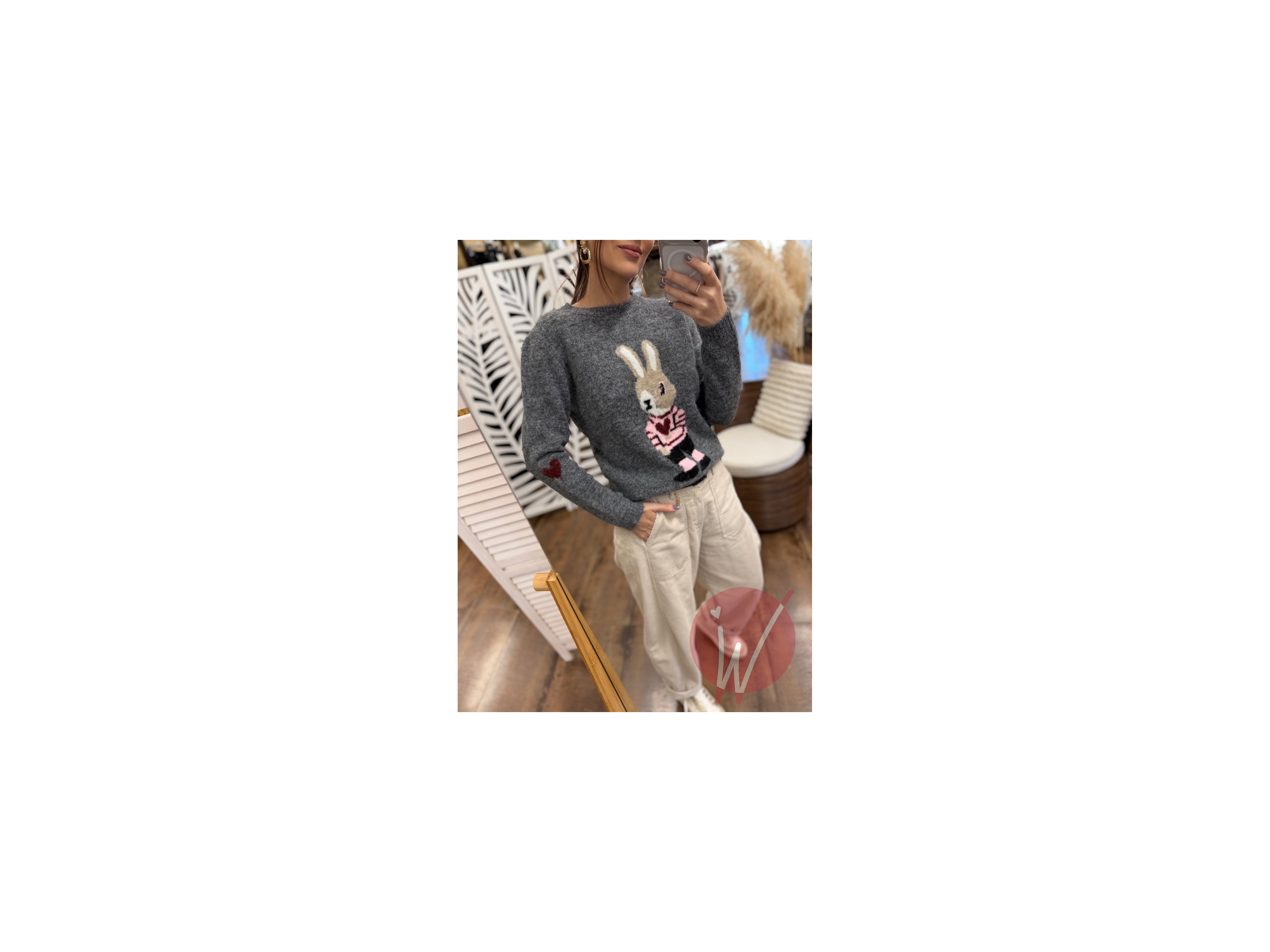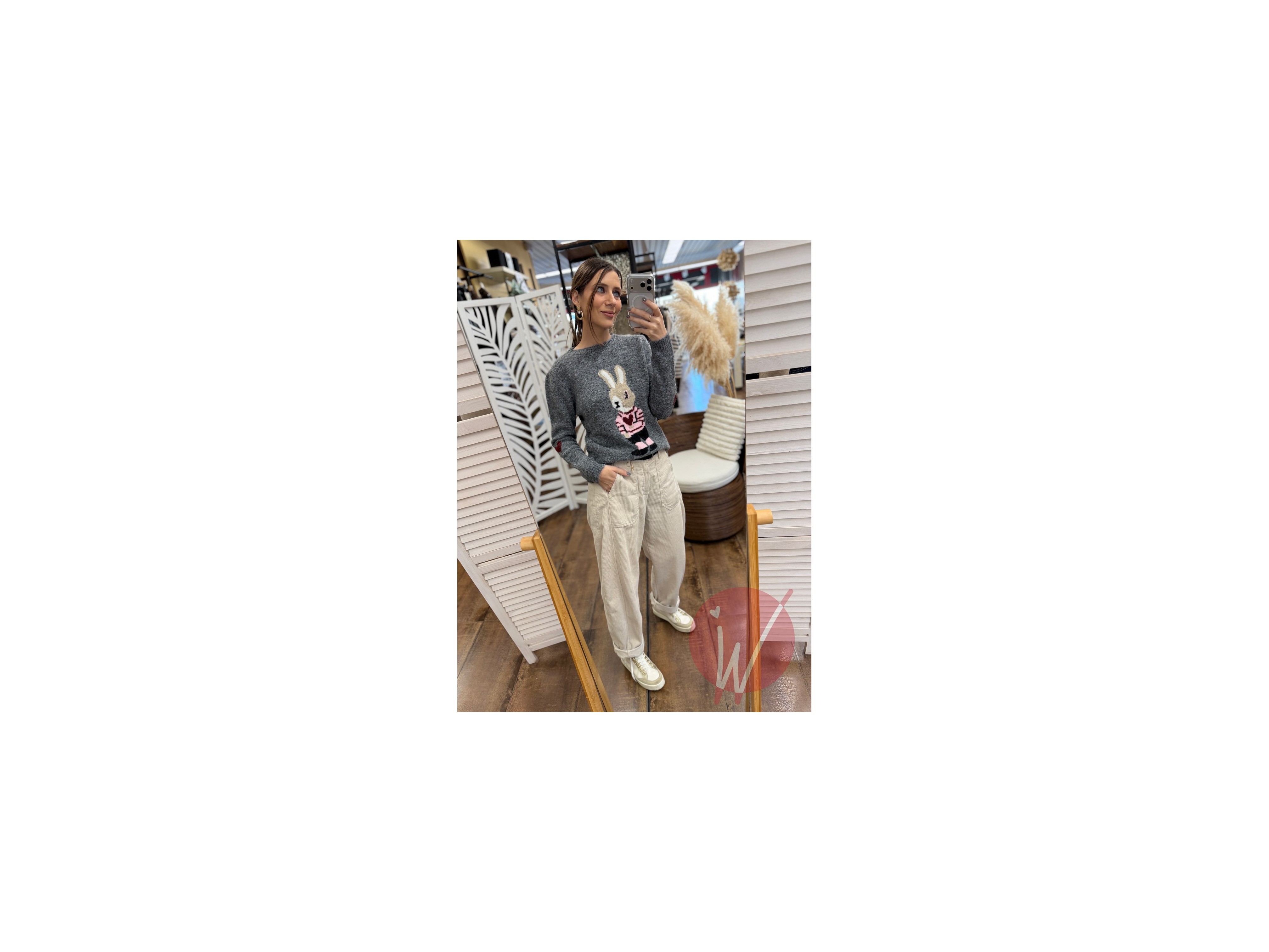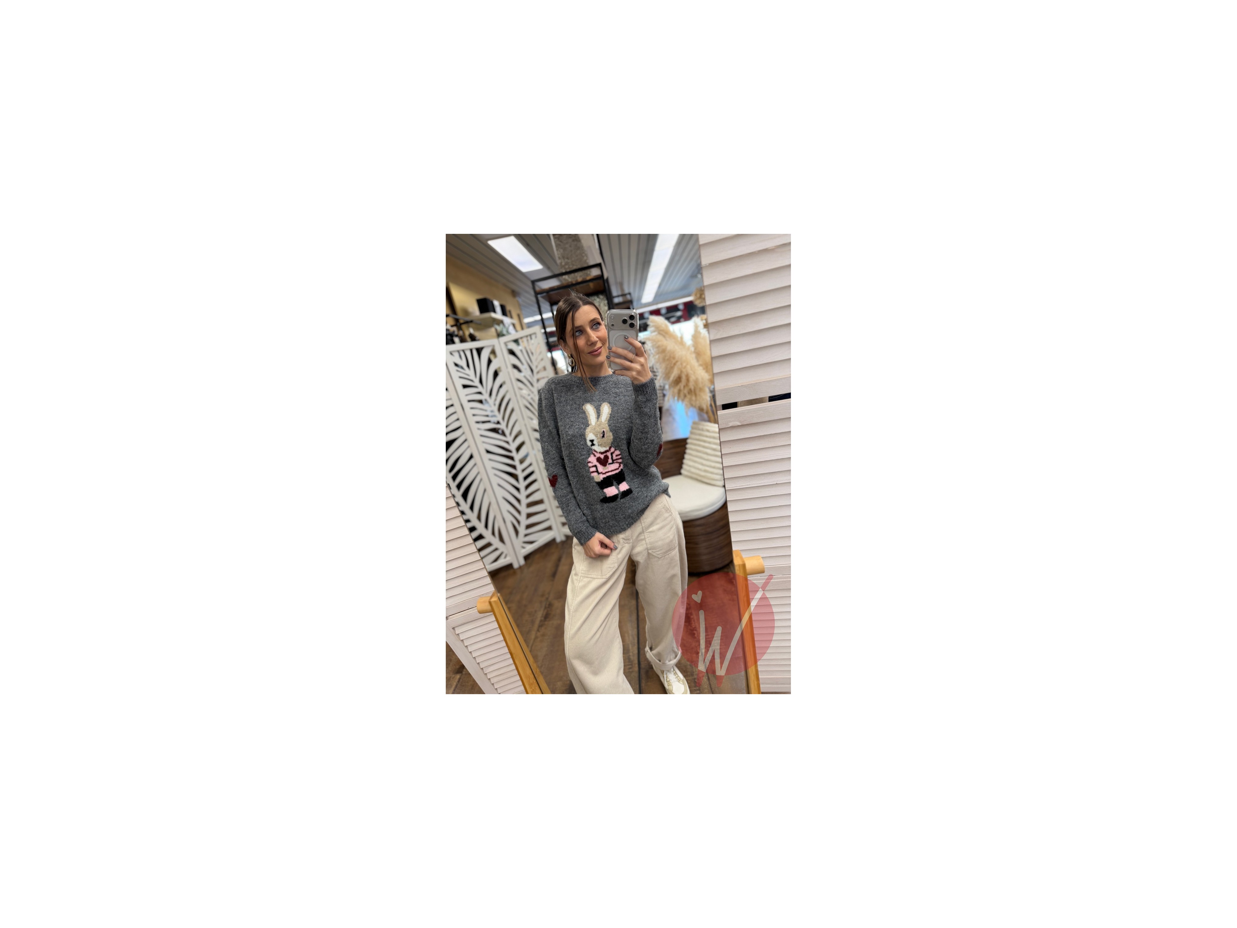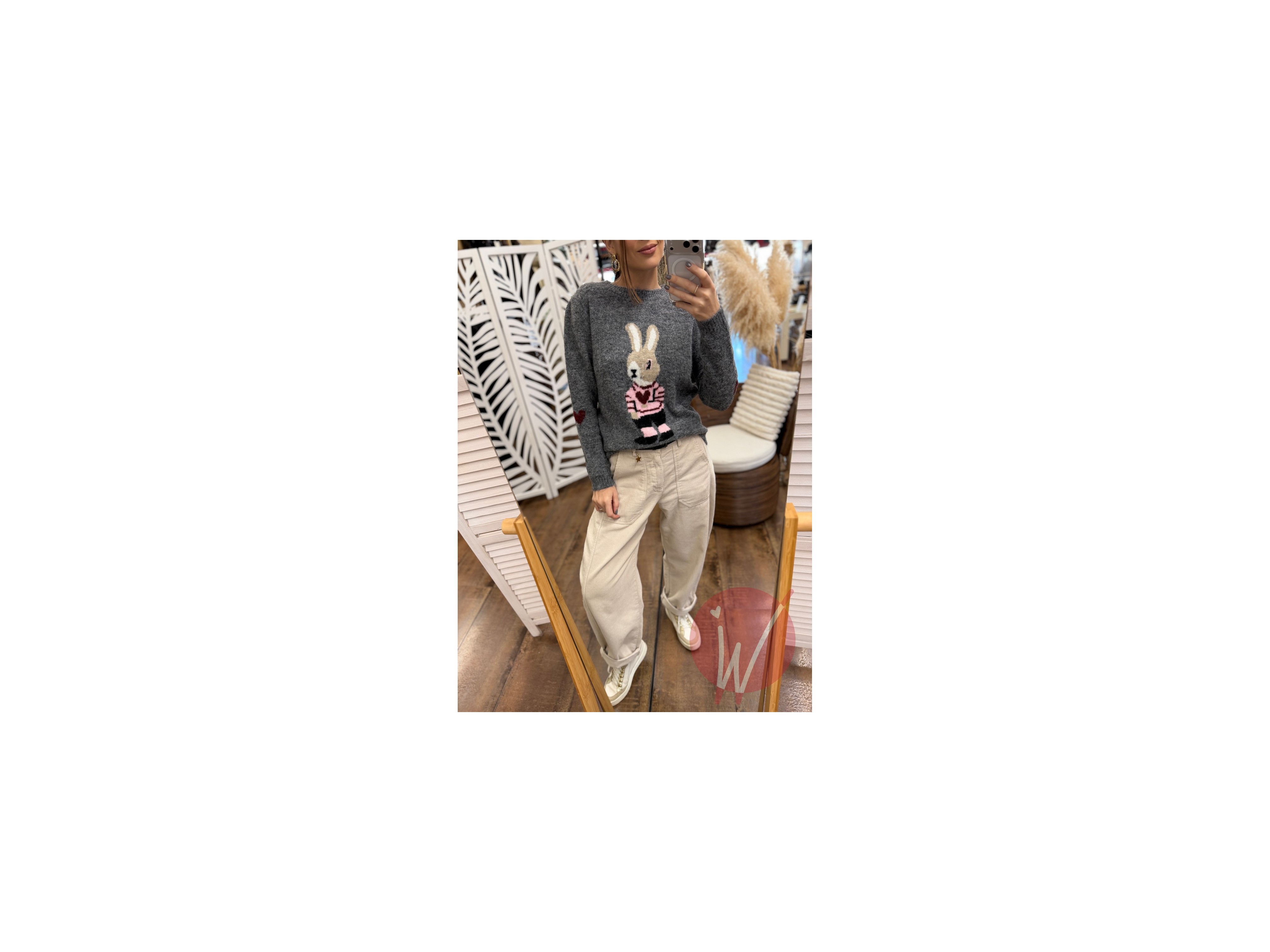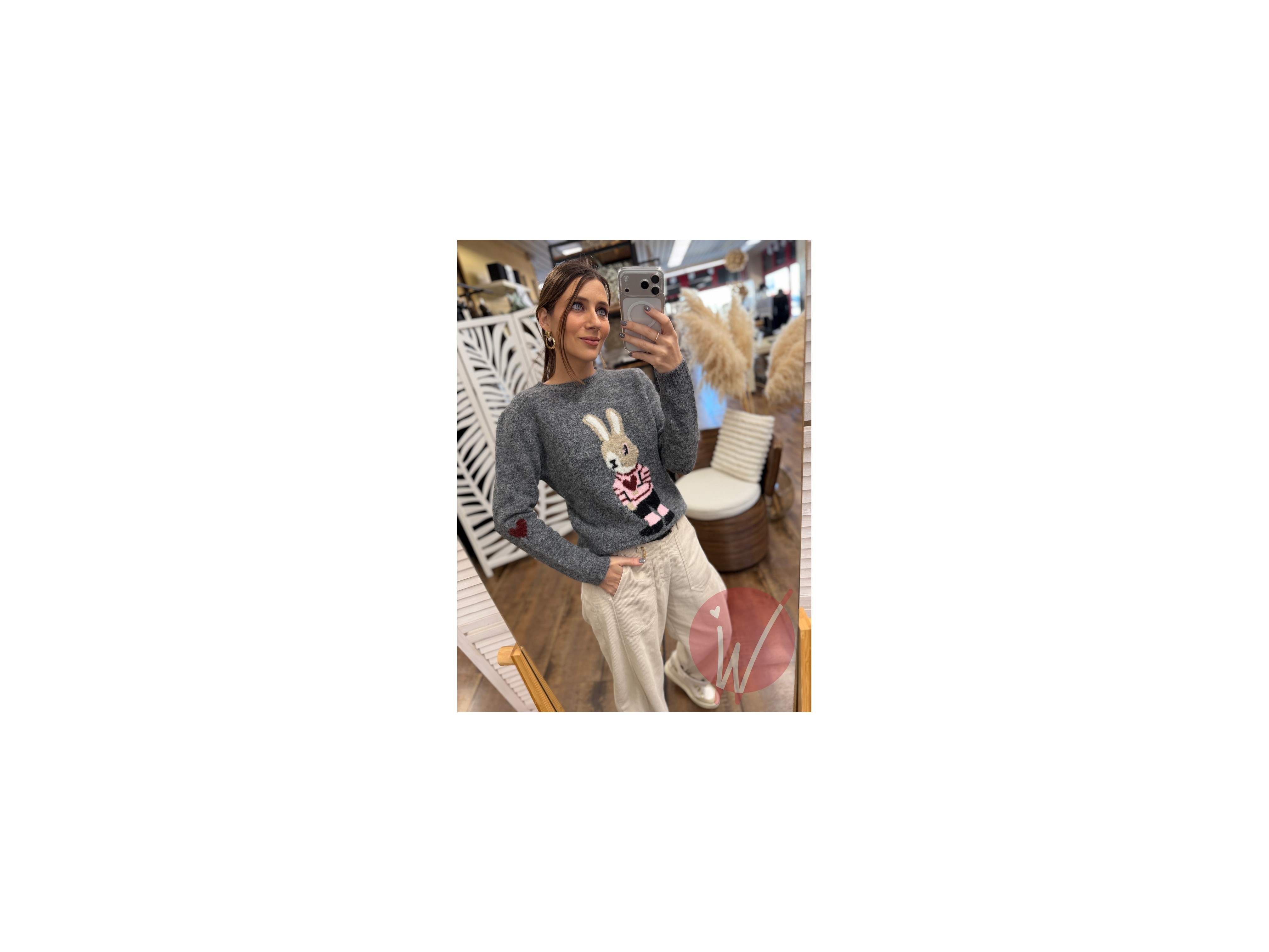 Pull caldo e morbido con ricamo davanti, modello girocollo, ricamo ai gomiti.