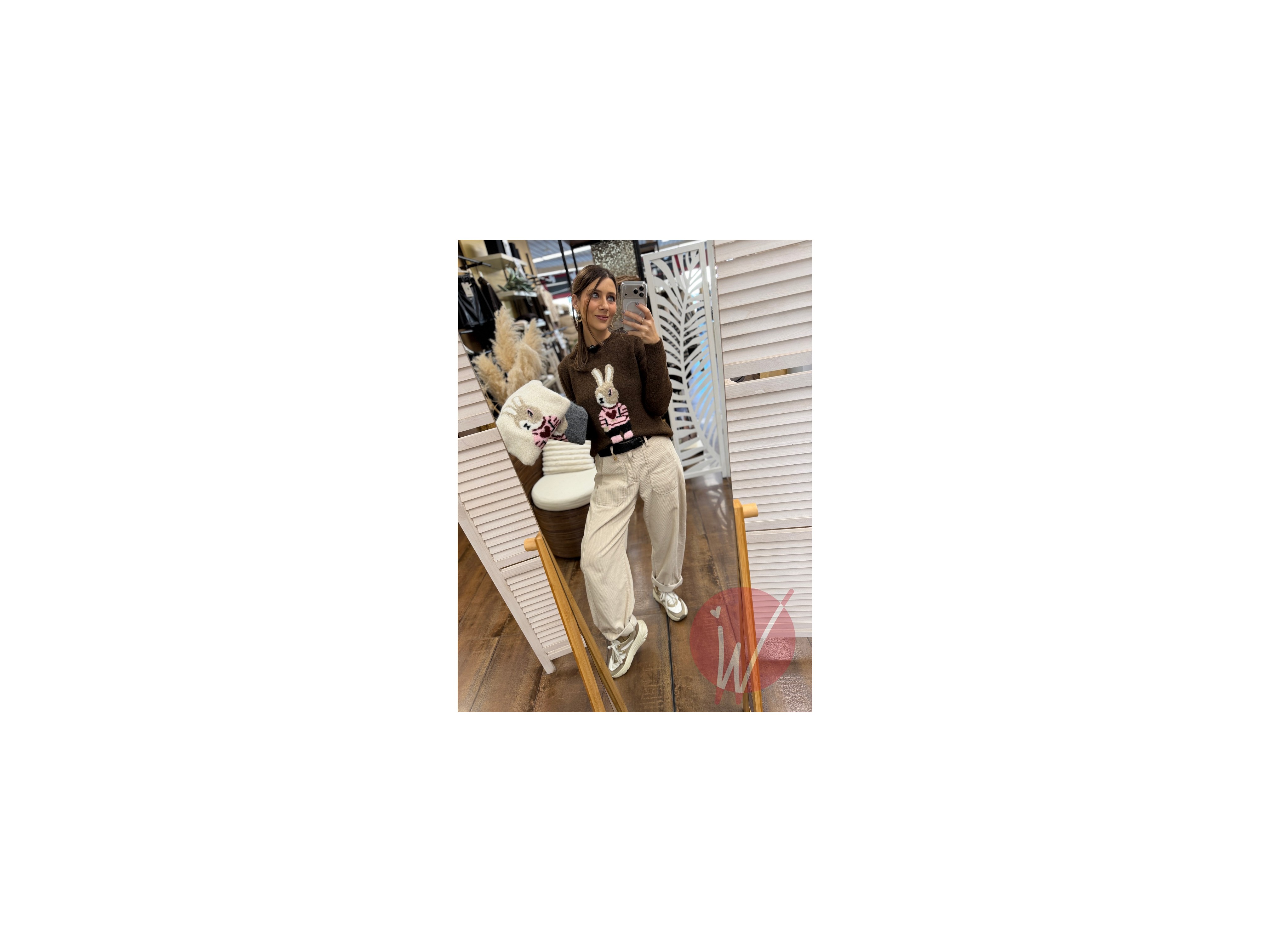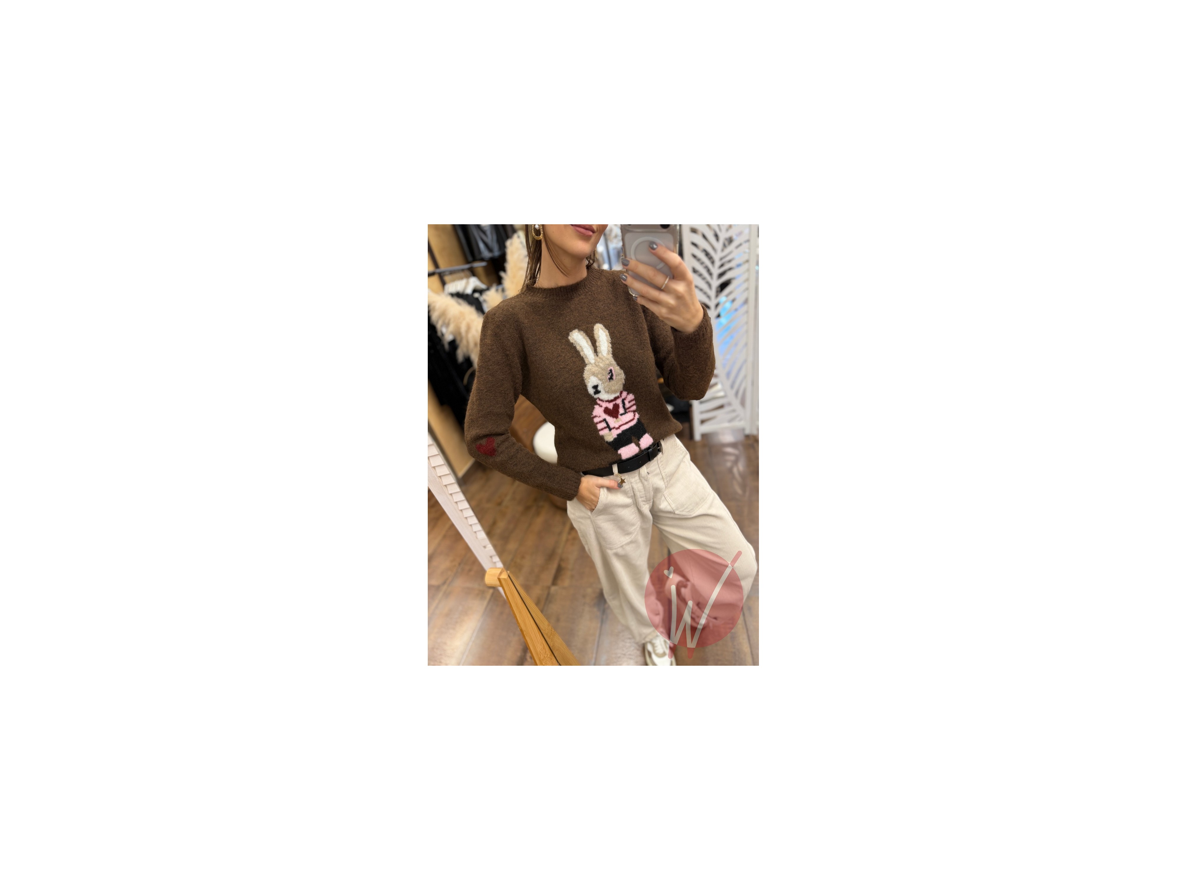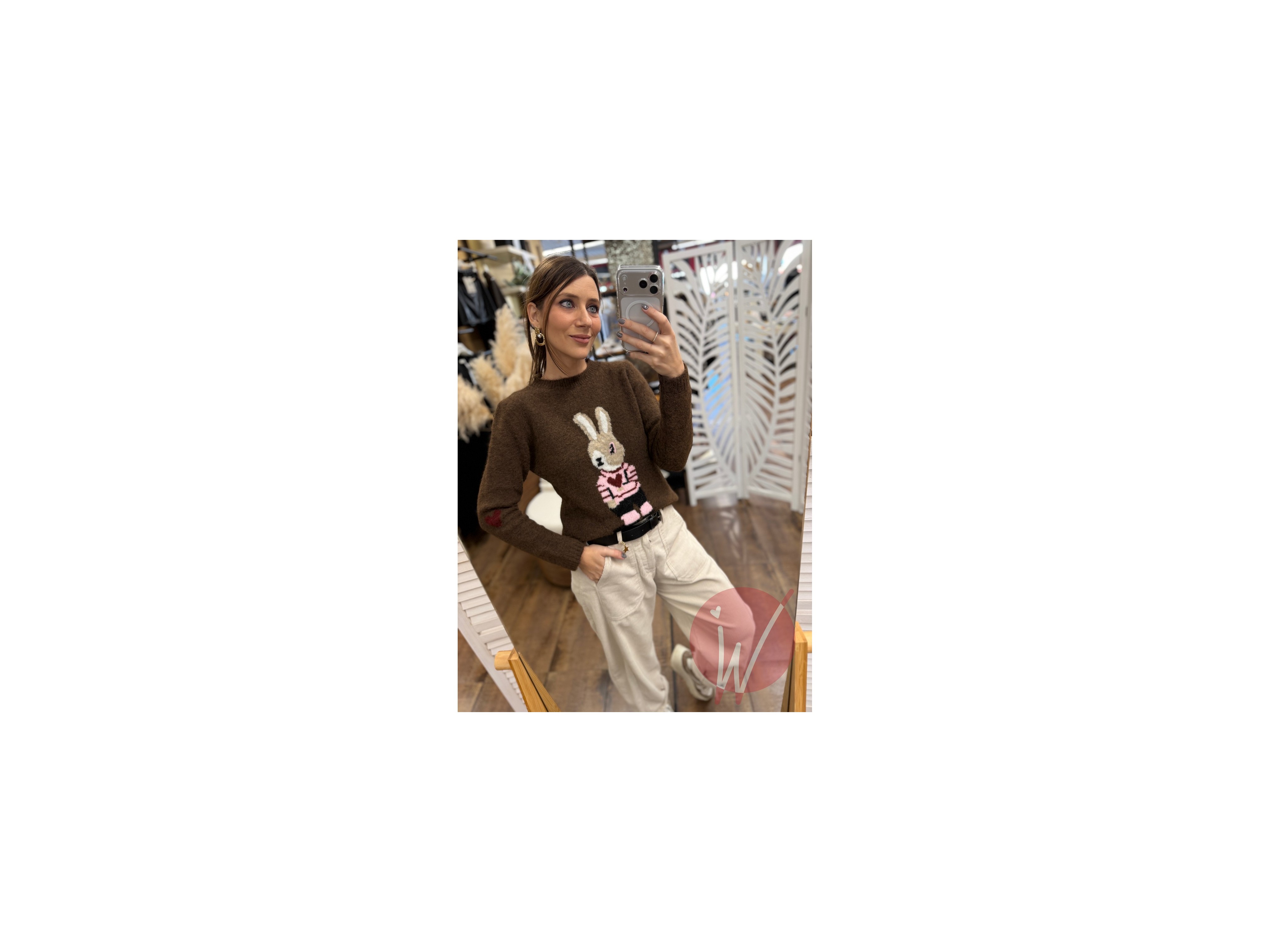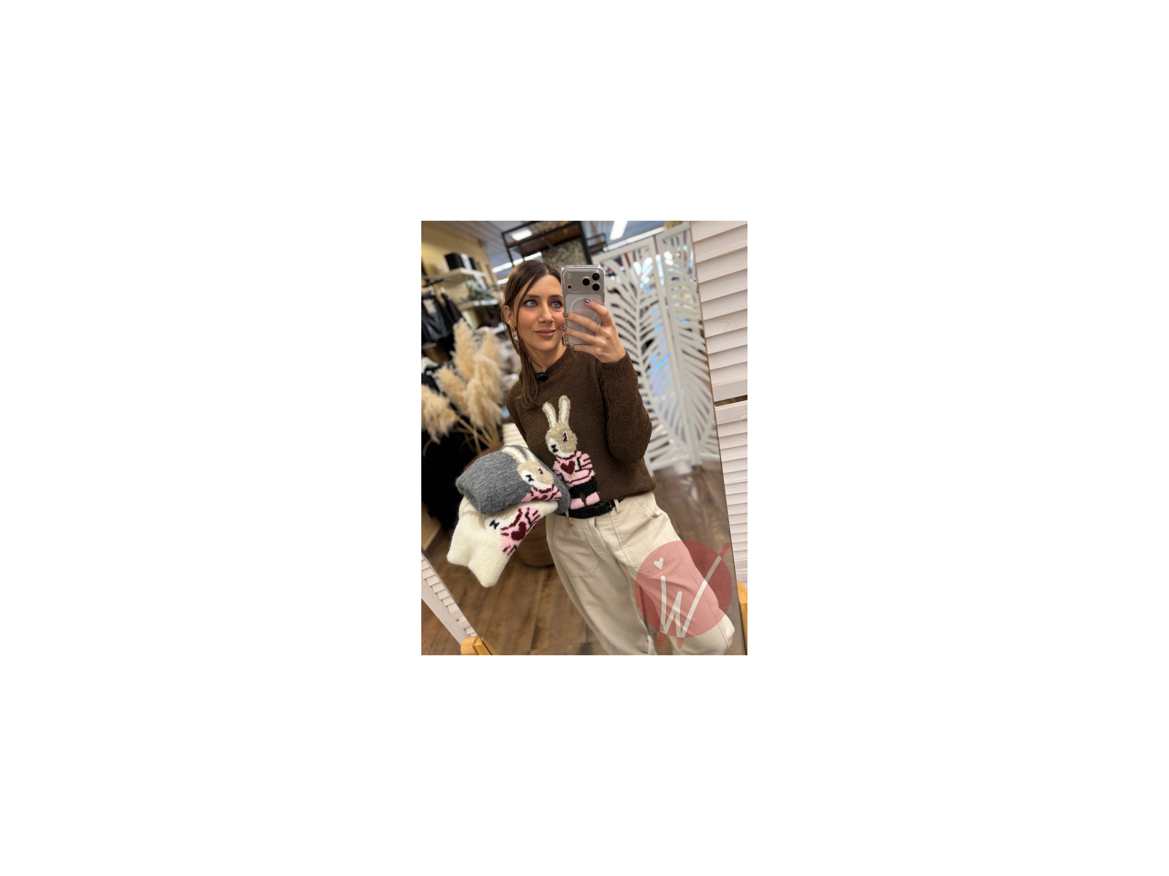 Pull caldo e morbido con ricamo davanti, modello girocollo, ricamo ai gomiti.