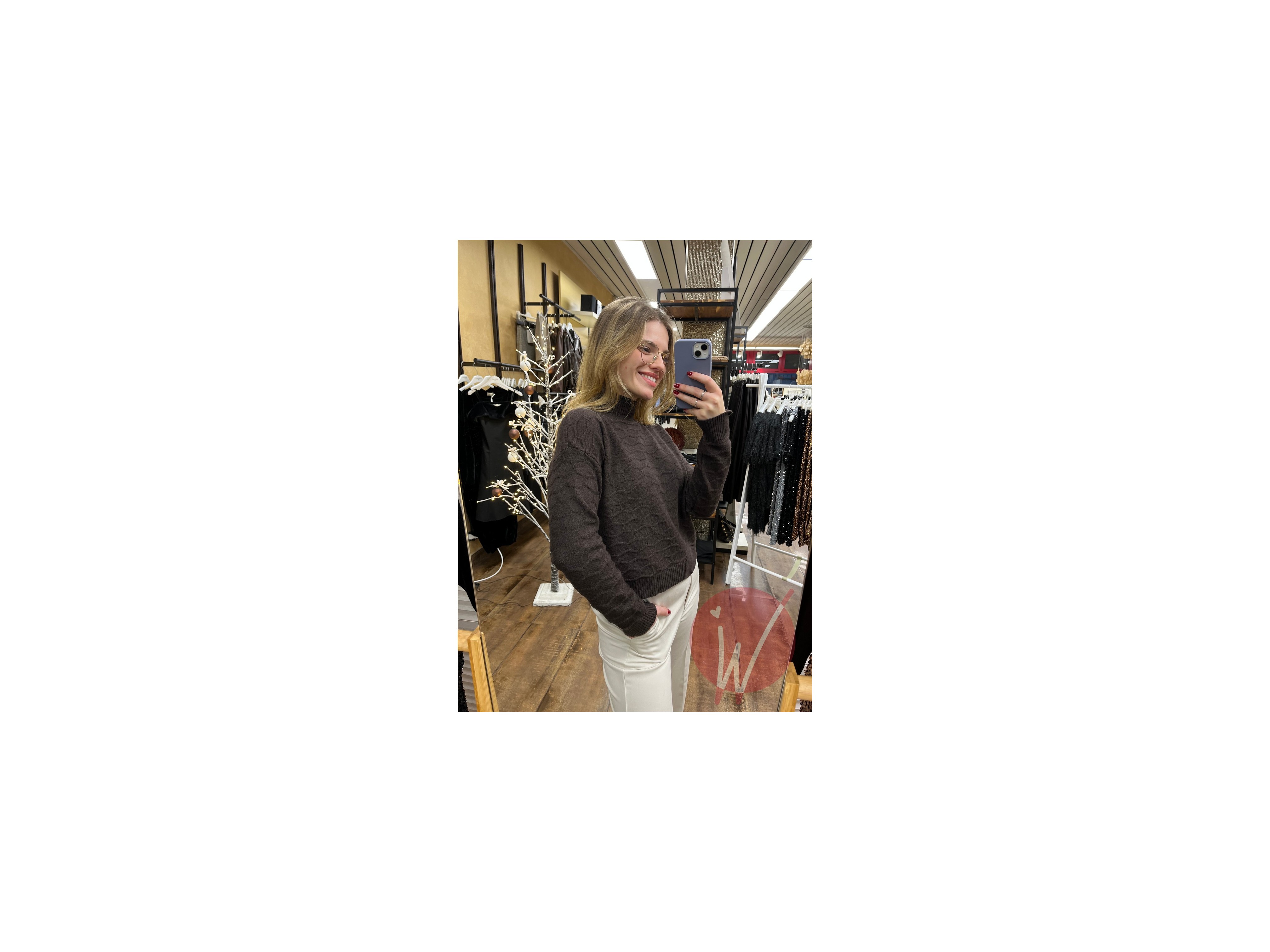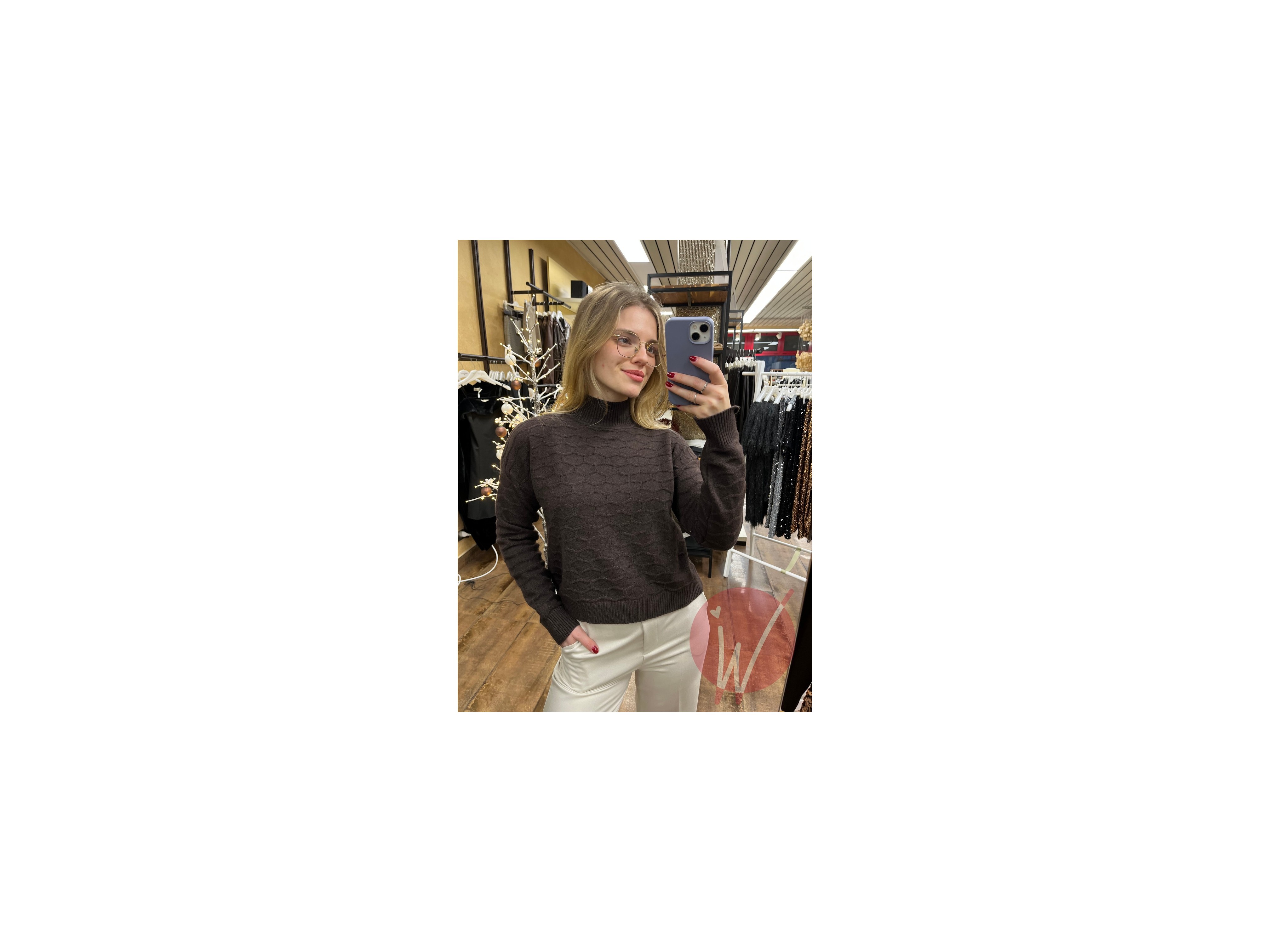 Maglia con collo a lupetto, in viscosa morbida e calda, lavorazione ad onda, taglio a scatola.