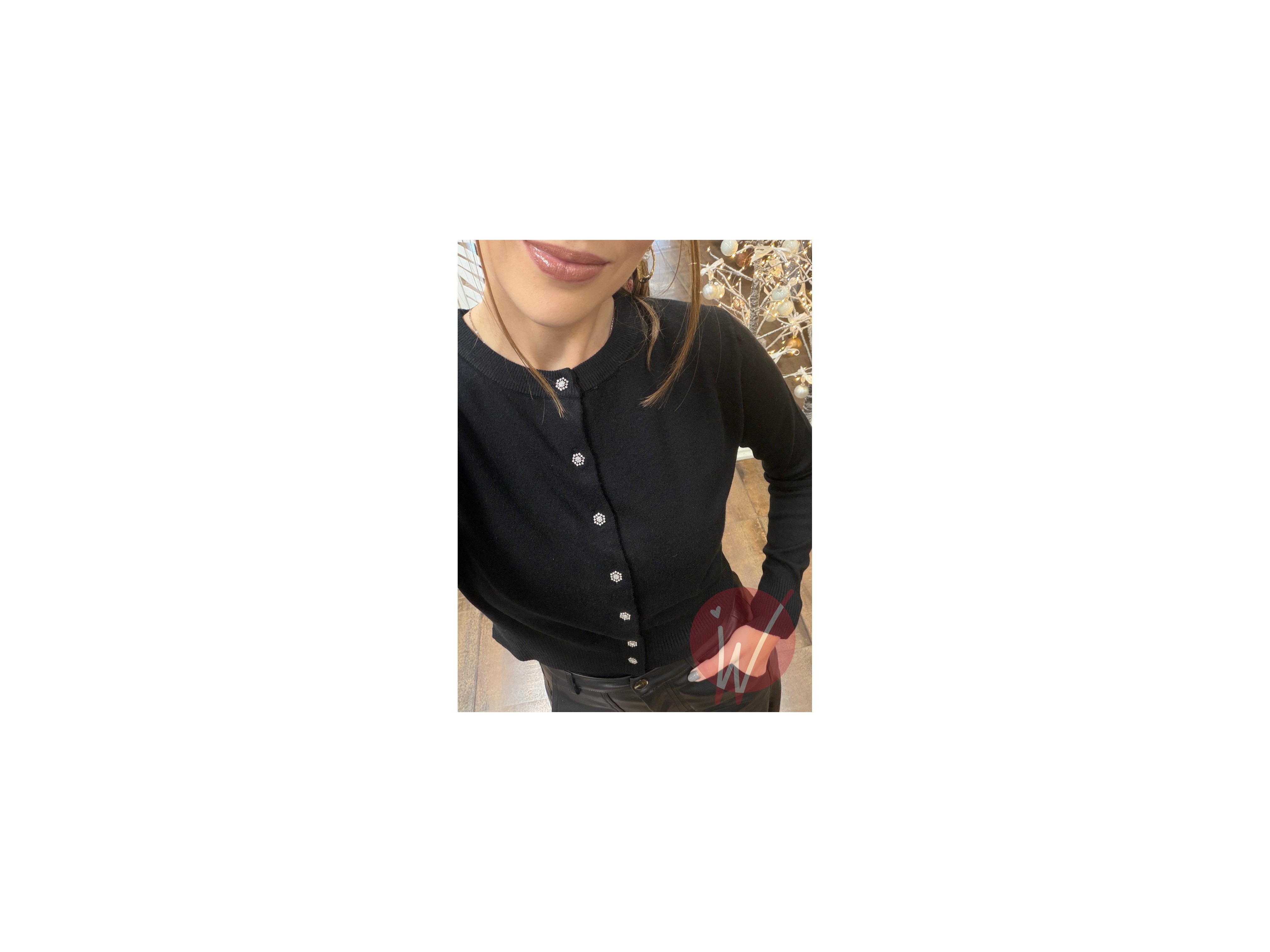 Cardigan in viscosa morbida e calda con collo alla coreana, con bottoncini gioiello, taglio leggermente crop.