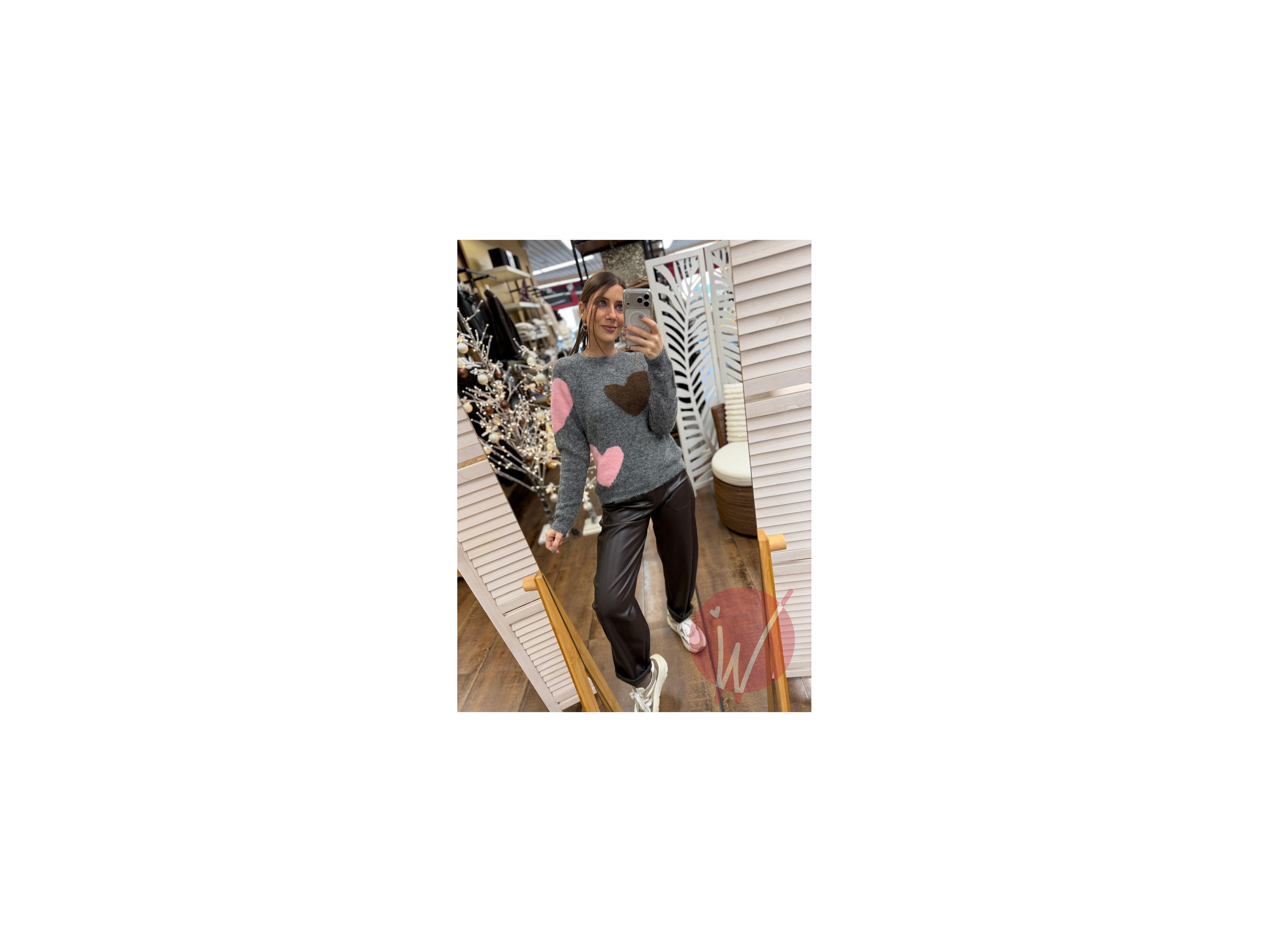 Pull in misto lana, con lavorazione in fantasia a cuori multicolor.