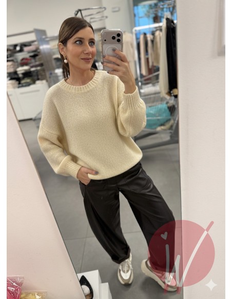 Pull in viscosa misto lana, girocollo, modello over ad ovetto.