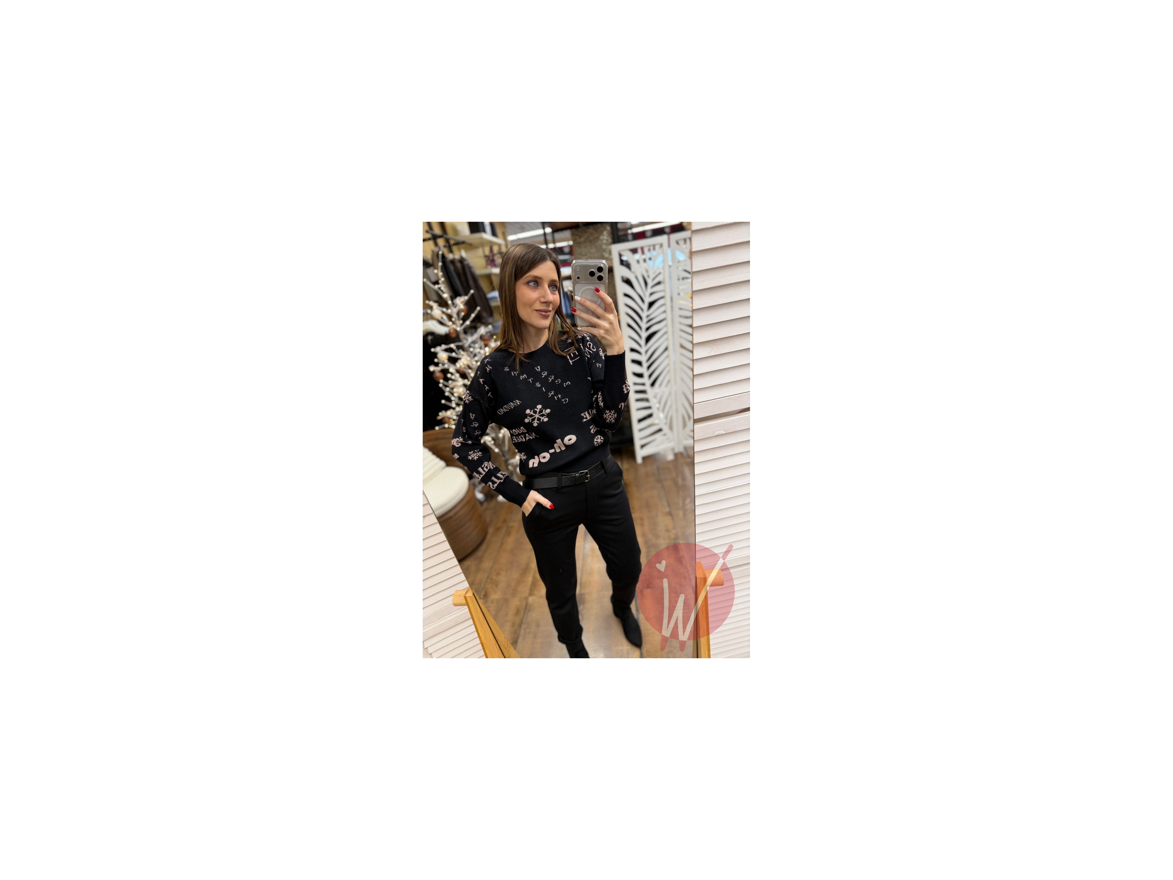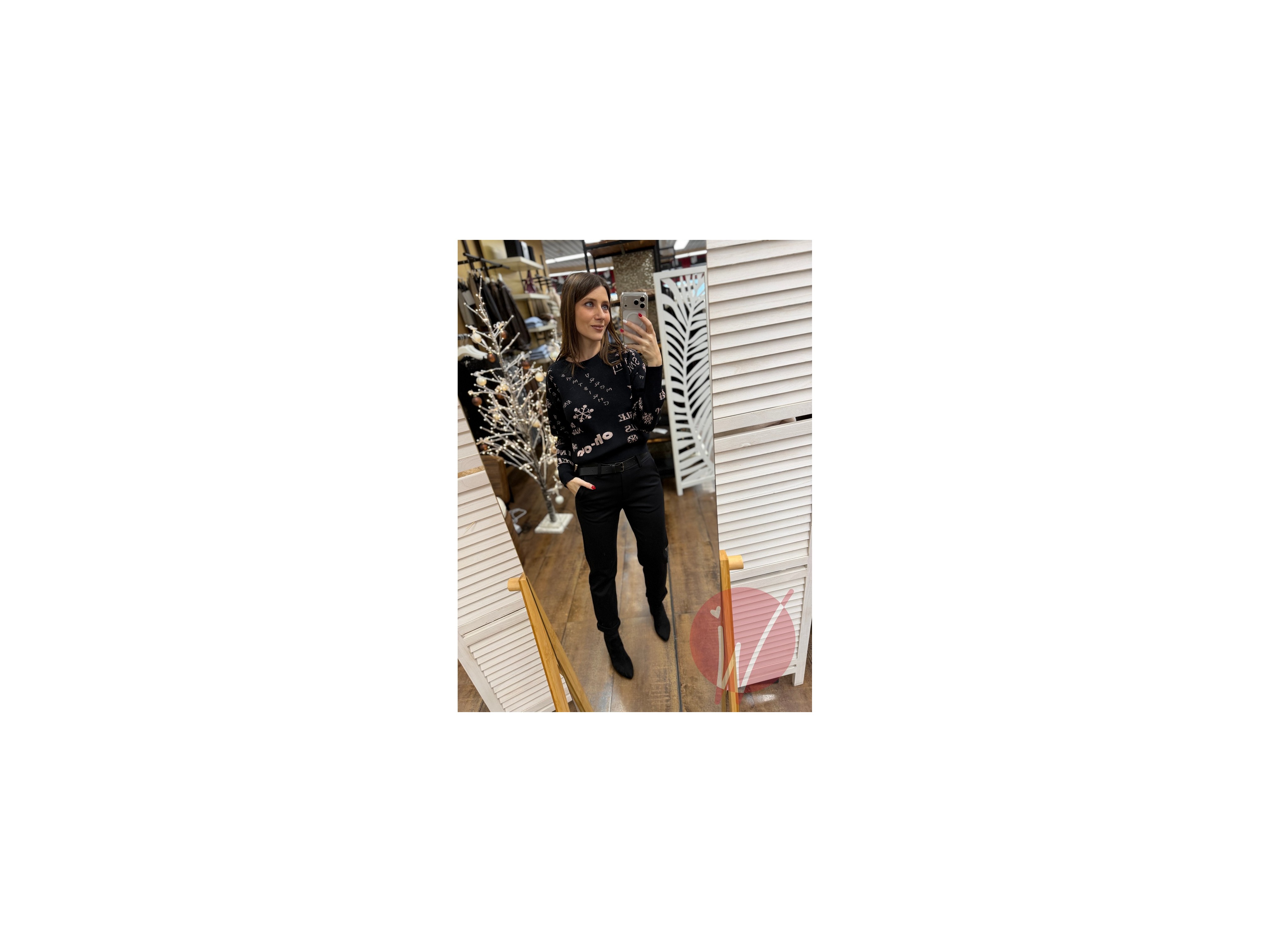 Maglia in viscosa calda ed elasticizzata, con ricamo di lurex rosa cipria.