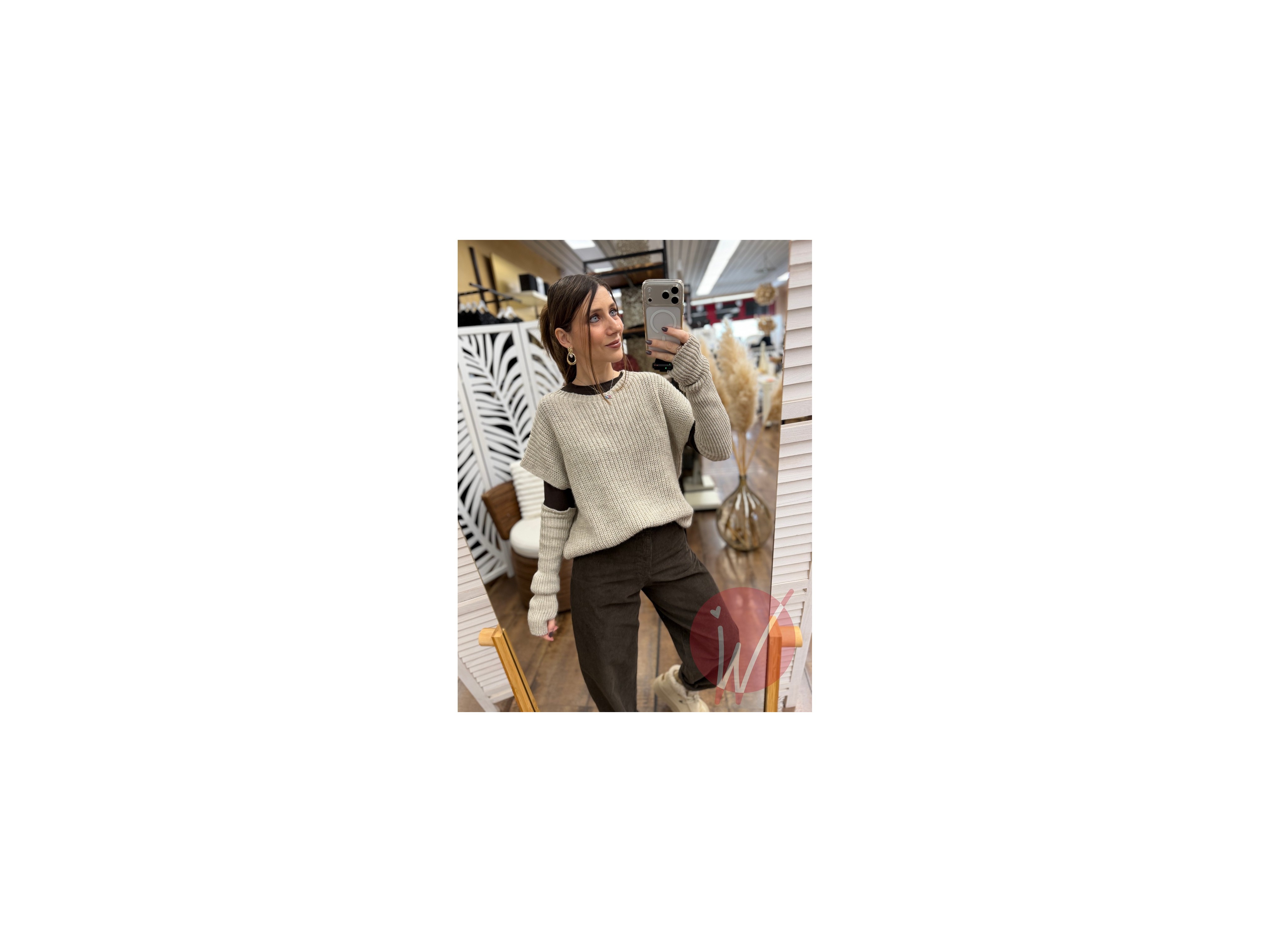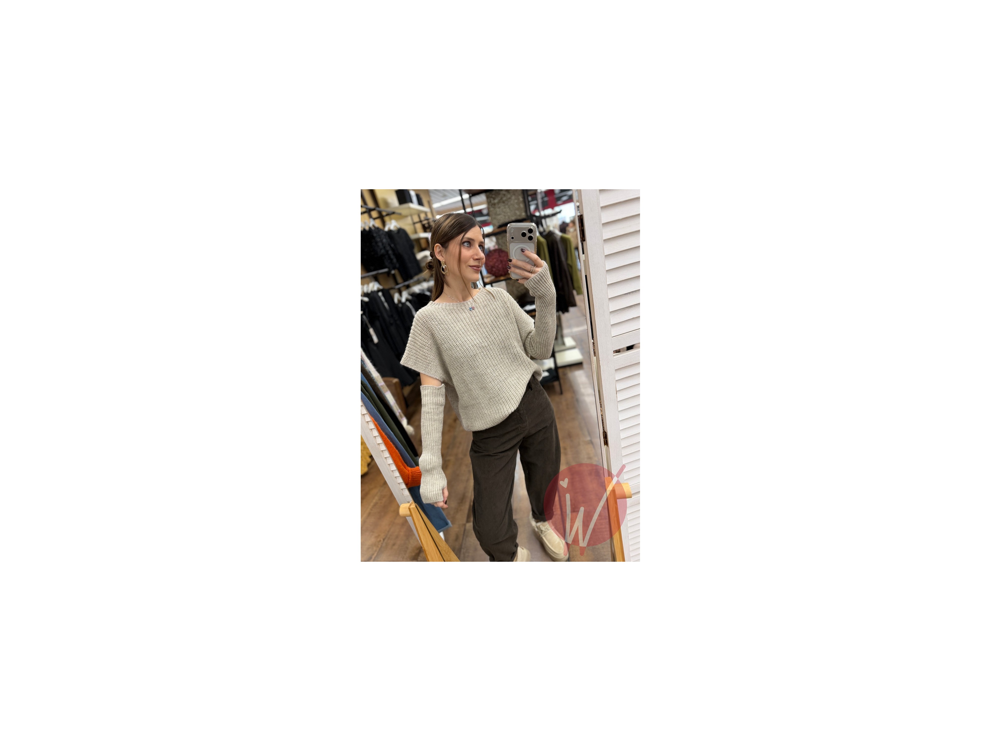 Pull a manica corta con manicotti inclusi, lavorazione a coste inglesi, vestibilità morbida.