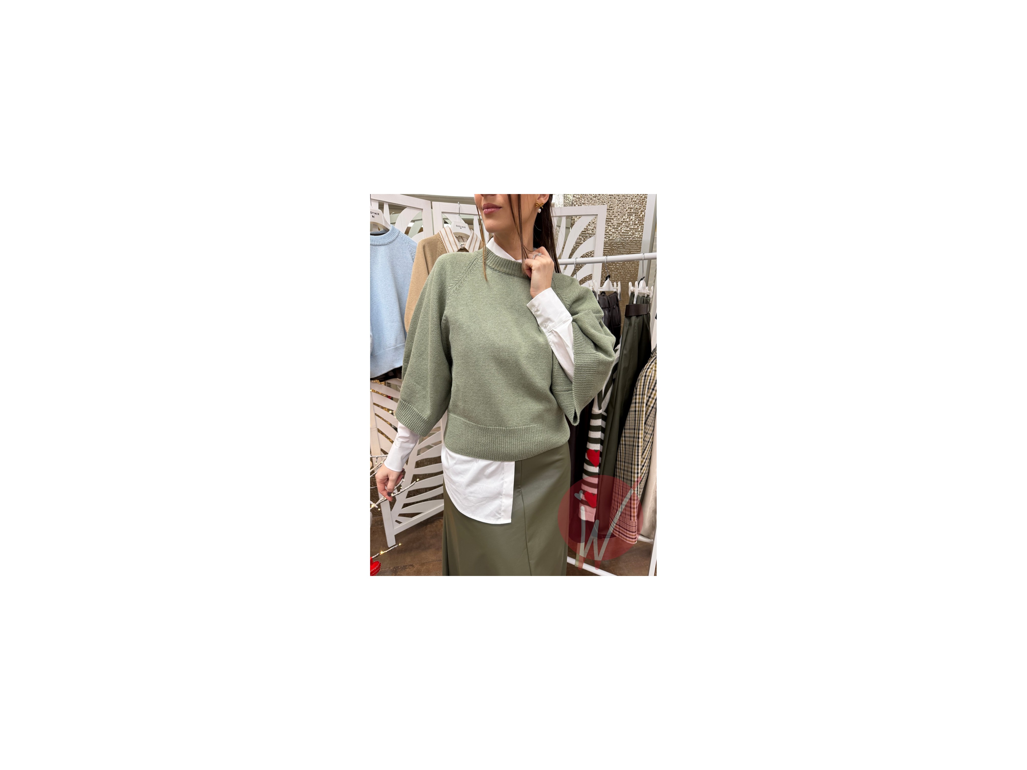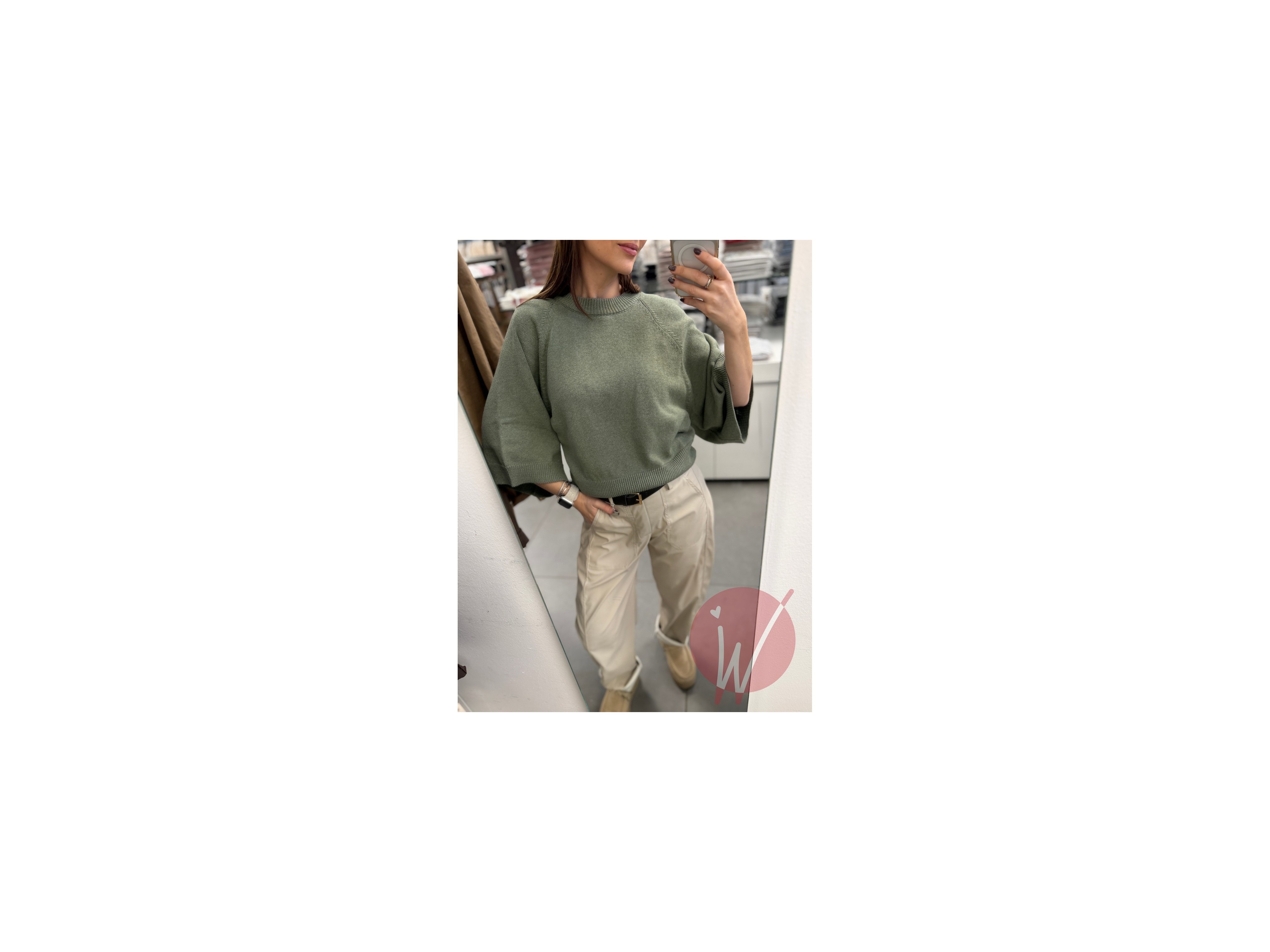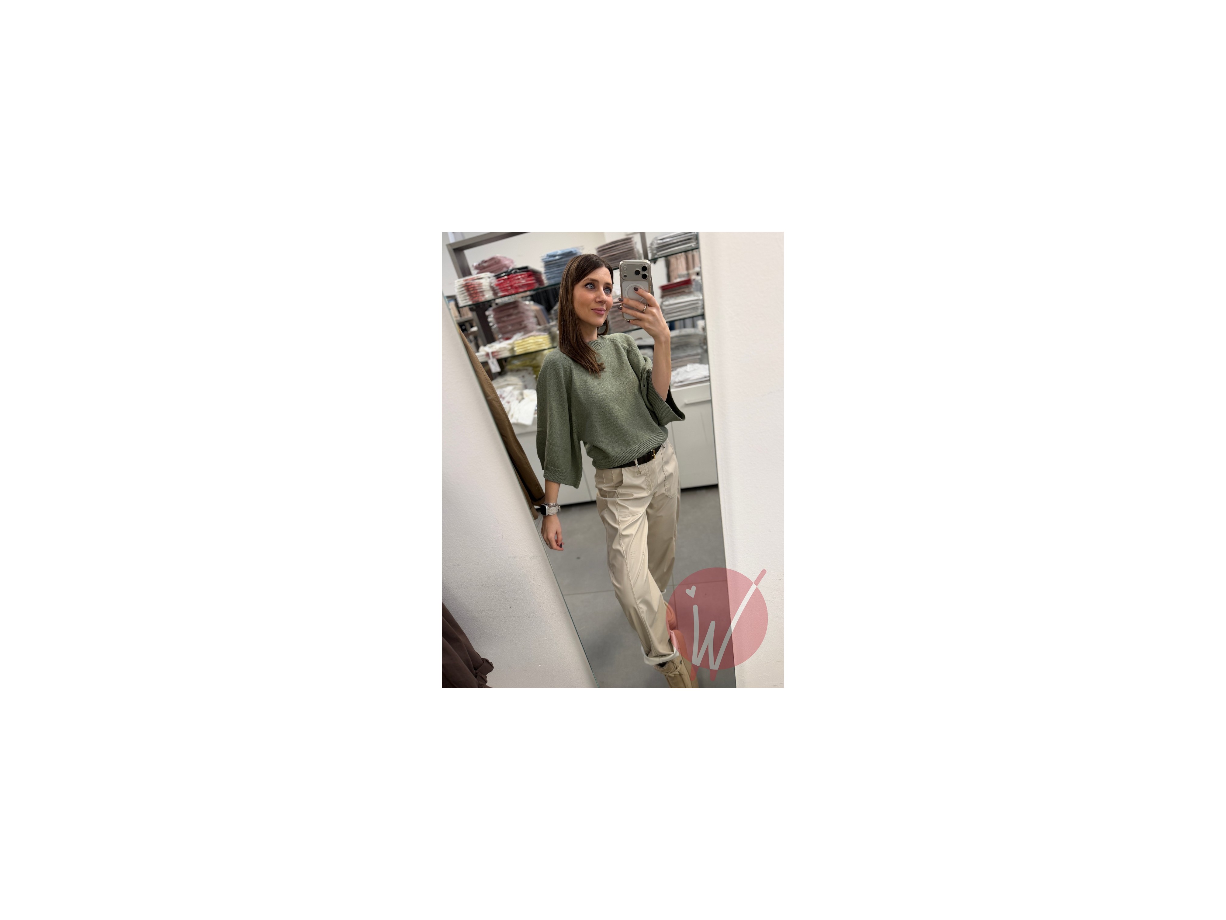Maglia girocollo in cotone morbido e consistente, manica ampia a 3/4, fascione elastico sul fondo.