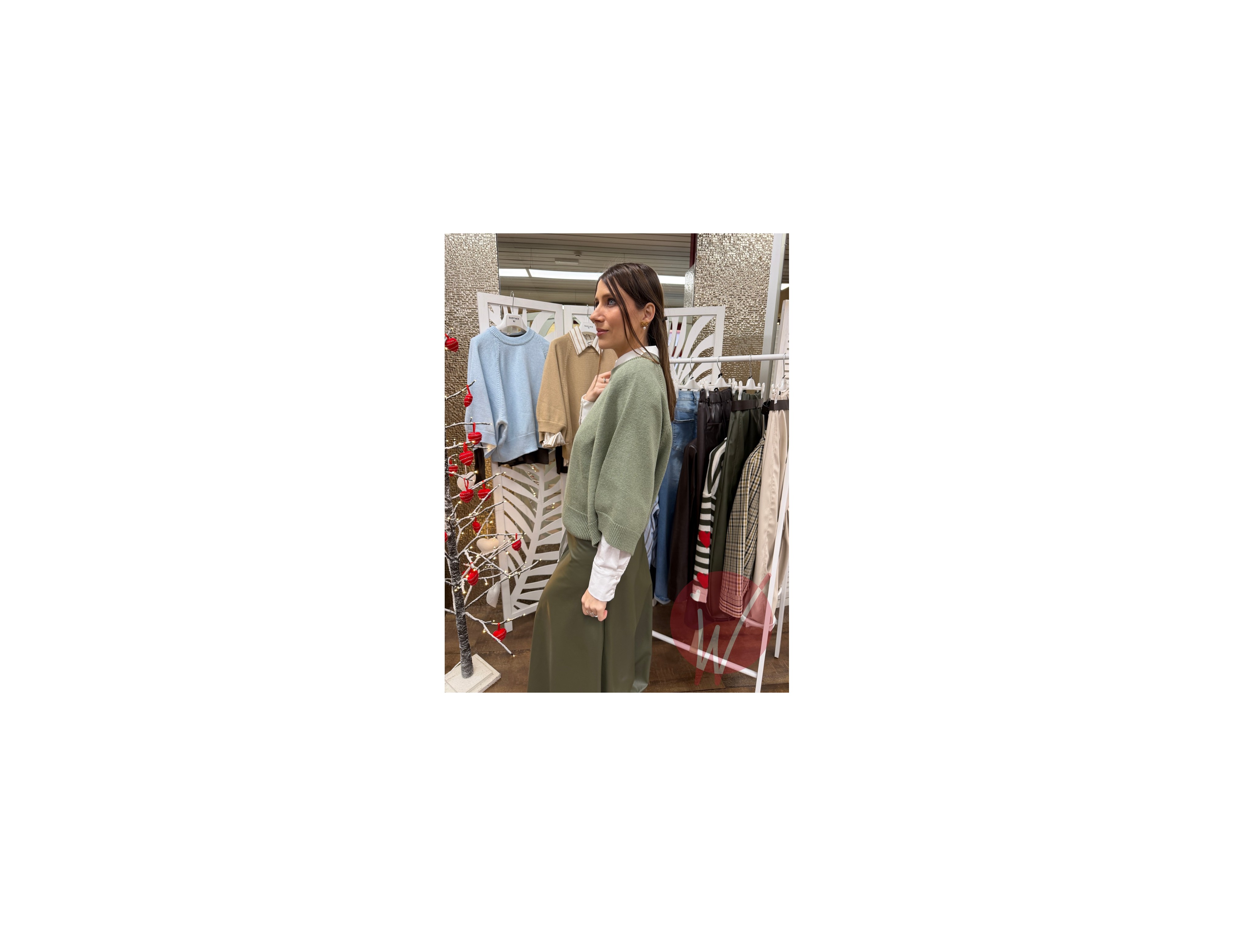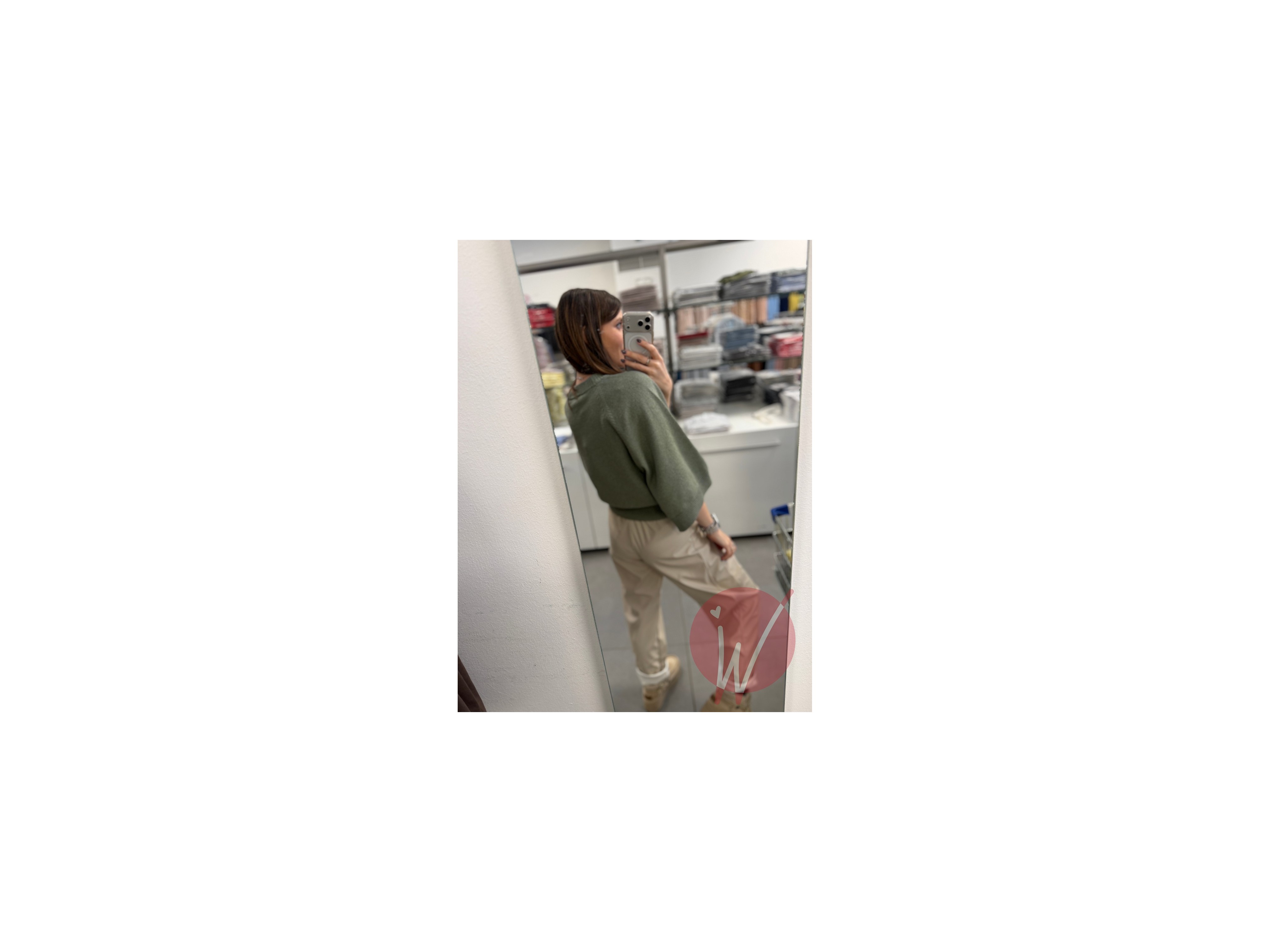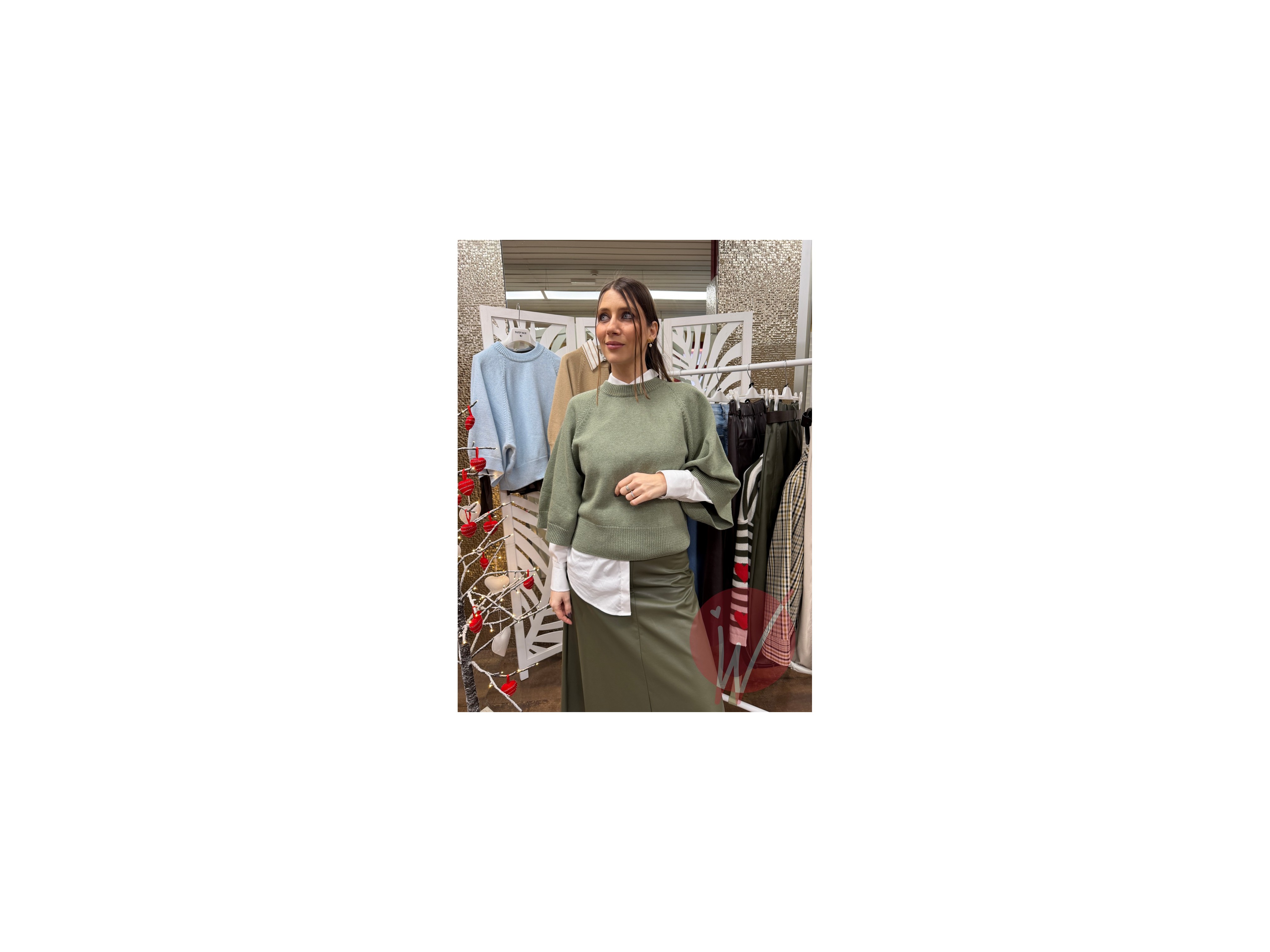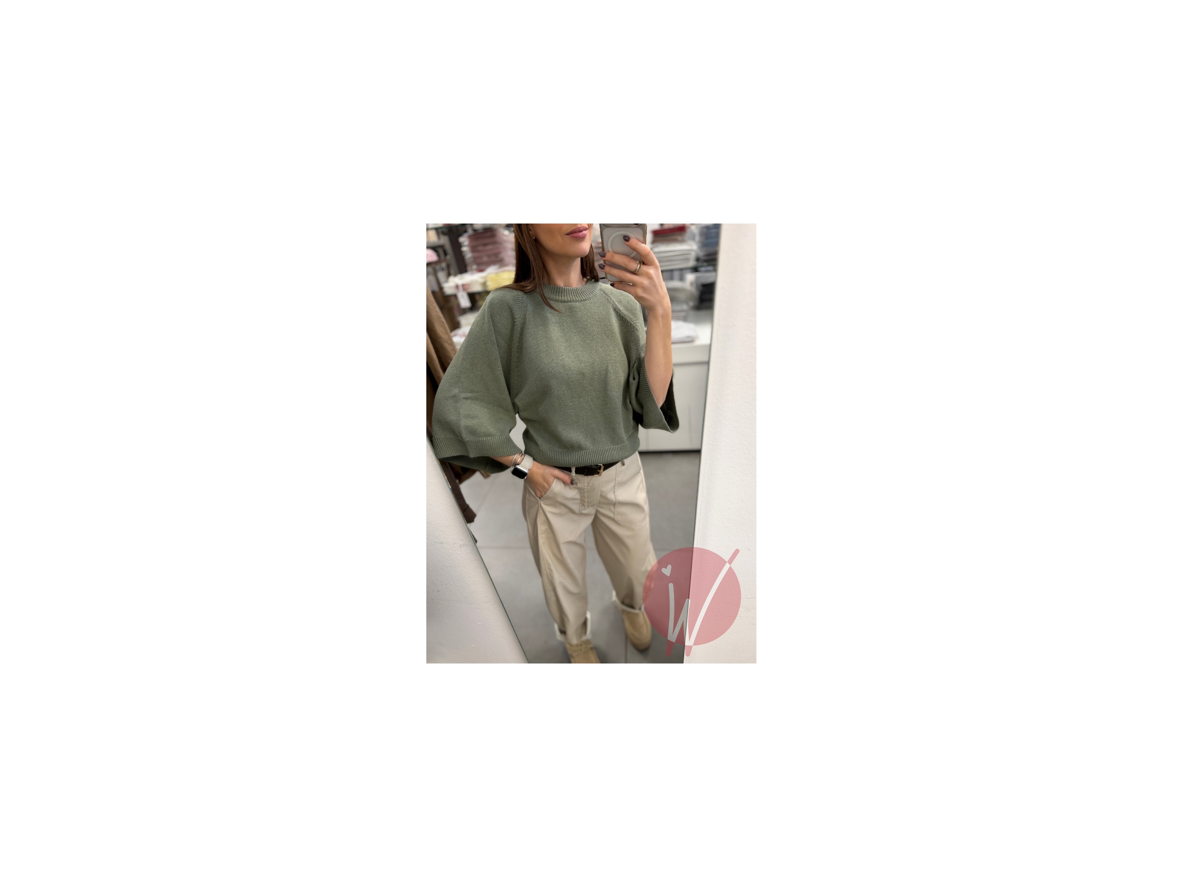 Maglia girocollo in cotone morbido e consistente, manica ampia a 3/4, fascione elastico sul fondo.