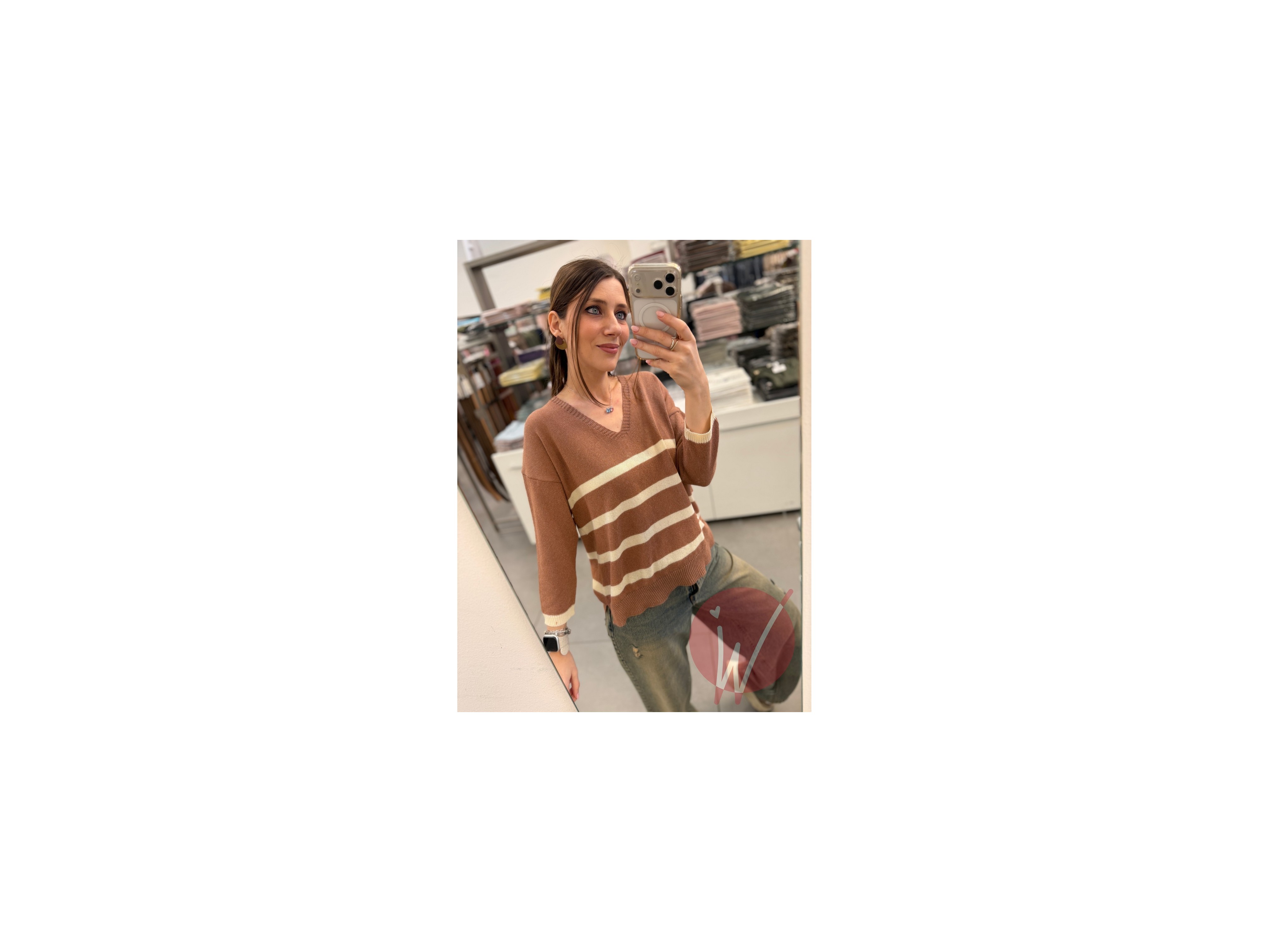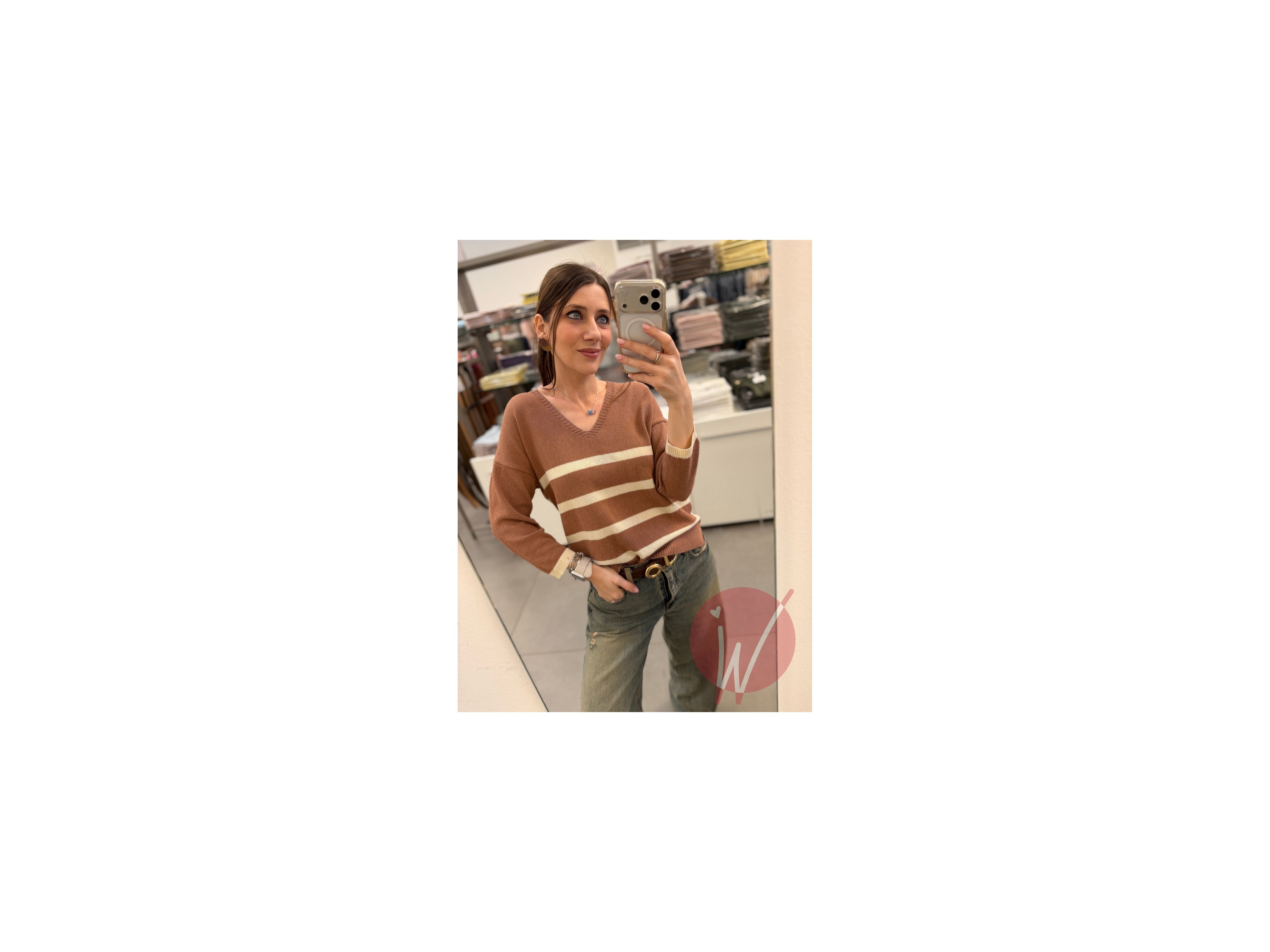 Maglia a righe con scollo a V e bicolor nei bordi in cotone leggero