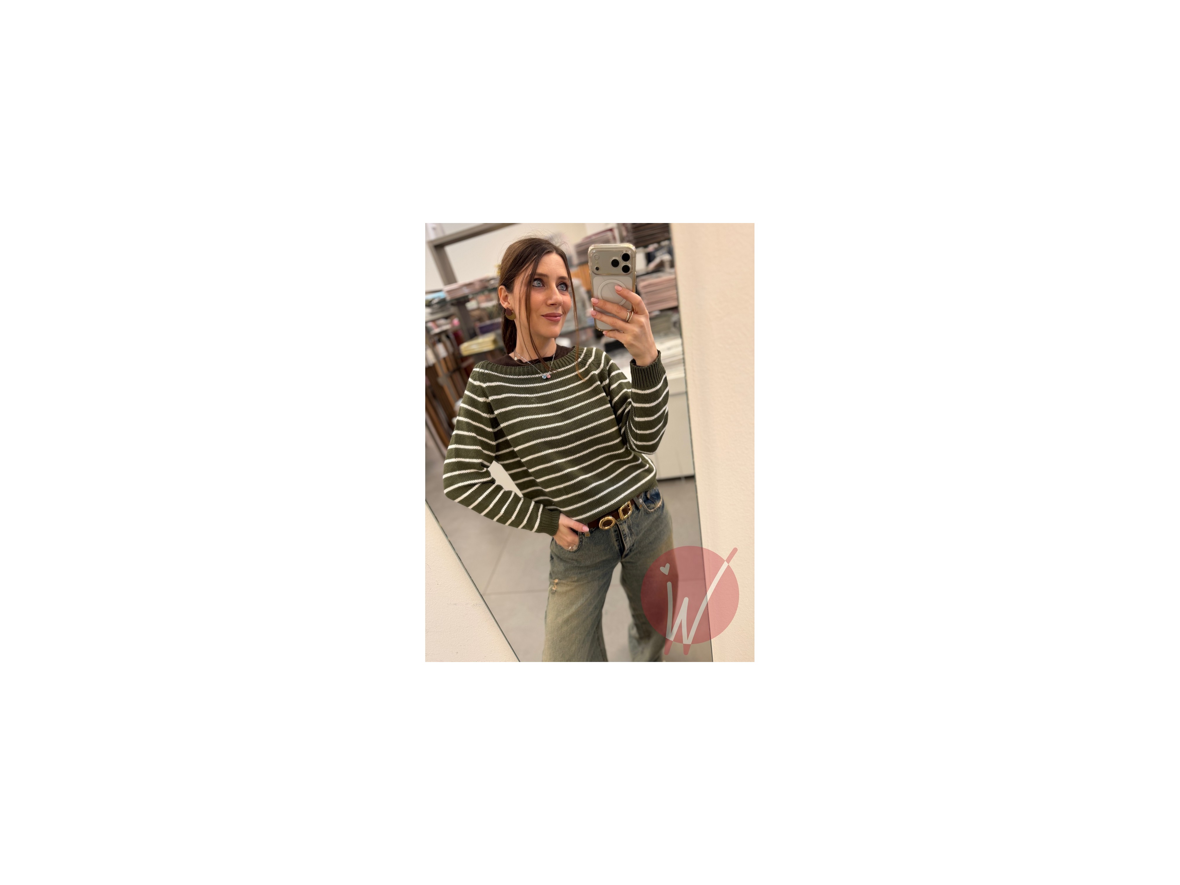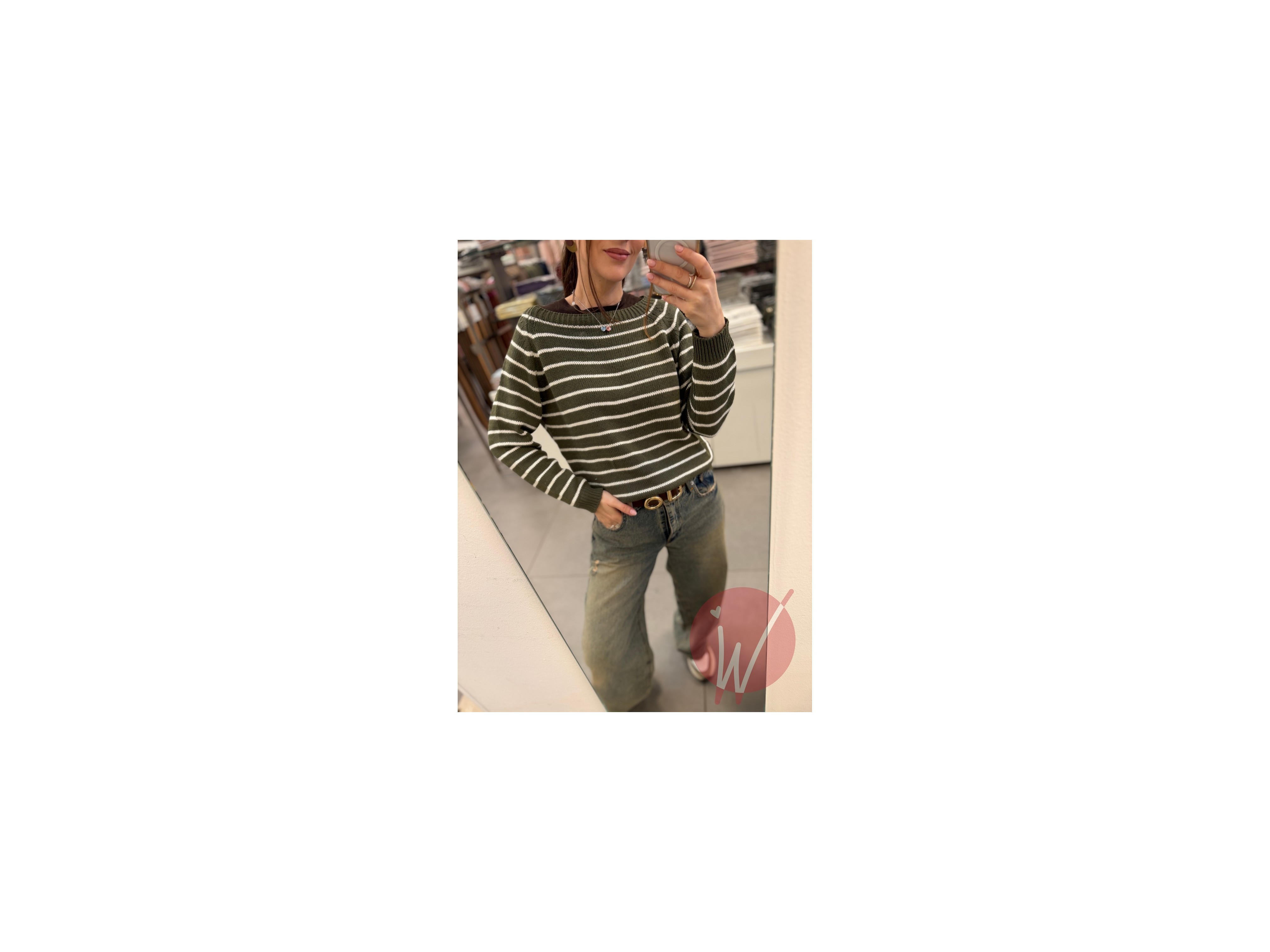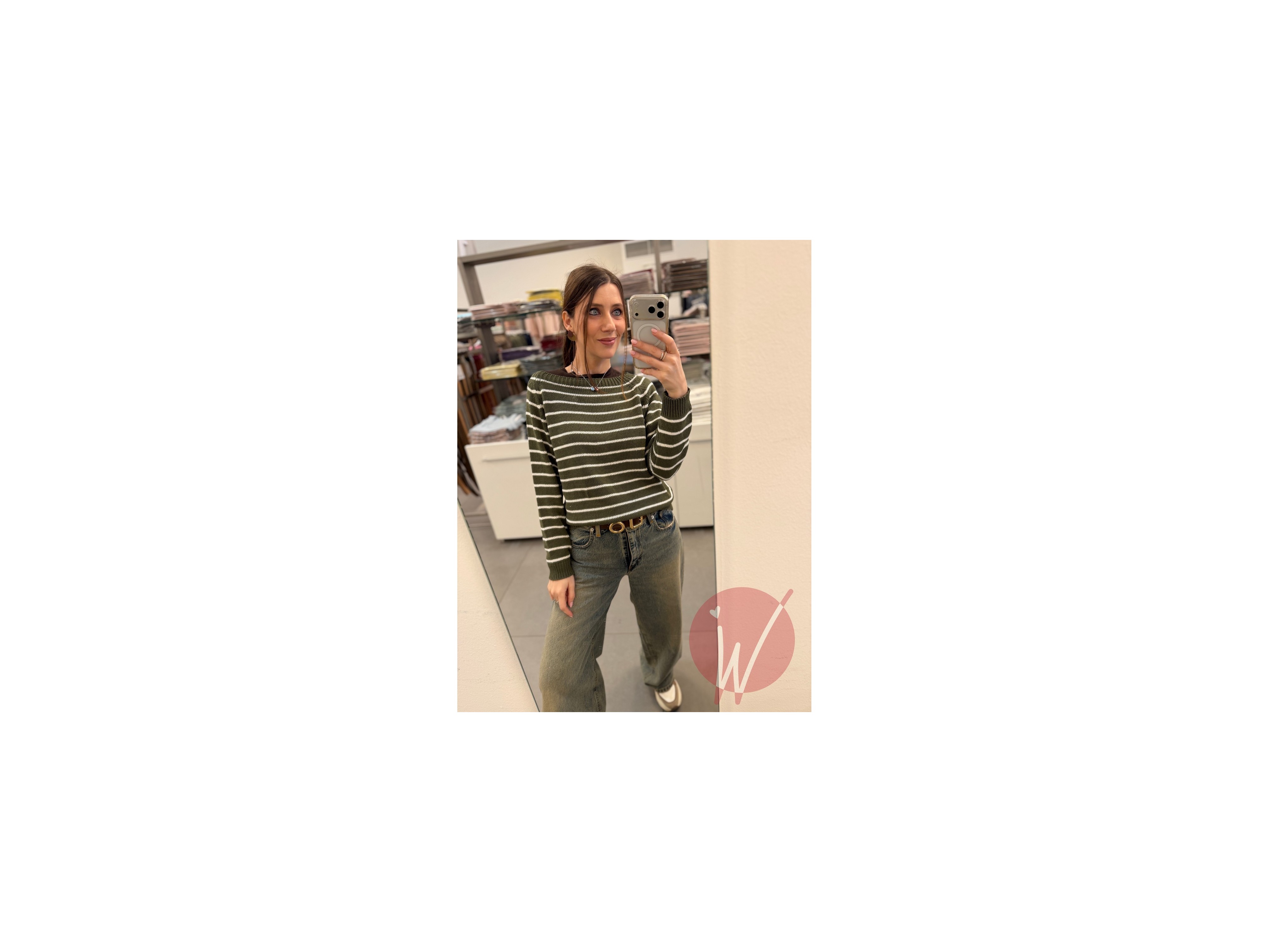 Ultimi articoli in magazzino Maglie Maglia Righe Candice Militare Susy Mix WT156 39,90 € Maglia in cotone a righe alternate, taglio over a scatola, tinta unita dietro. Aggiungi al carrello