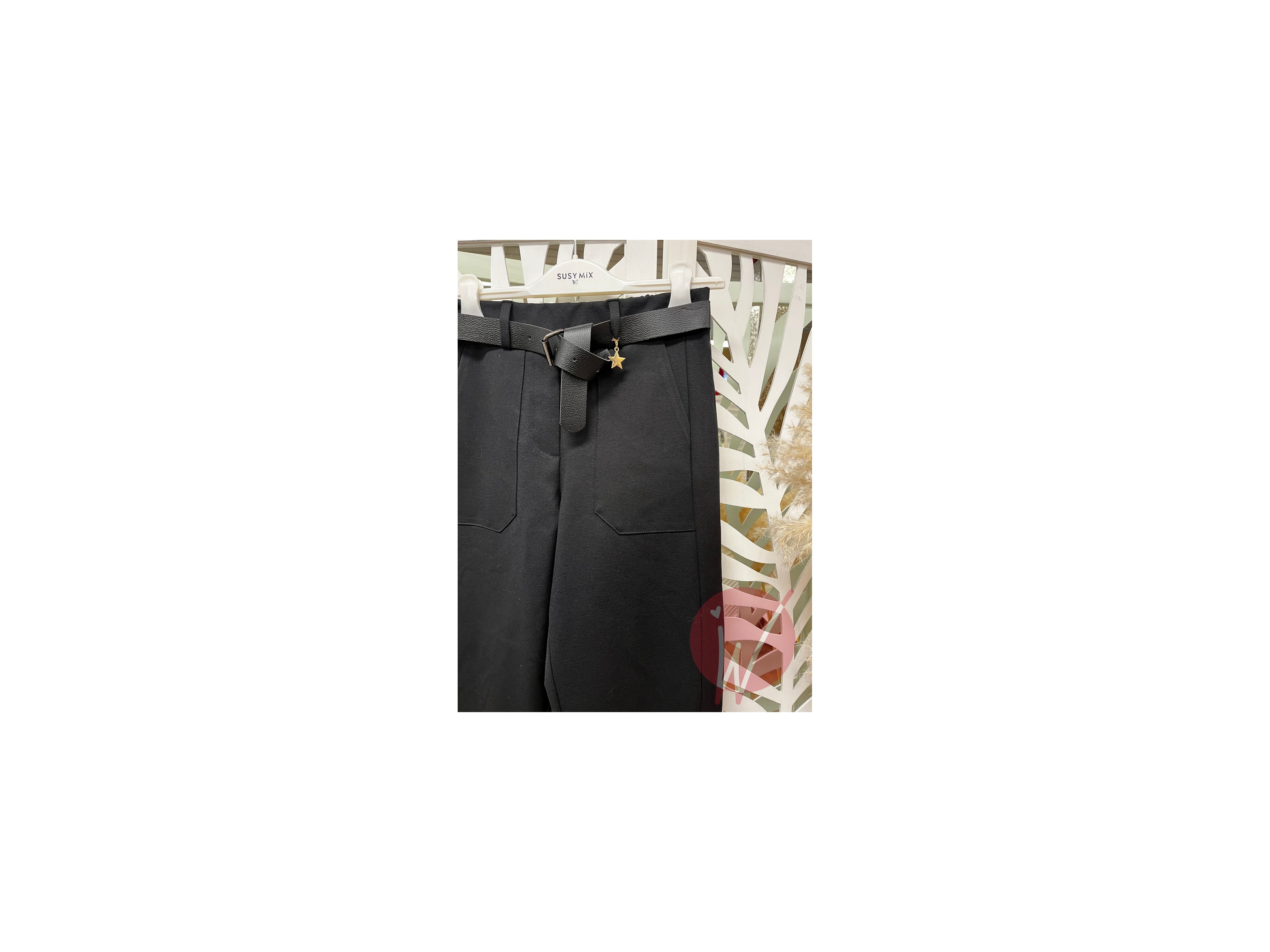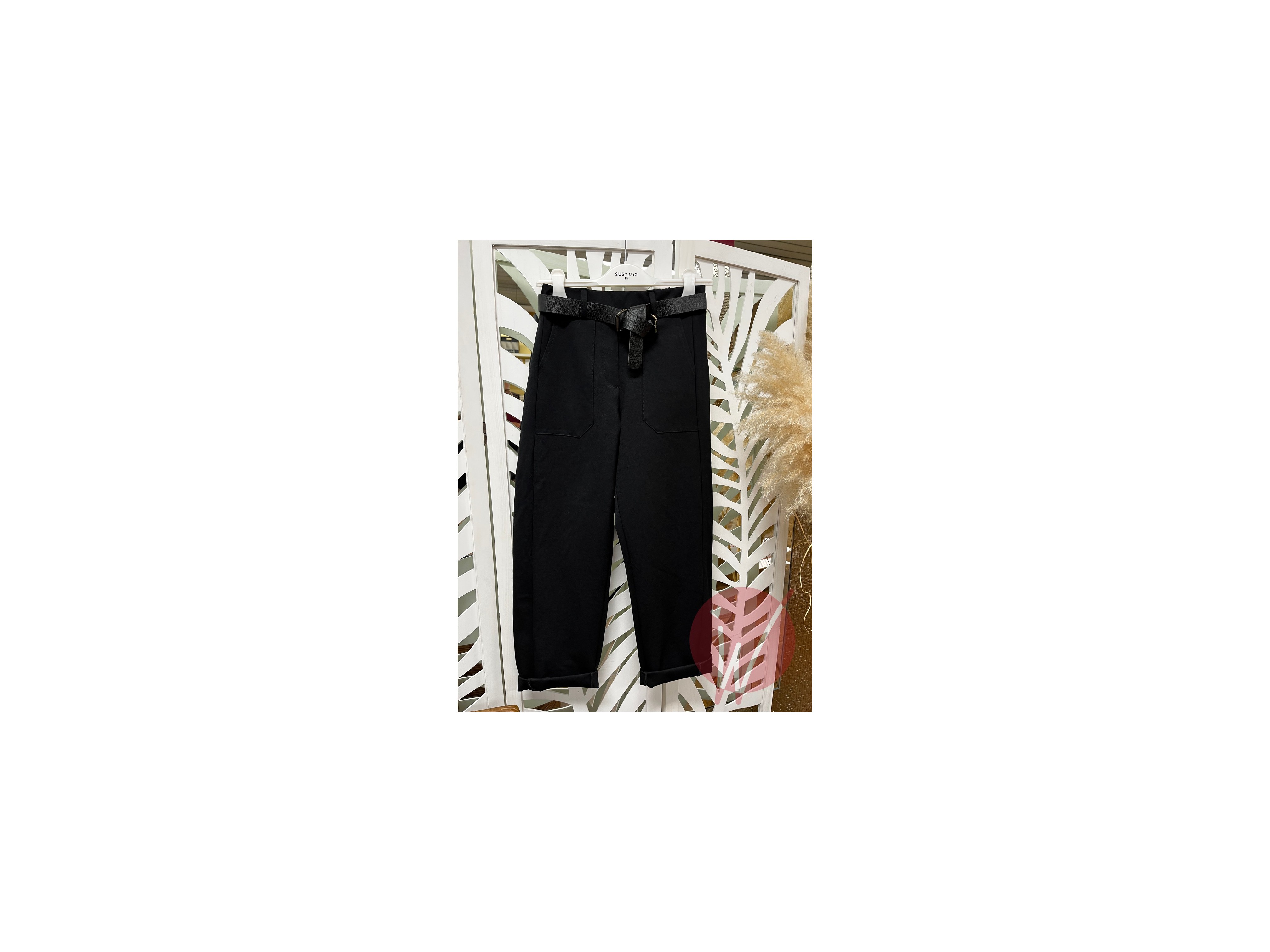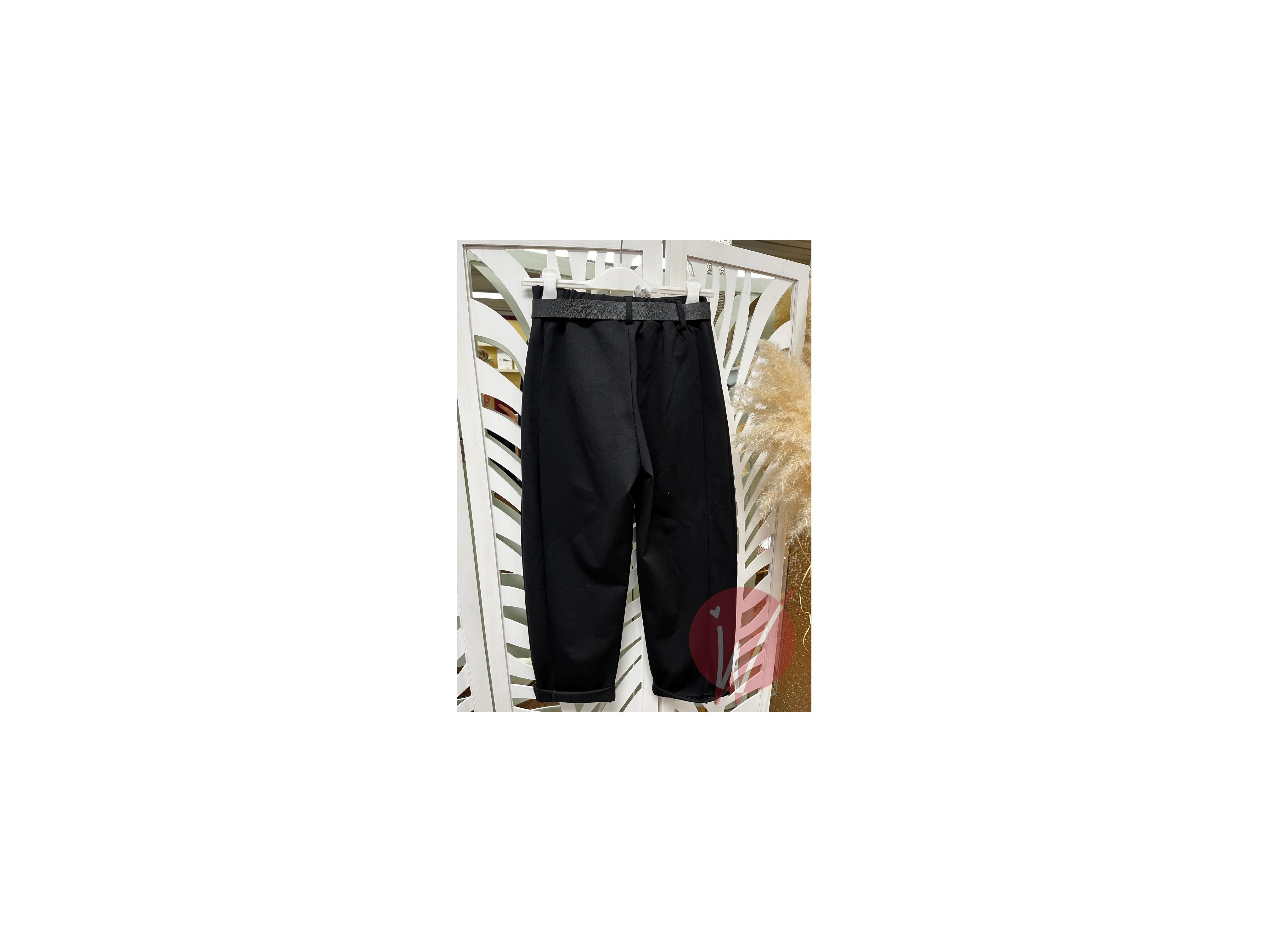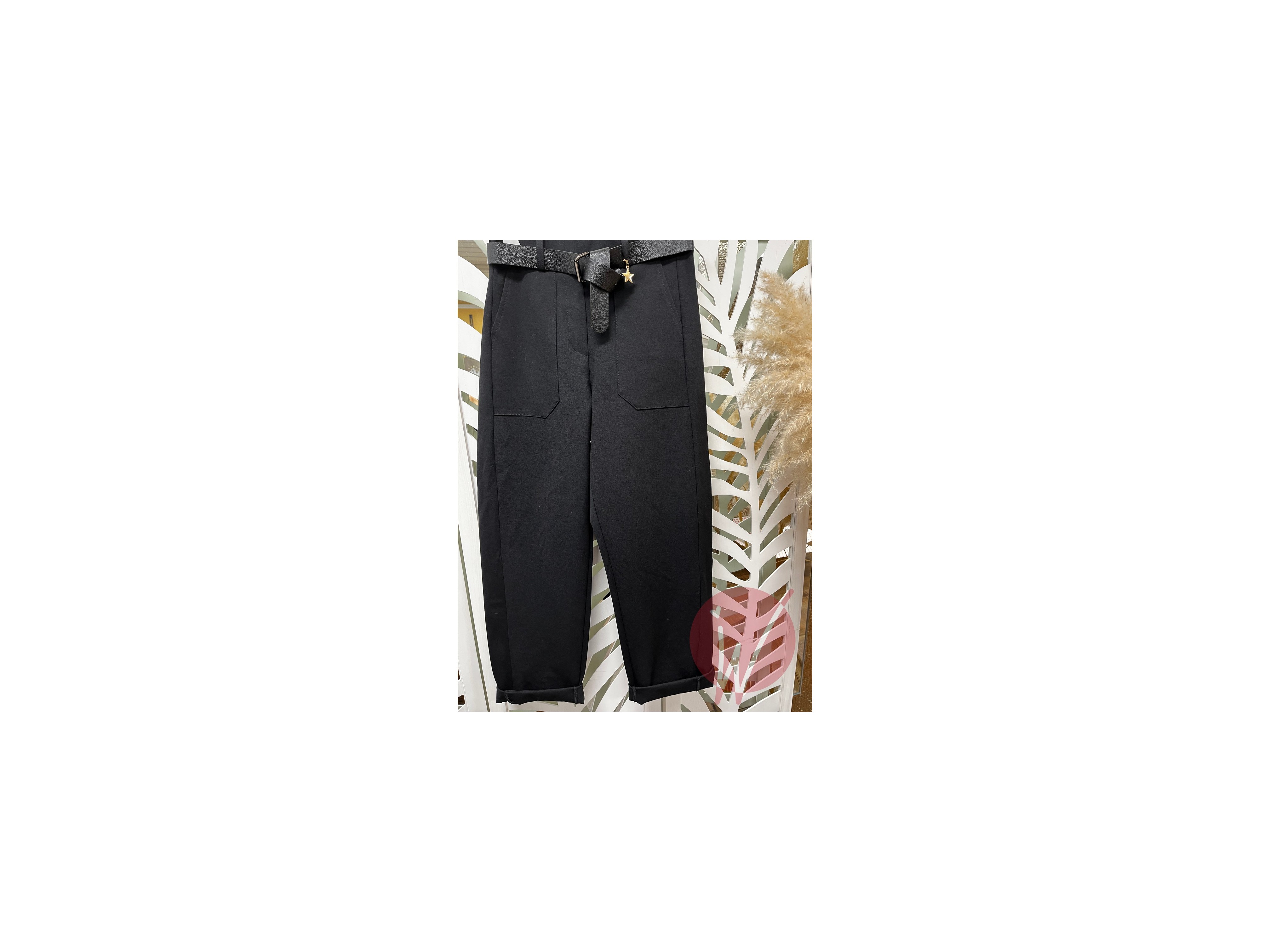 Pantalone ovetto in viscosa elasticizzata, in punto milano, con tasche in piedi laterali, elastico e passanti in vita, cintura inclusa.