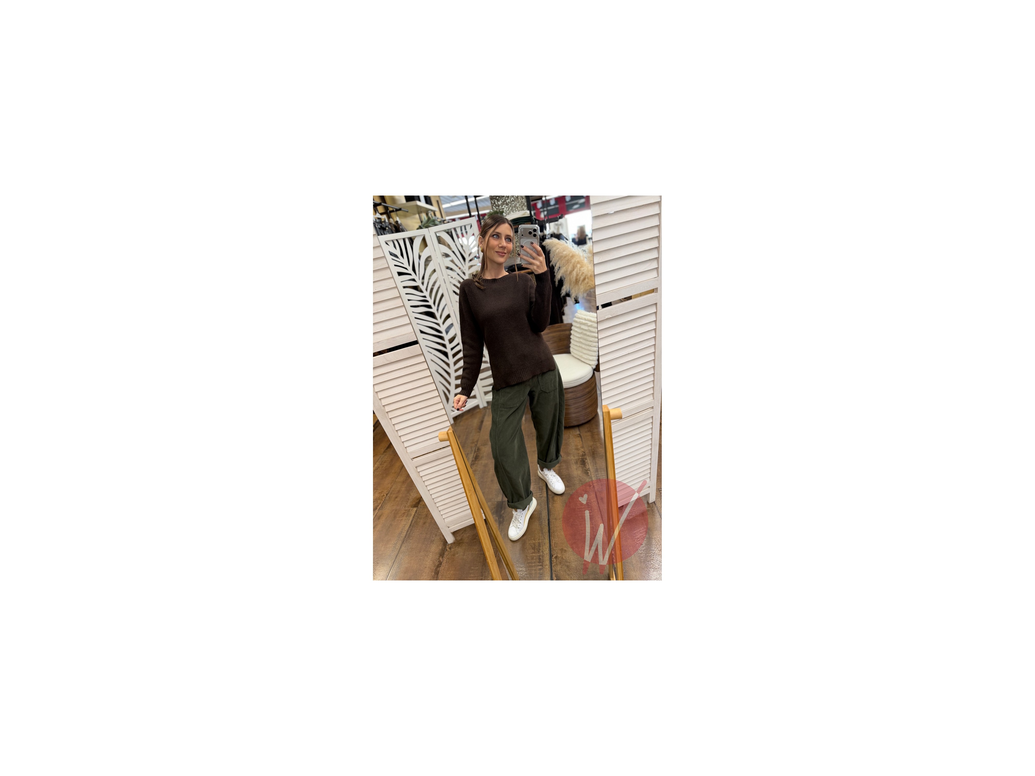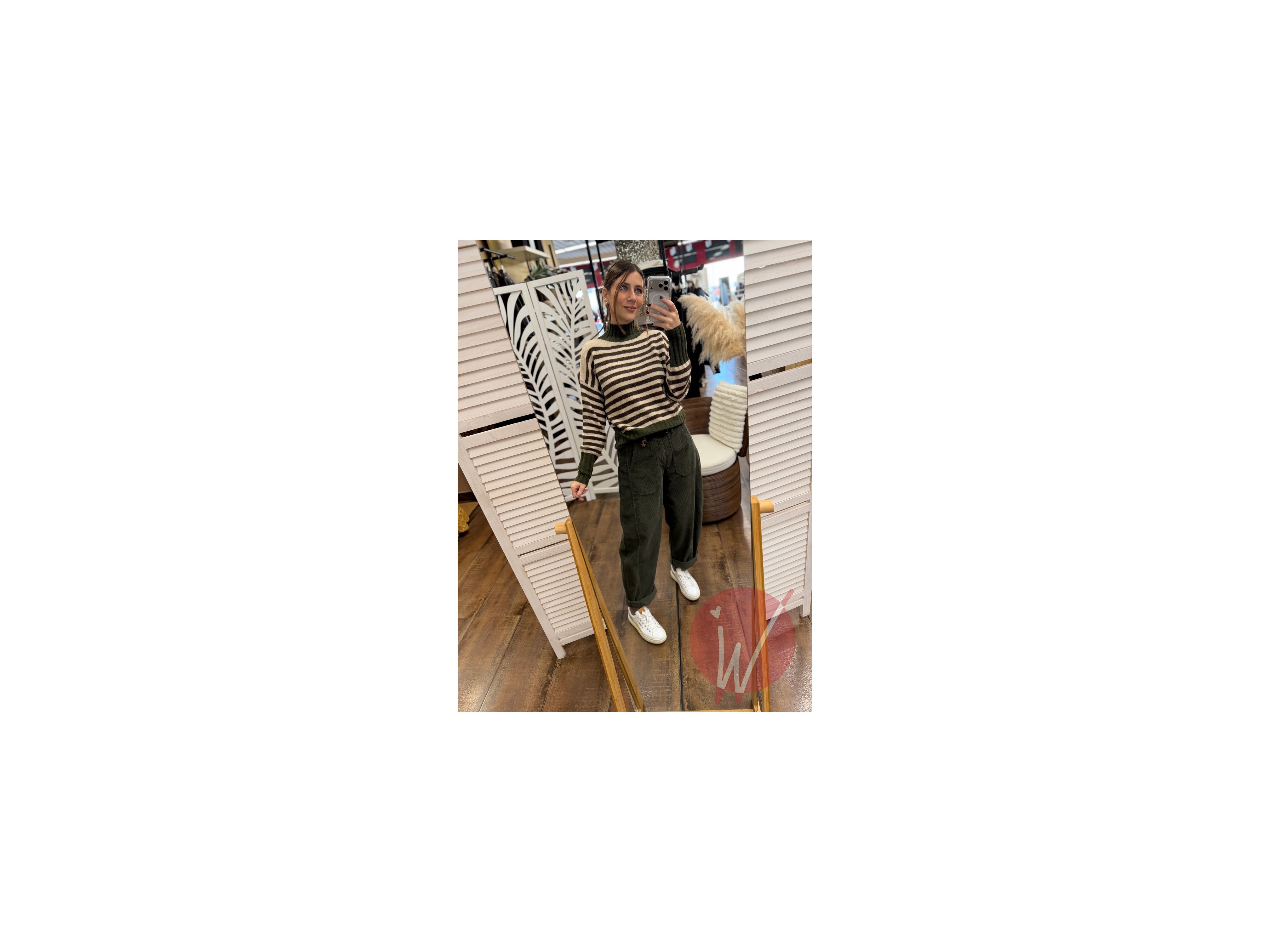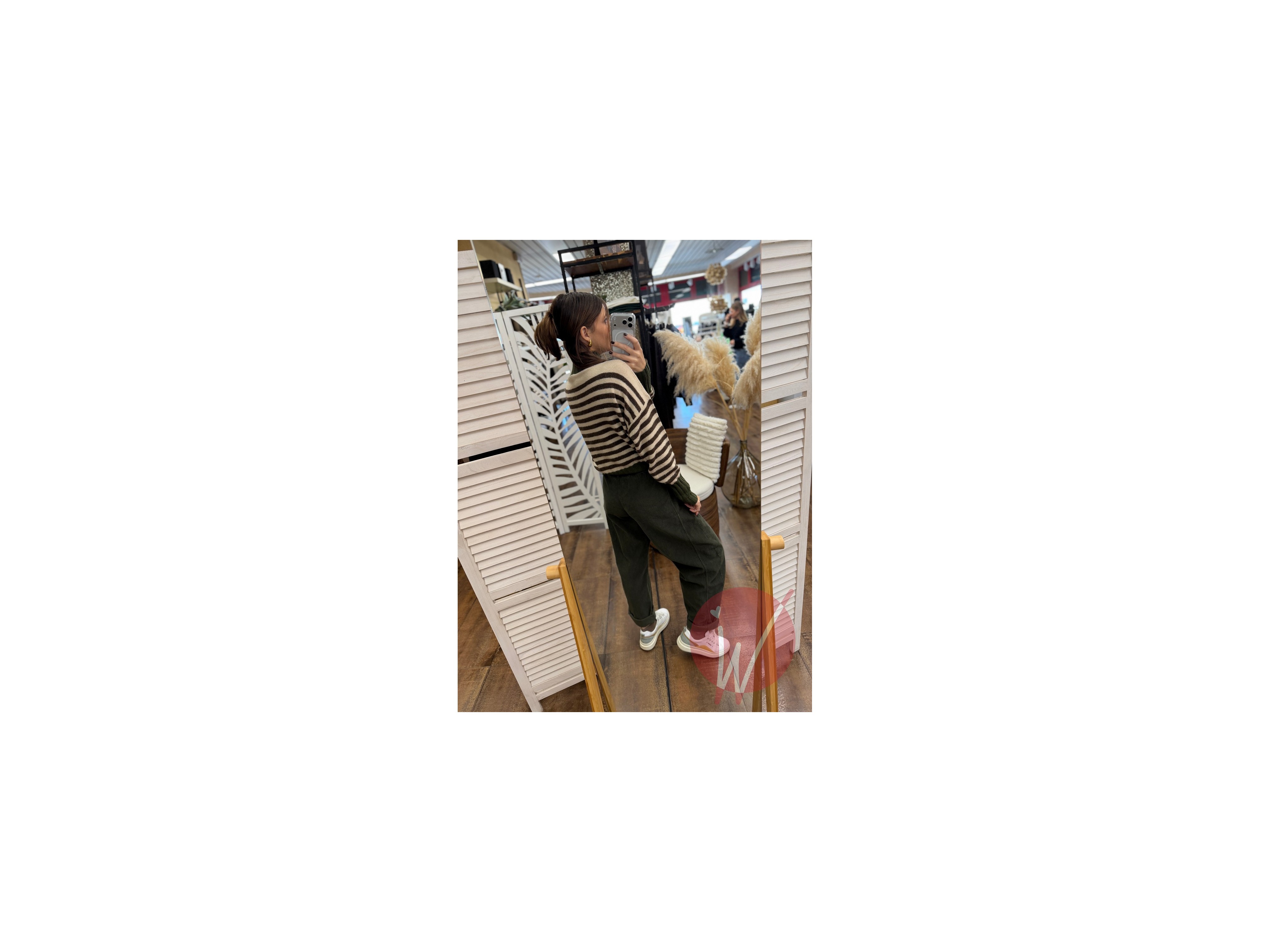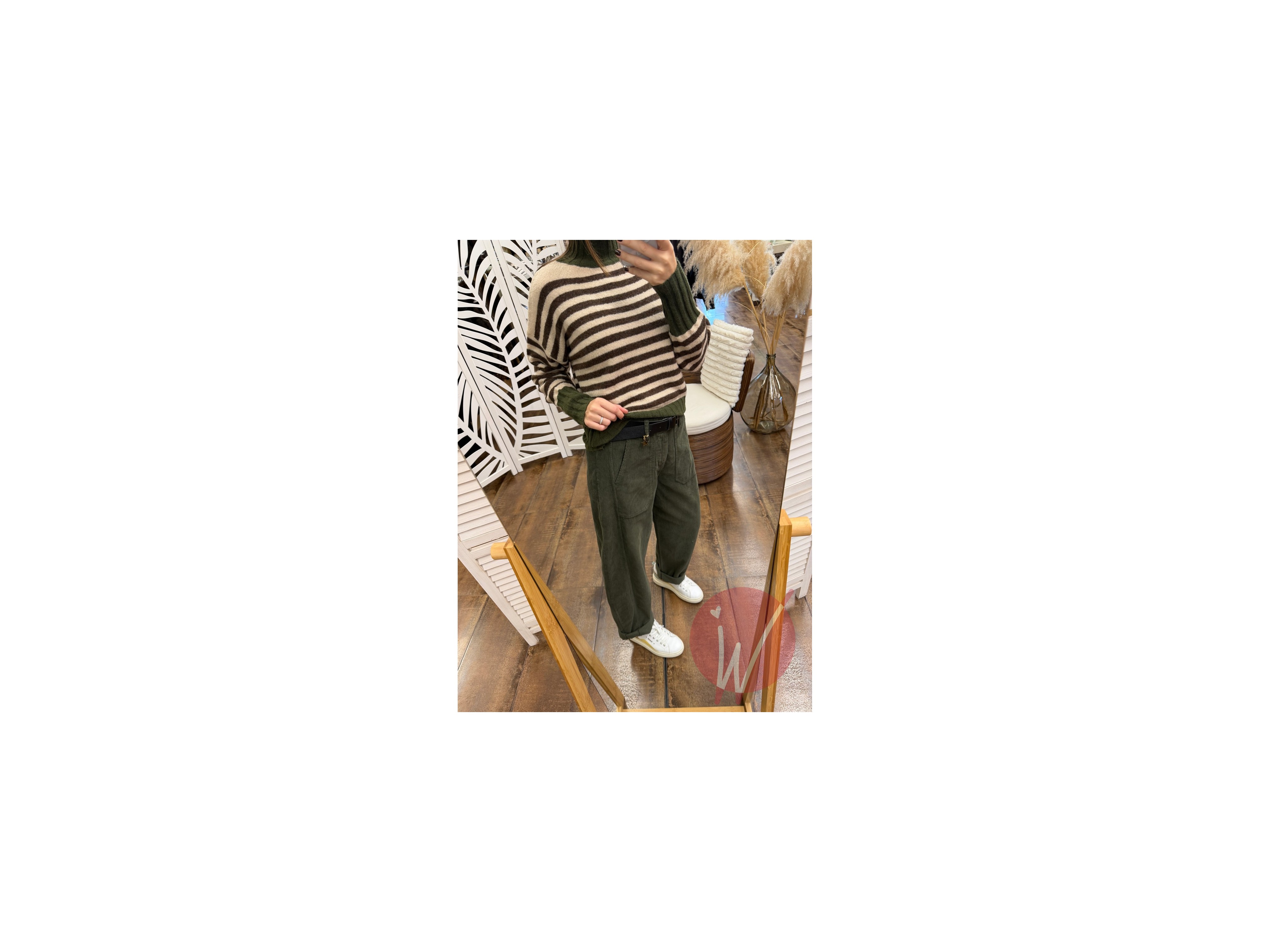 Pantalone modello baggy ad ovetto, in velluto millerighe, con tasche squadrate davanti, elastico in vita sul retro, chiusura con zip e bottone.