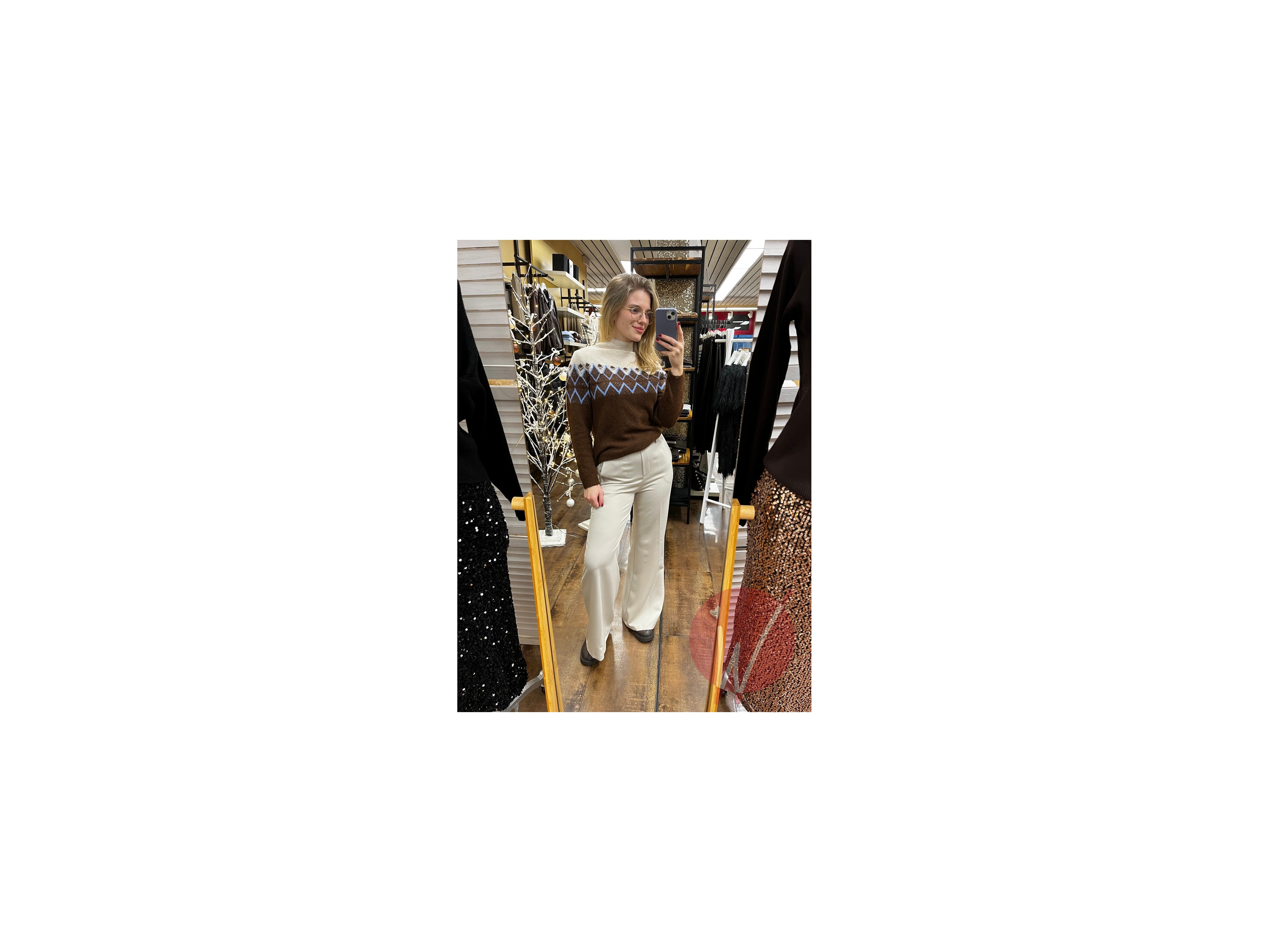 Pantalone a palazzo in tessuto morbido e caldo, con elastico in vita sul retro, con cintura inclusa, tasche in piedi laterali.