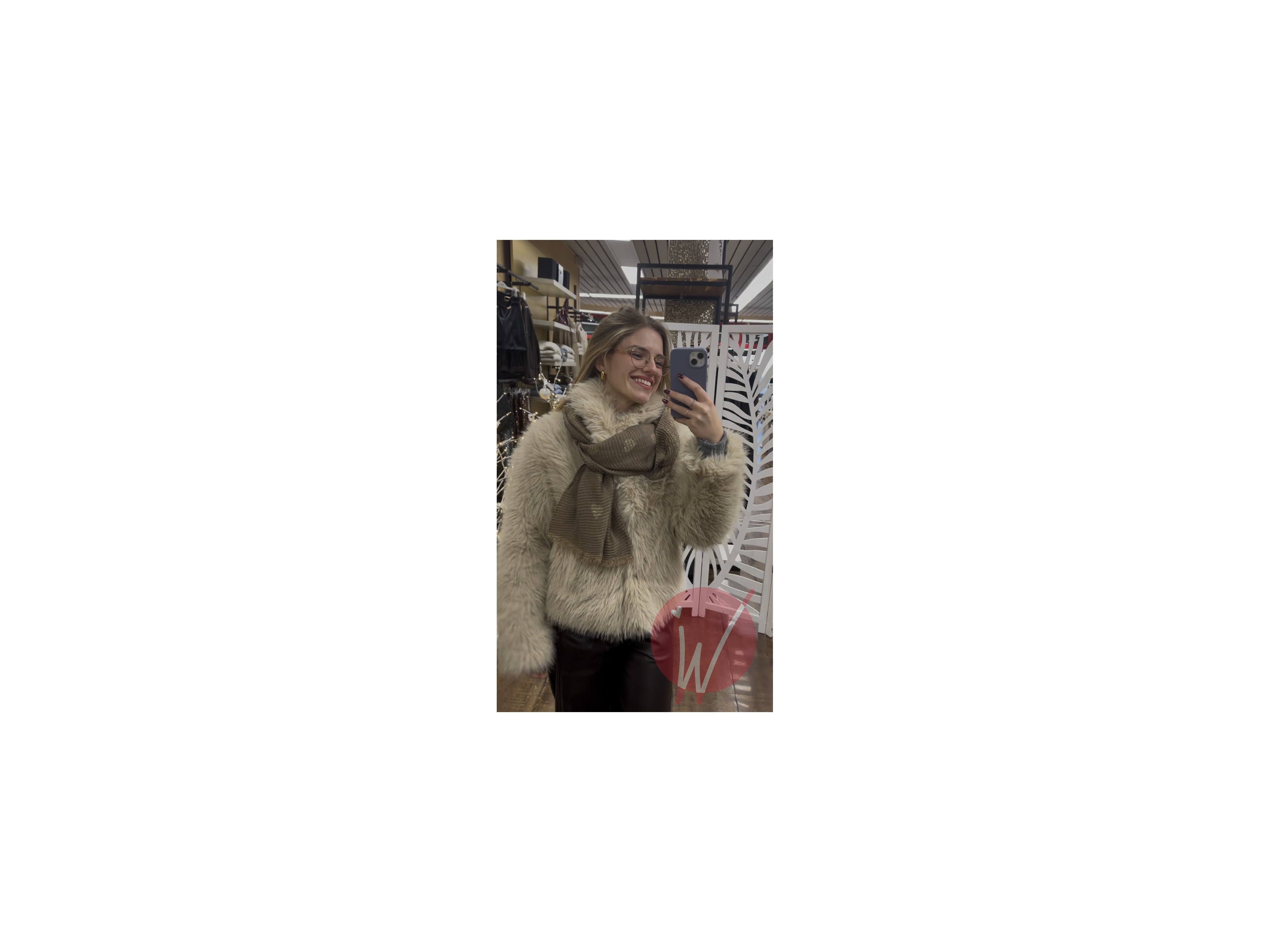 Sciarpa effetto plissé in viscosa morbida e calda, con lurex all'interno, sfrangiata sul fondo, con cuoricini a contrasto.